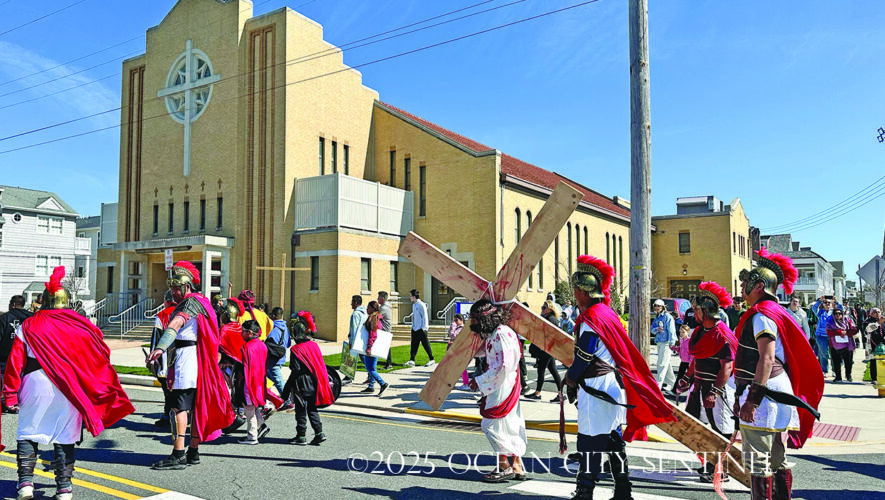 OCEAN CITY – A Way of the Cross Procession started at St. Frances Cabrini Church at Second Street and Atlantic Avenue, Ocean City, on Good Friday, April 18, and then marched down Ocean Avenue to St. Augustine Church. The bilingual event included stopping at 14 stations representing the signficant events in Jesus’ path to crucifixion.