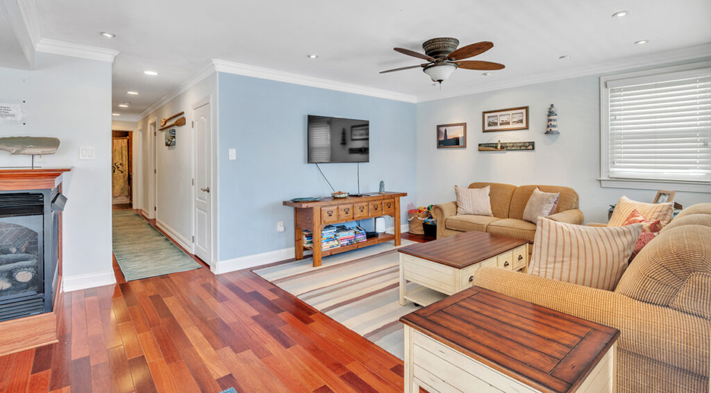 Located just two blocks off the beach and boardwalk, the home offers three bedrooms, two bathrooms, an upscale modern kitchen and wide-open great room with a sitting area and dining space.