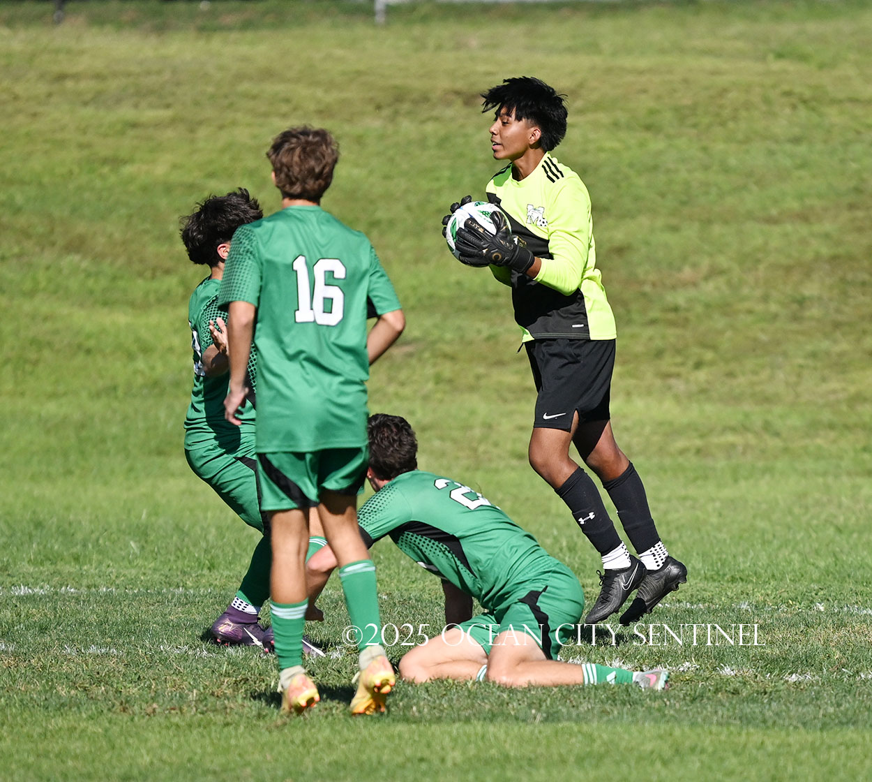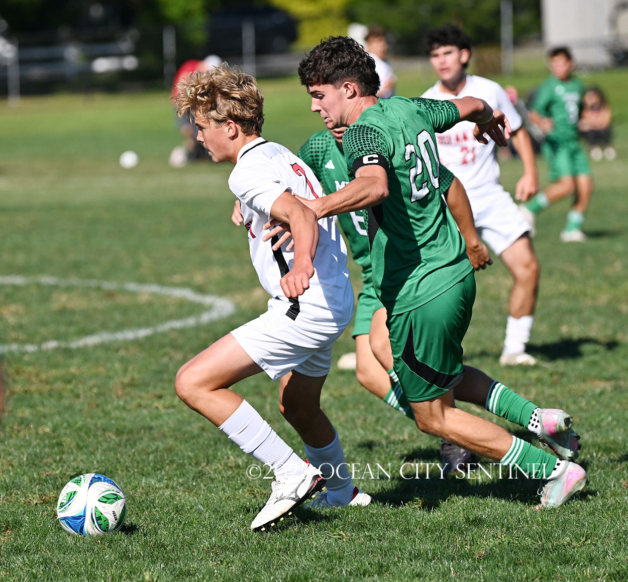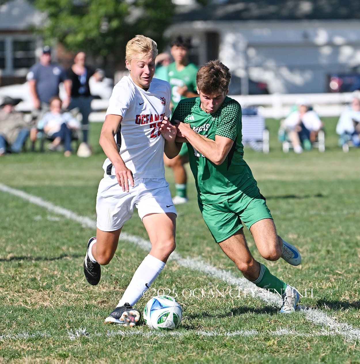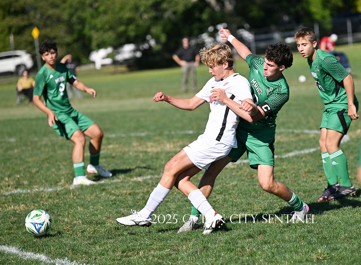 LINWOOD – The annual boys soccer game between Mainland Regional High School and Ocean City High School got off to a frantic start.