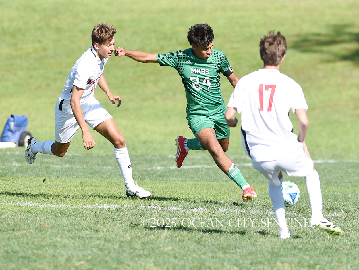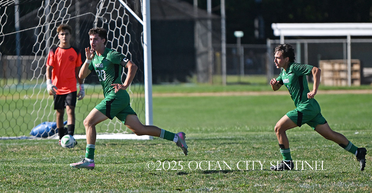 James Breitinger gave the Mainland Mustangs the lead in the 15th minute and never looked back as they took down the Ocean City Red Raiders 2-1 on Sept. 8.