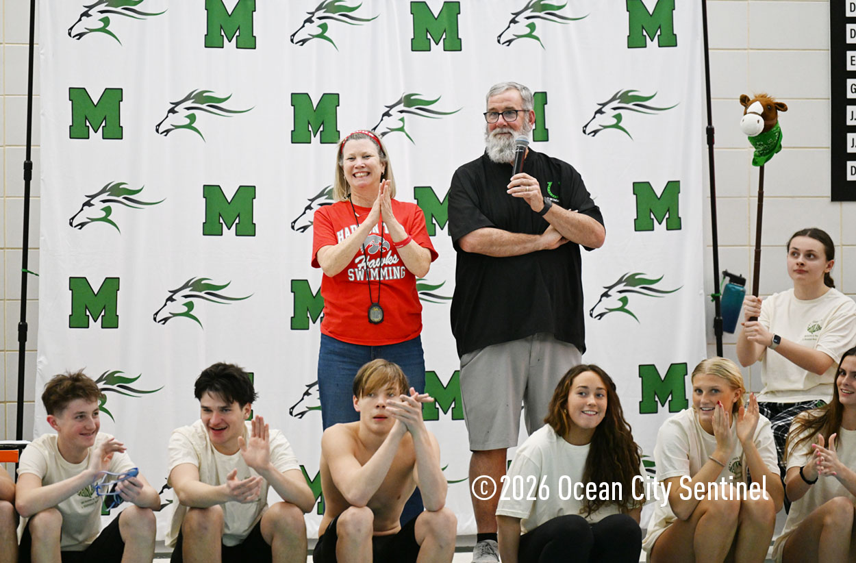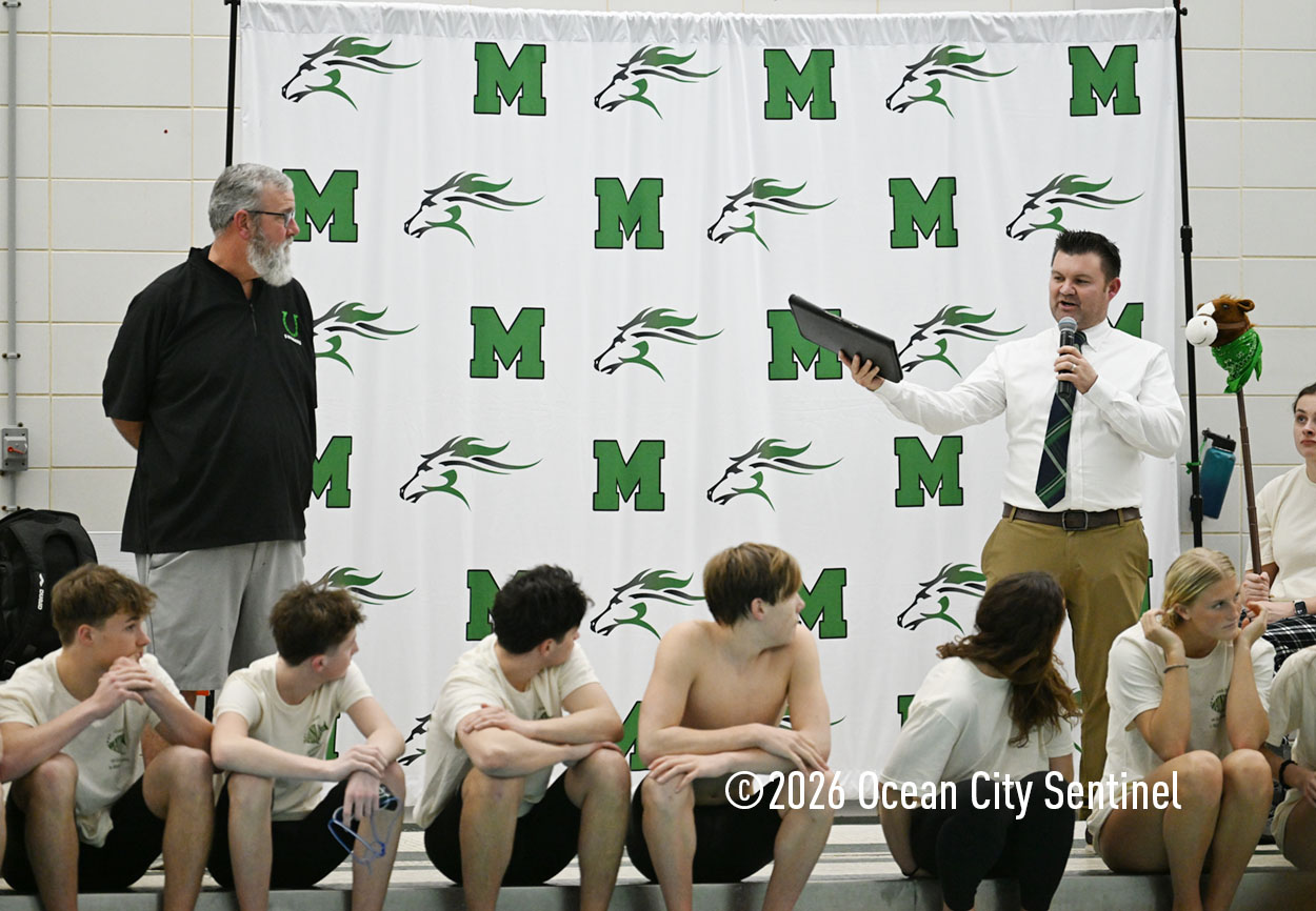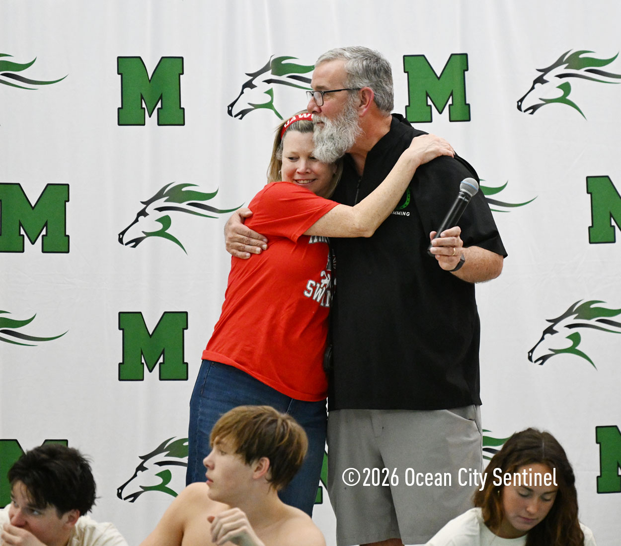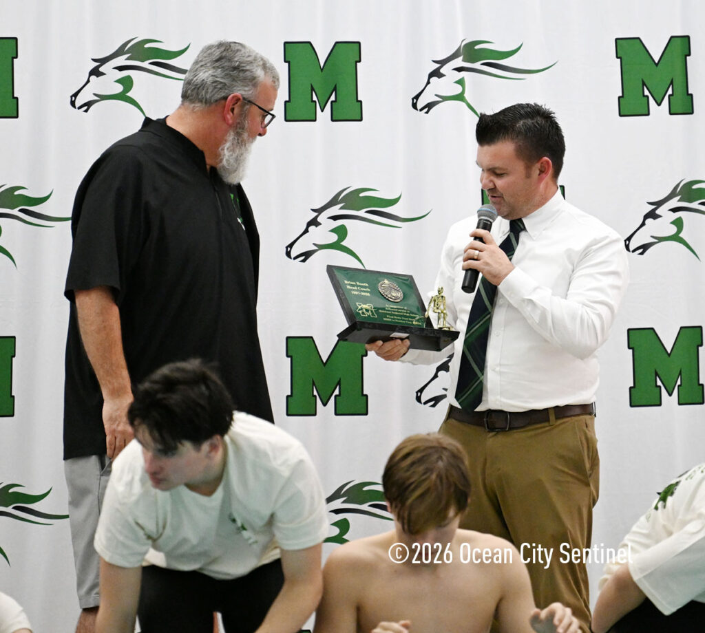 Athletic Director Billy Kern, during a mid-meet presentation, pointed out a few more of Booth’s credentials during 29 years as head coach beginning in 1997. Booth, who turns 55 this week, is a 1989 MRHS graduate and 1993 graduate of West Chester University. He became an assistant swim coach in 1993.