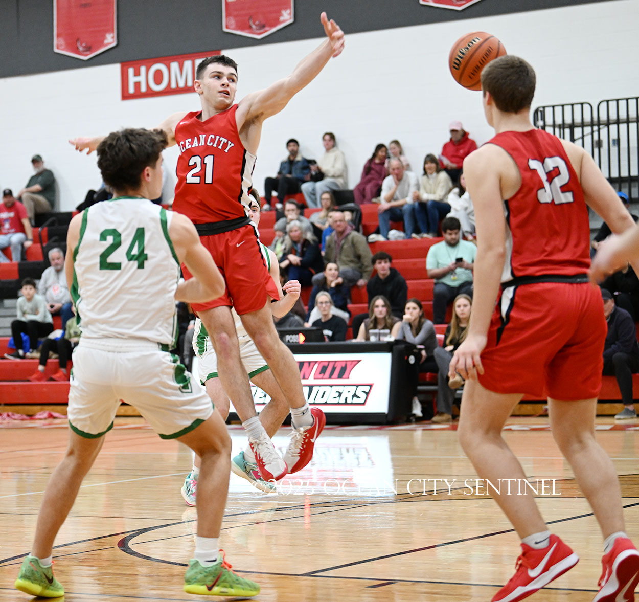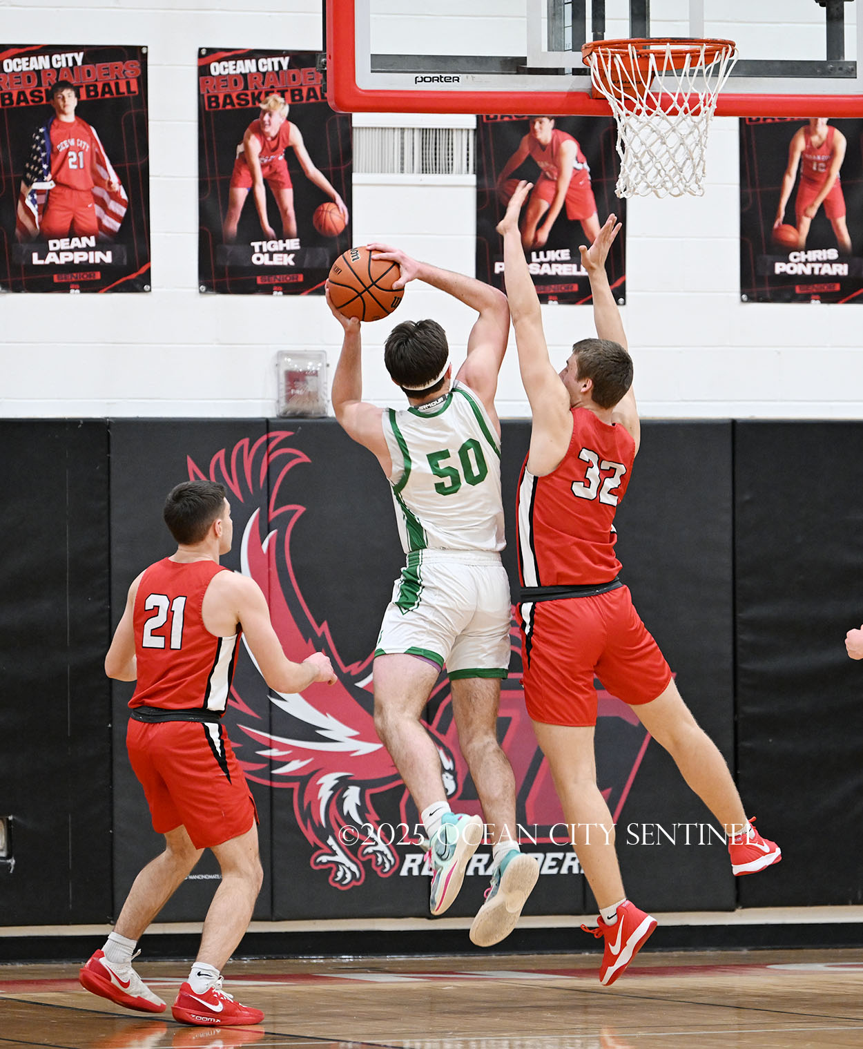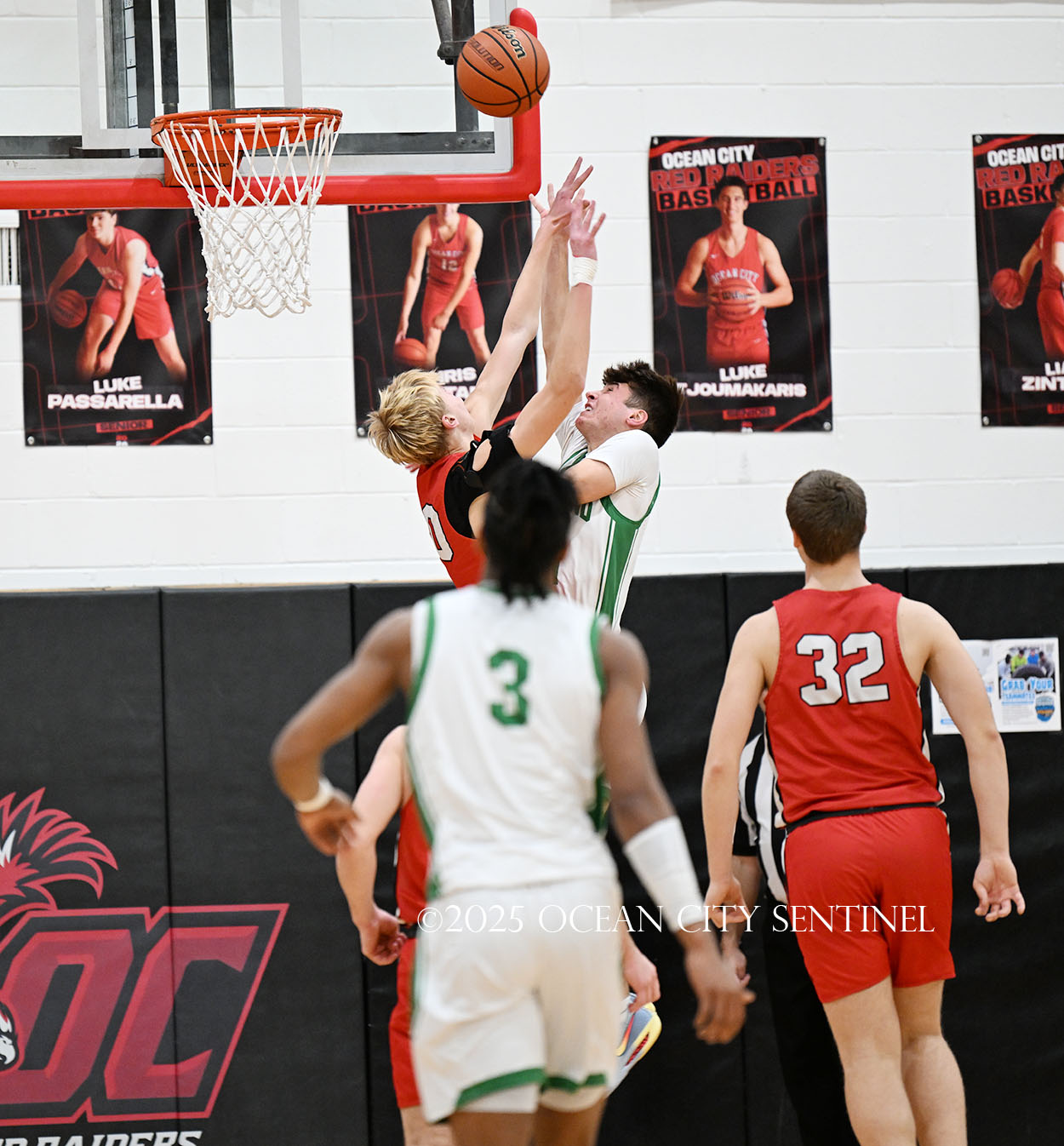 Raider Chris Pontari, who has gotten better as the season has progressed, scored 10 straight points for the Raiders. The top offensive threat for Ocean City this season, Josh Lenko, added 12 points.