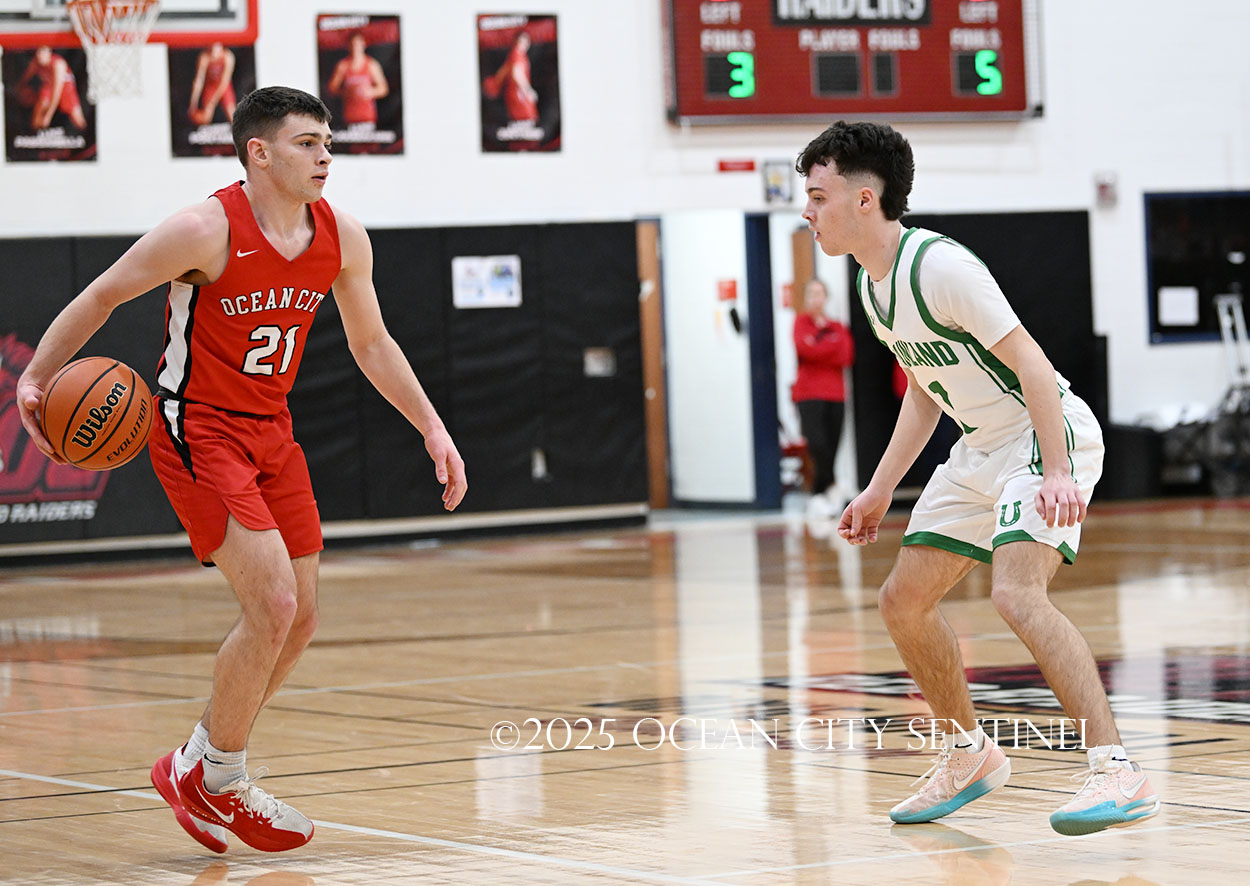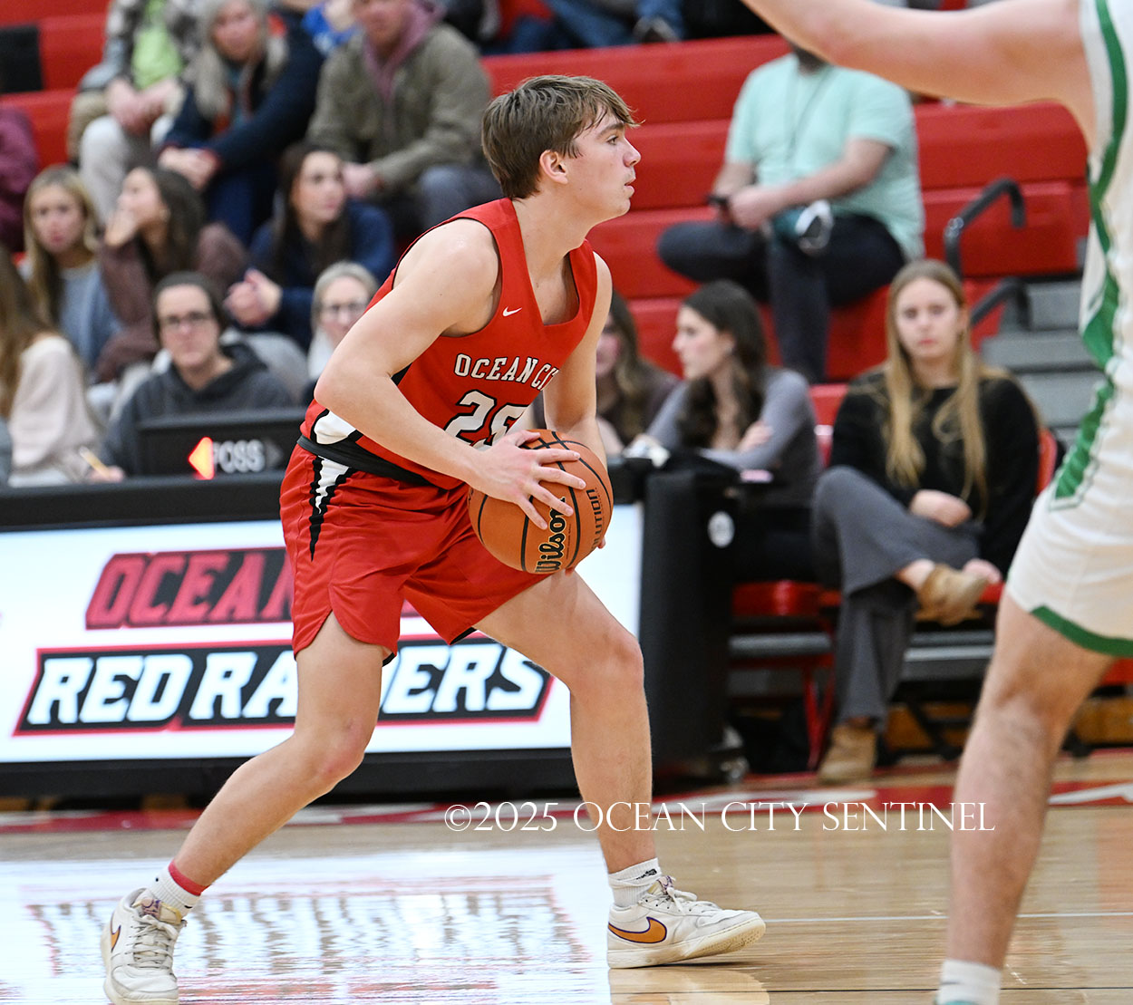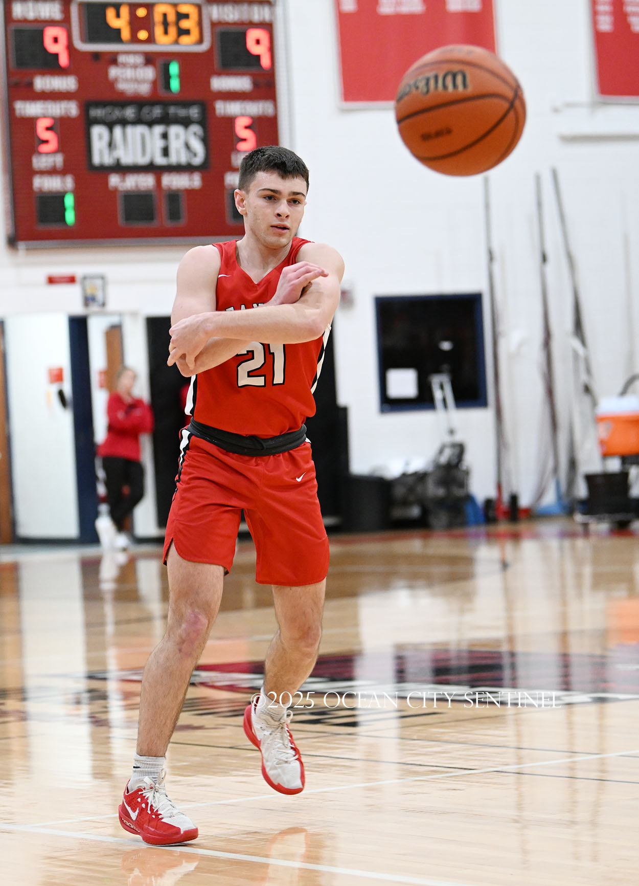 Raider Chris Pontari, who has gotten better as the season has progressed, scored 10 straight points for the Raiders. The top offensive threat for Ocean City this season, Josh Lenko, added 12 points.
