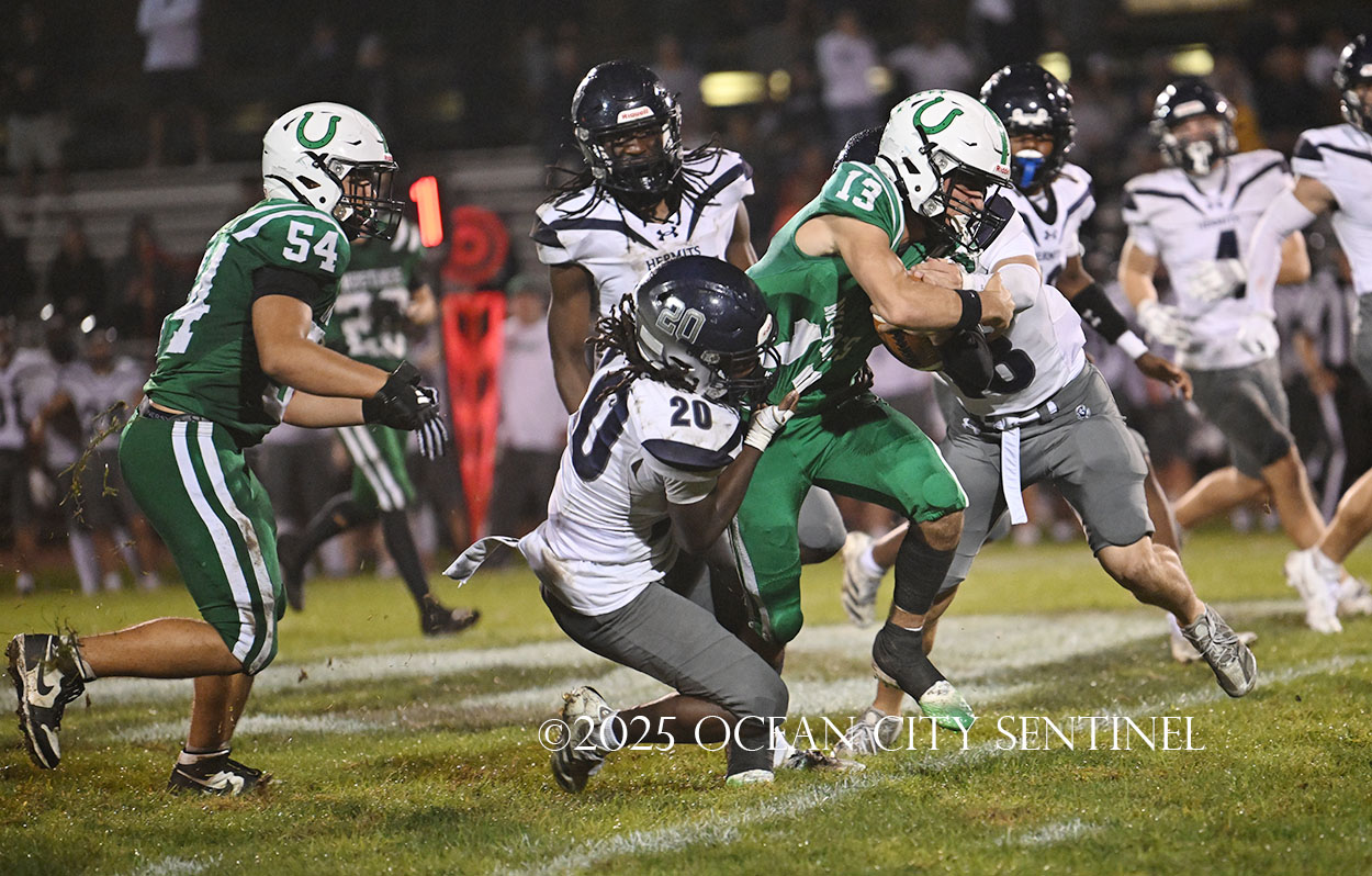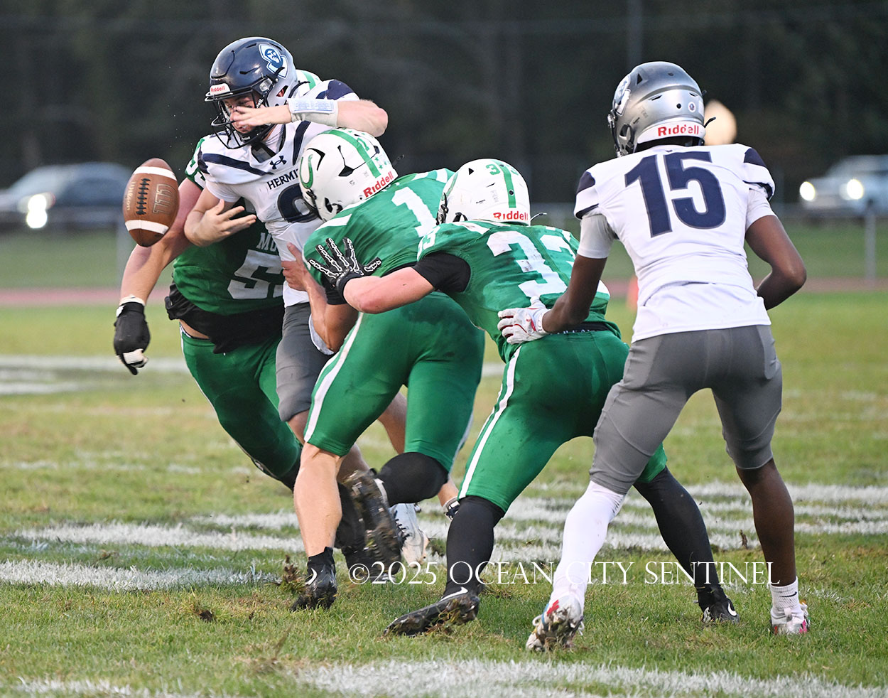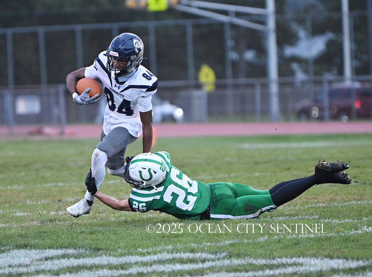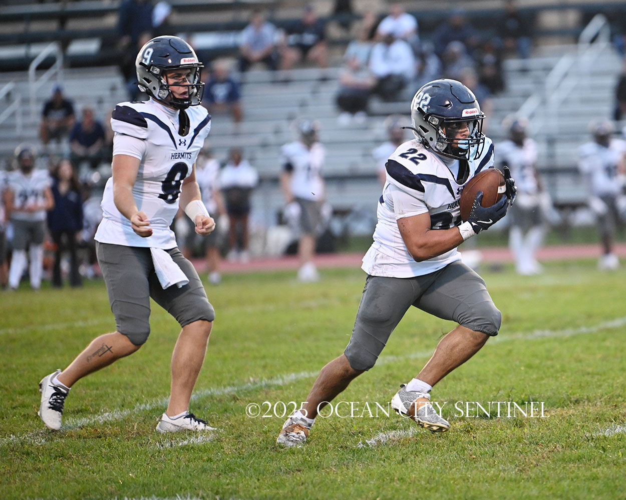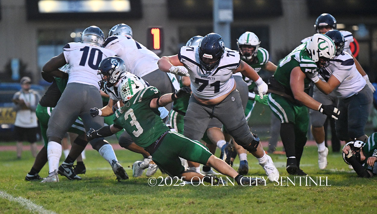 But the drive stalled due to a dropped ball and an incomplete pass, forcing a punt. The snap flew over the head of punter Nate Kashey and the Hermits recovered at Mainland’s 35-yard line.