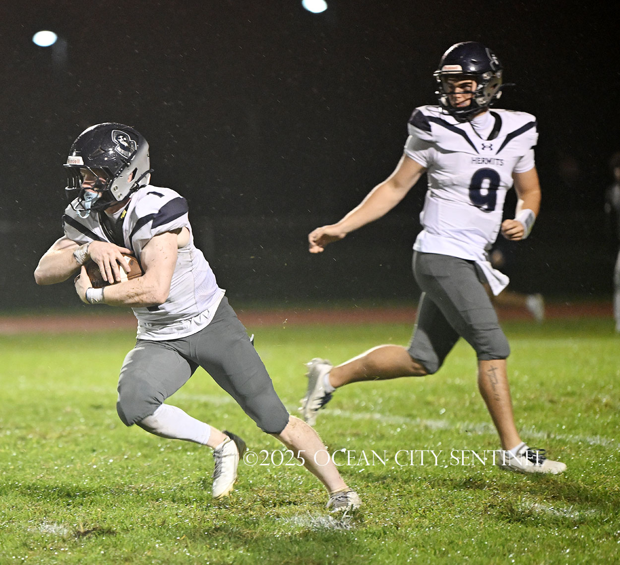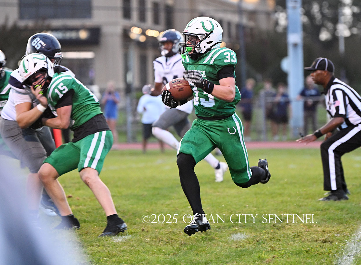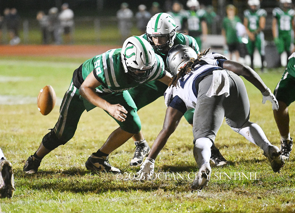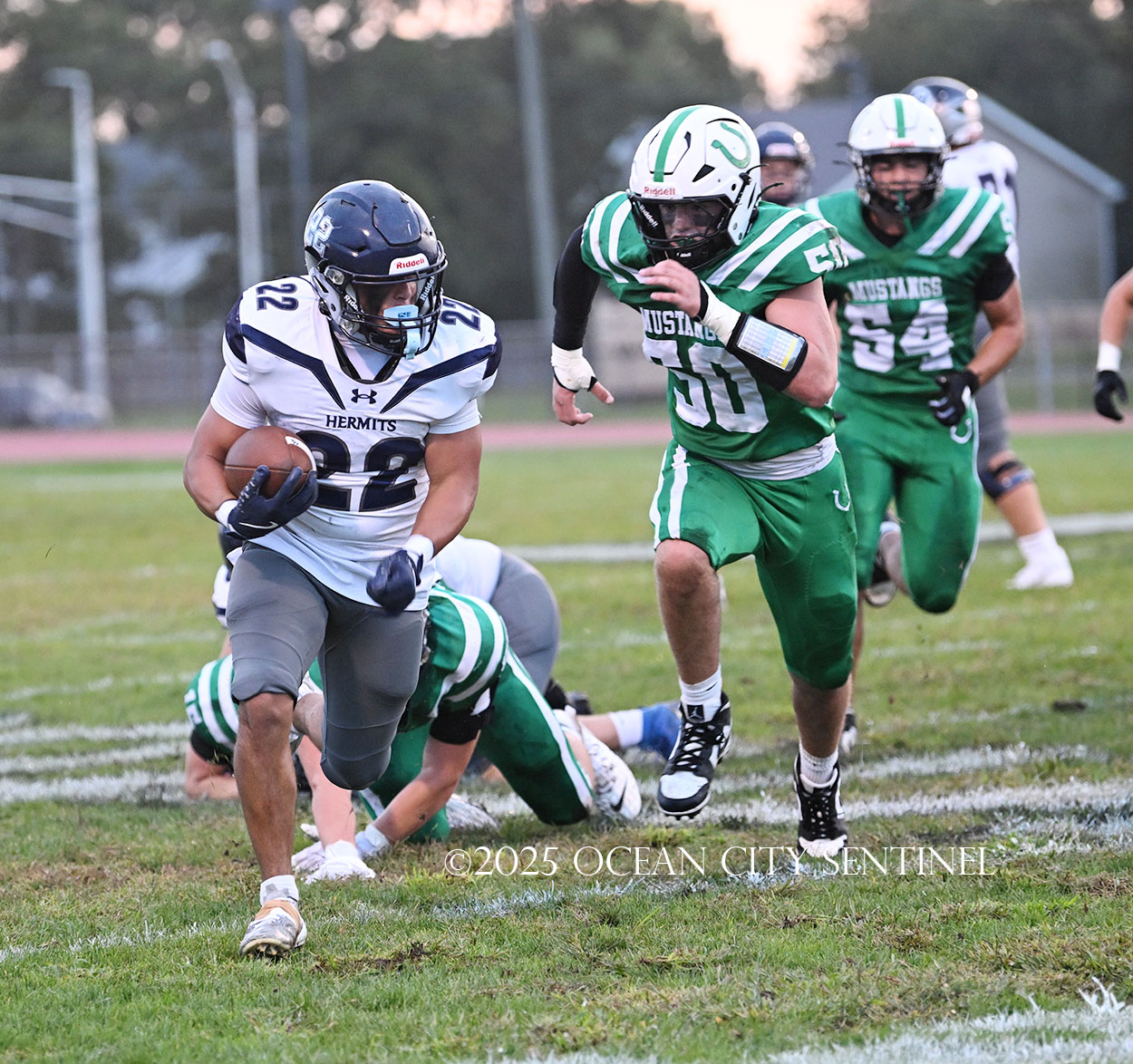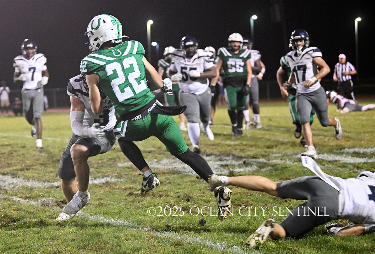 But the drive stalled due to a dropped ball and an incomplete pass, forcing a punt. The snap flew over the head of punter Nate Kashey and the Hermits recovered at Mainland’s 35-yard line.