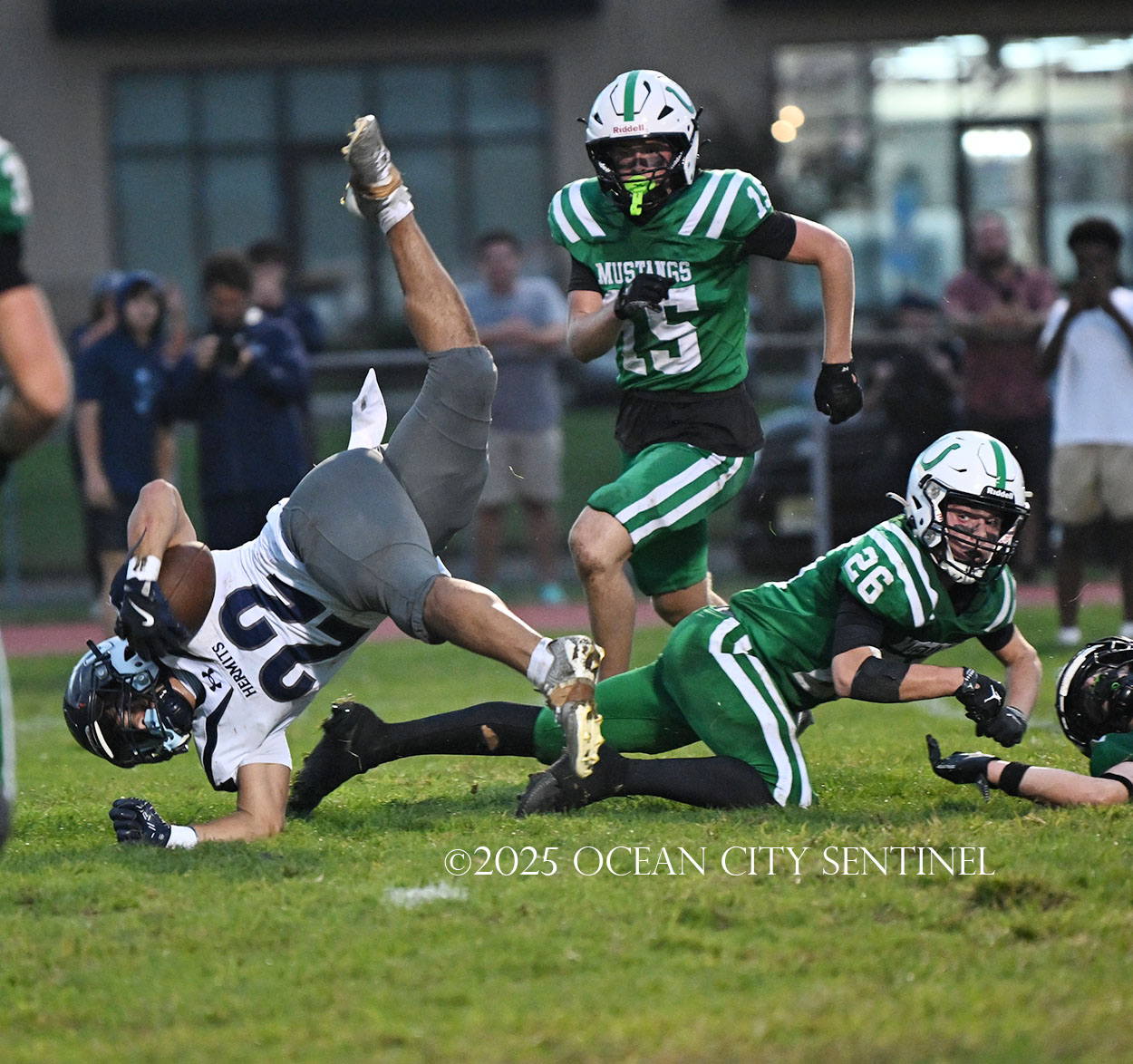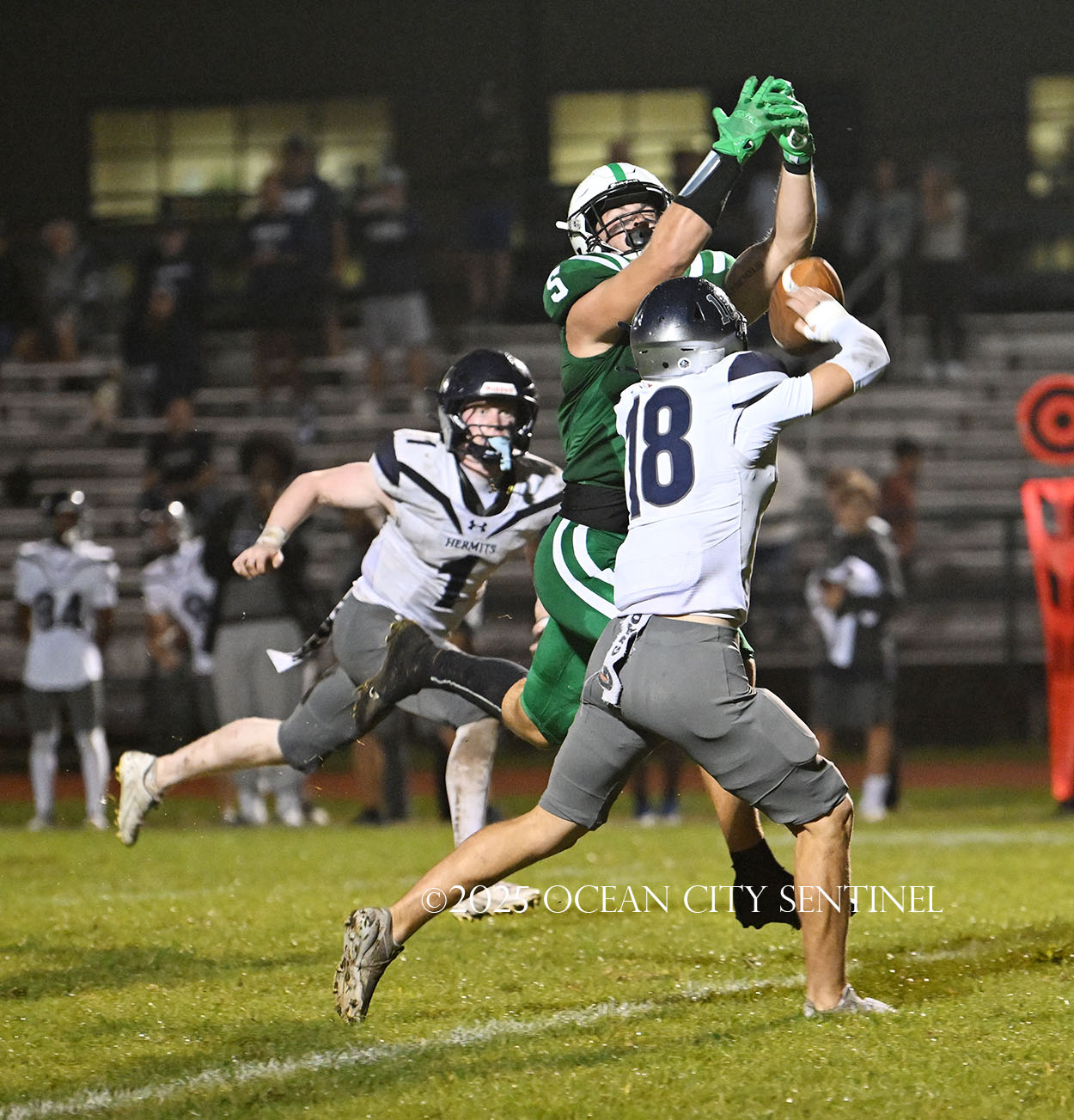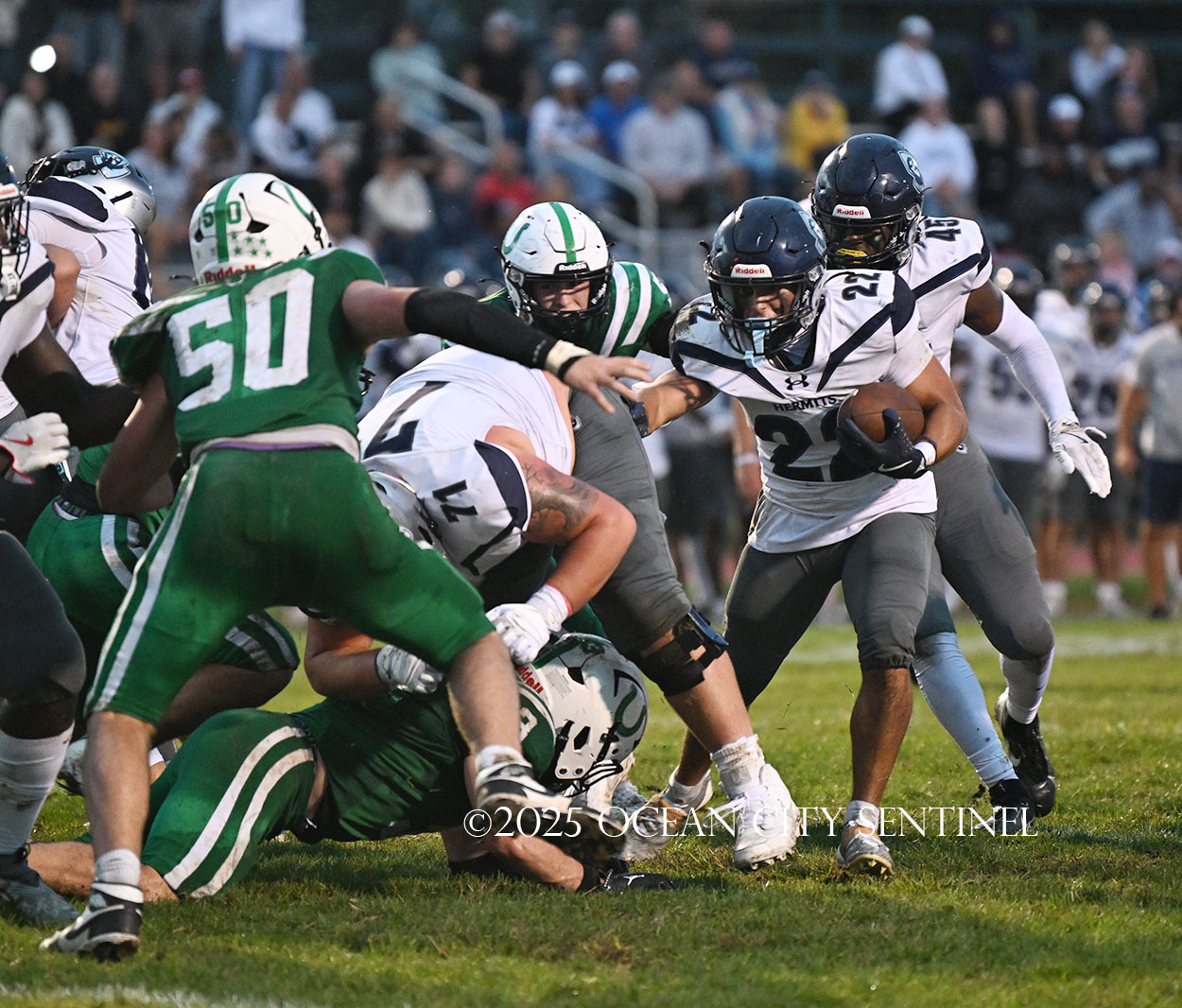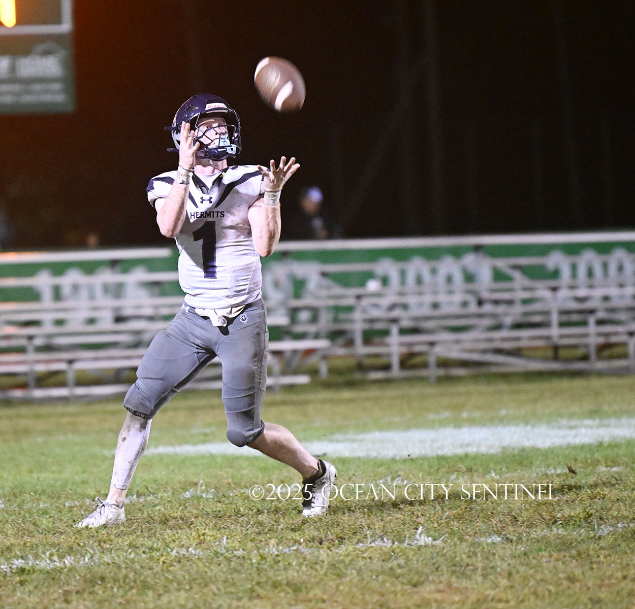 But the drive stalled due to a dropped ball and an incomplete pass, forcing a punt. The snap flew over the head of punter Nate Kashey and the Hermits recovered at Mainland’s 35-yard line.