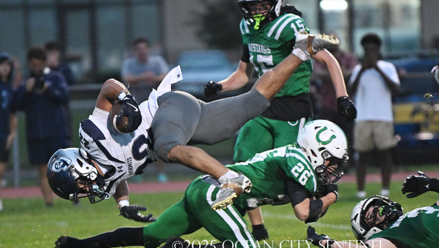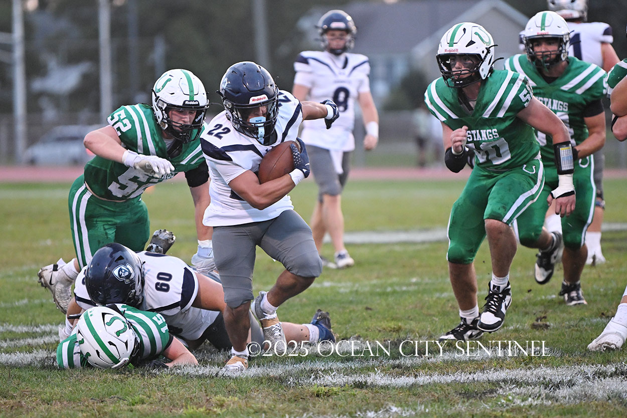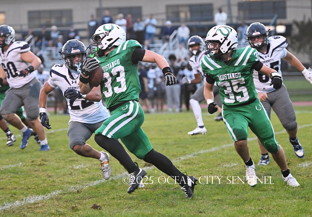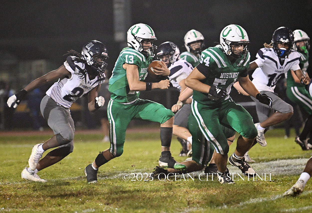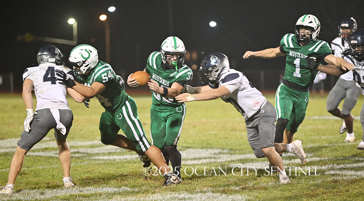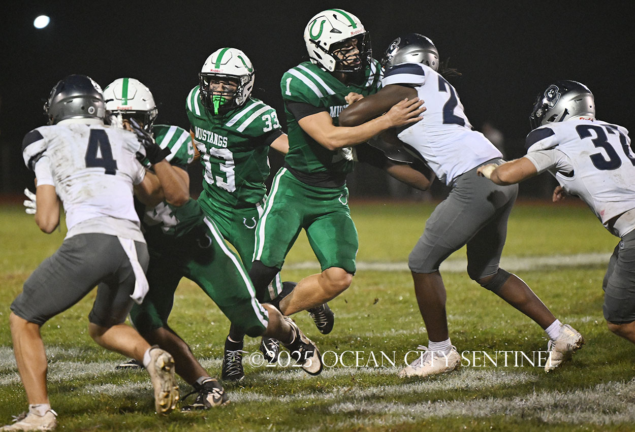 The Mustang head next to Carey Stadium in Ocean City for an afternoon game Friday, Oct. 3, against the rival Ocean City High School Red Raiders. Game time is 3 p.m.