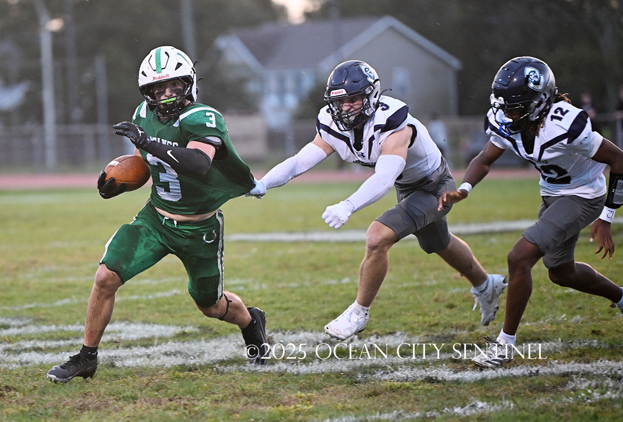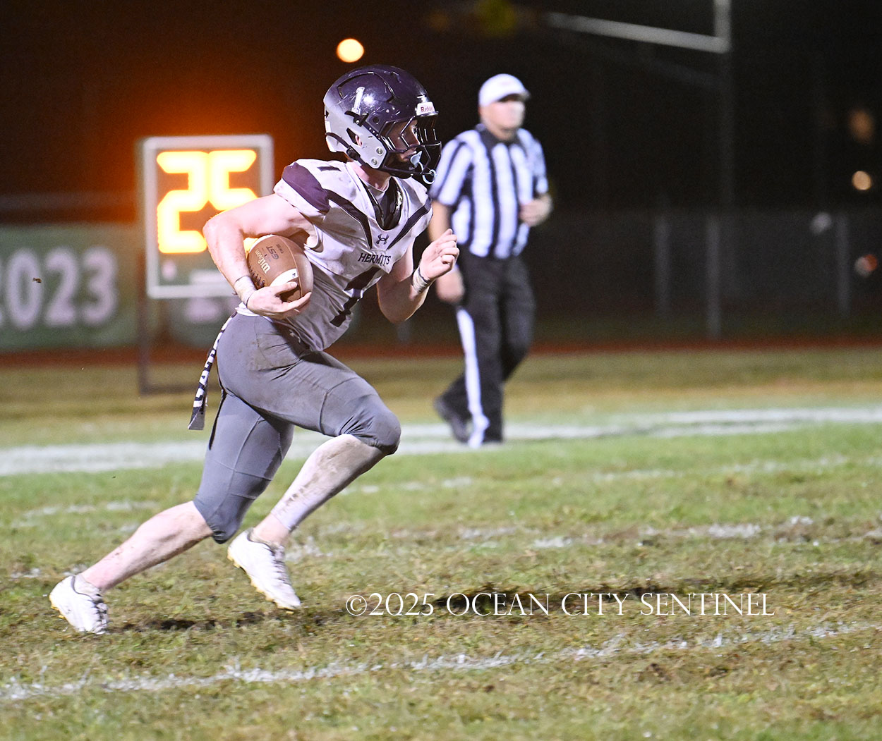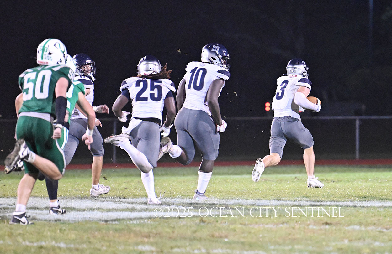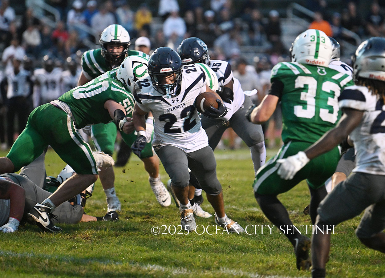 Starting from Mainland’s 40-yard line, Chirico, filling in for star running back Roman Coney (9 touchdowns), ran right for 21 yards to give the Hermits a first down at the 19.
