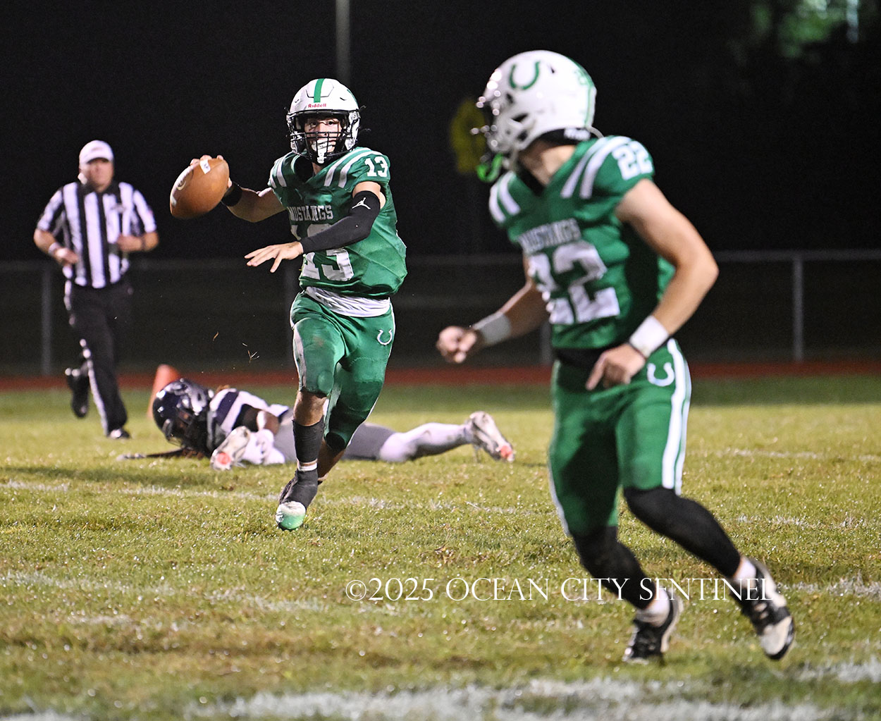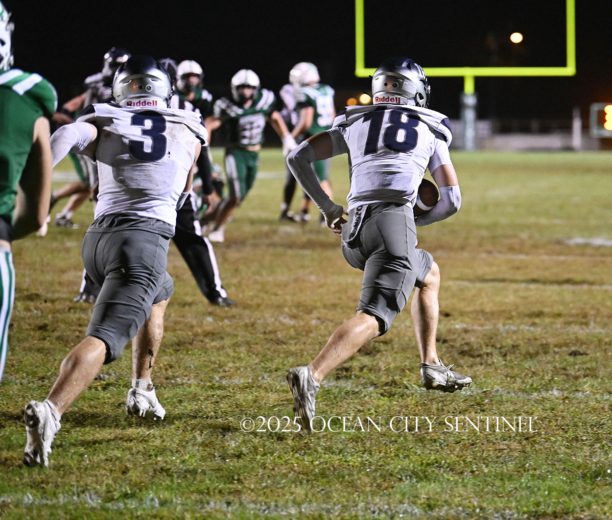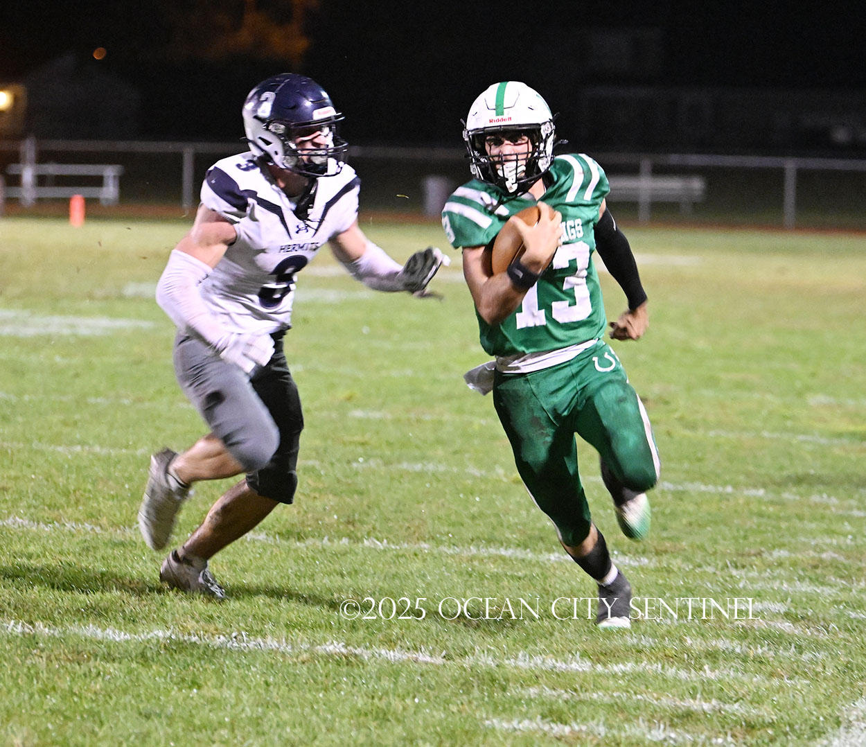 Starting from Mainland’s 40-yard line, Chirico, filling in for star running back Roman Coney (9 touchdowns), ran right for 21 yards to give the Hermits a first down at the 19.