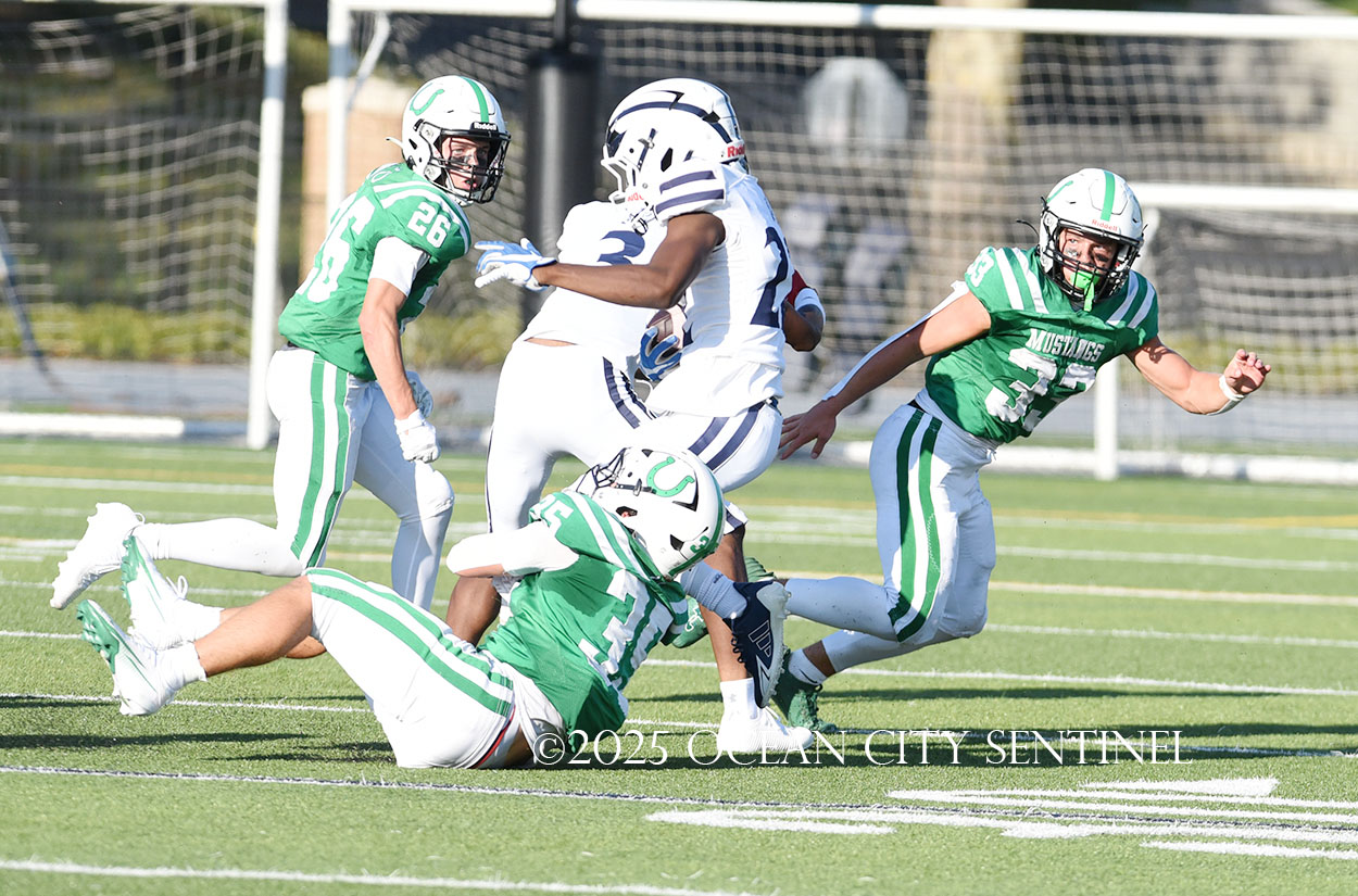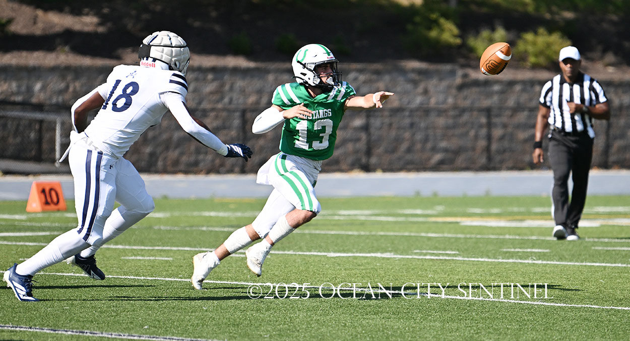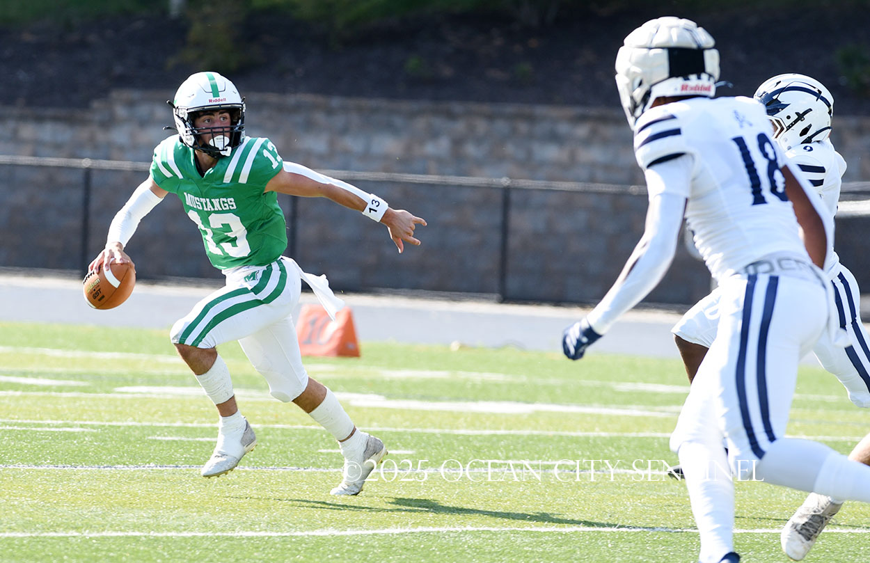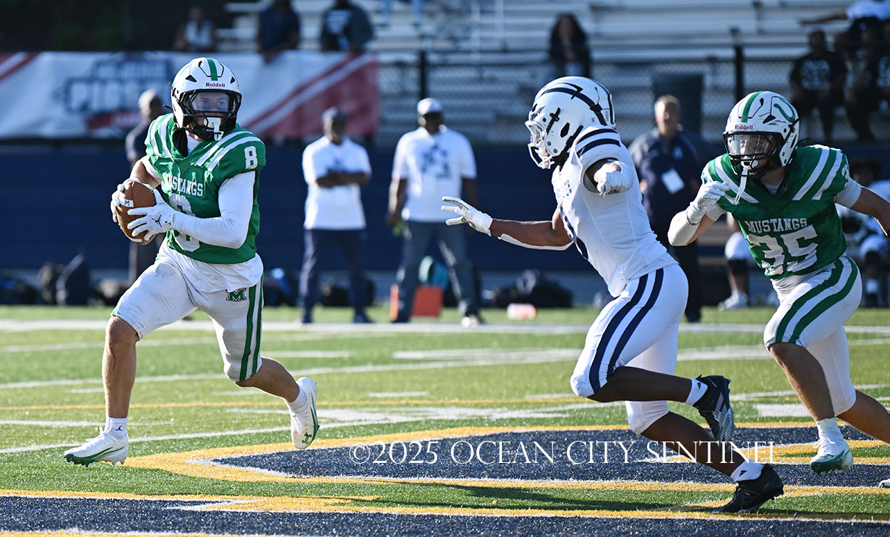 WILMINGTON, DEL. – The road toward Mainland Regional High School’s appearance in a third straight state championship game isn’t going to be smooth. The Mustangs found that out in Wilmington, Del., Aug. 29 against Atlantic City High School.