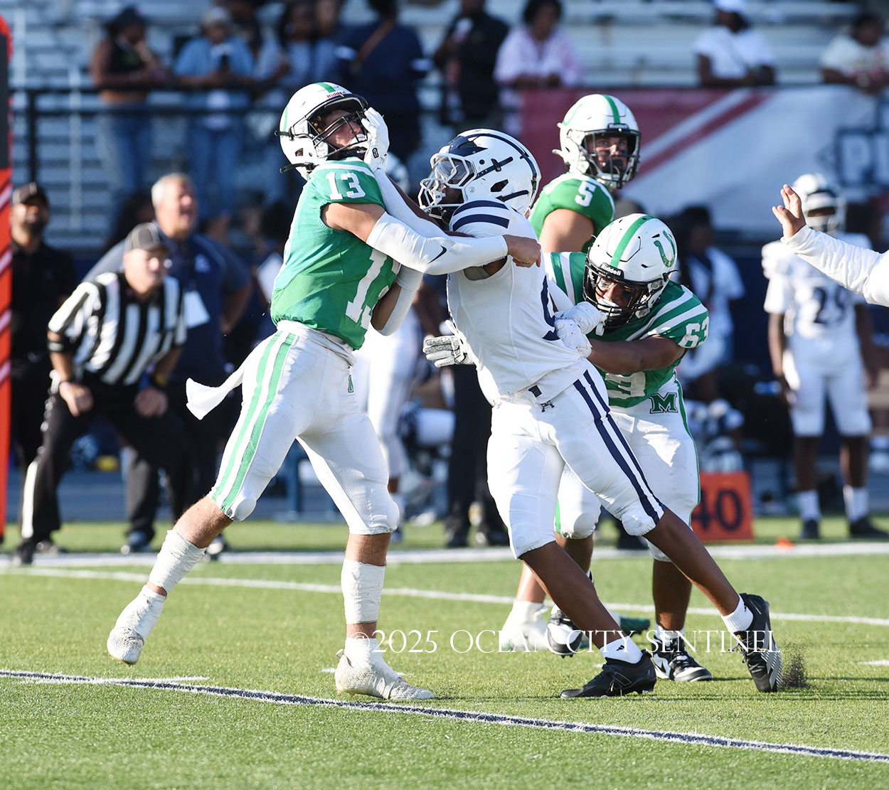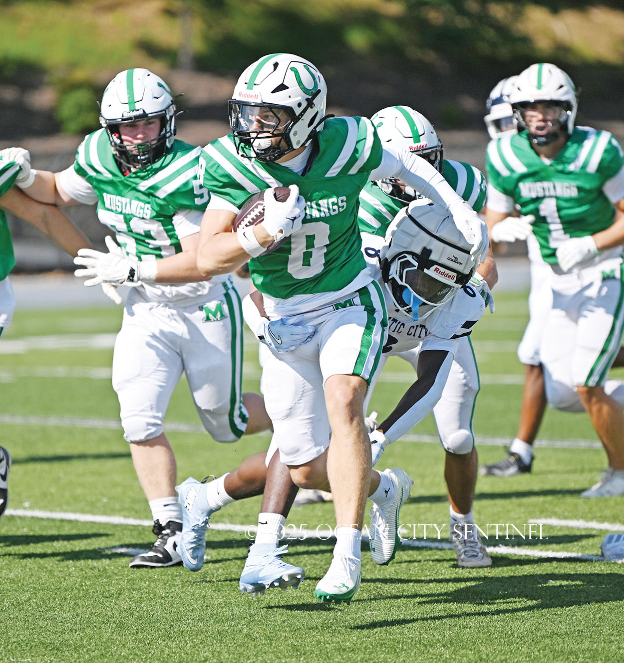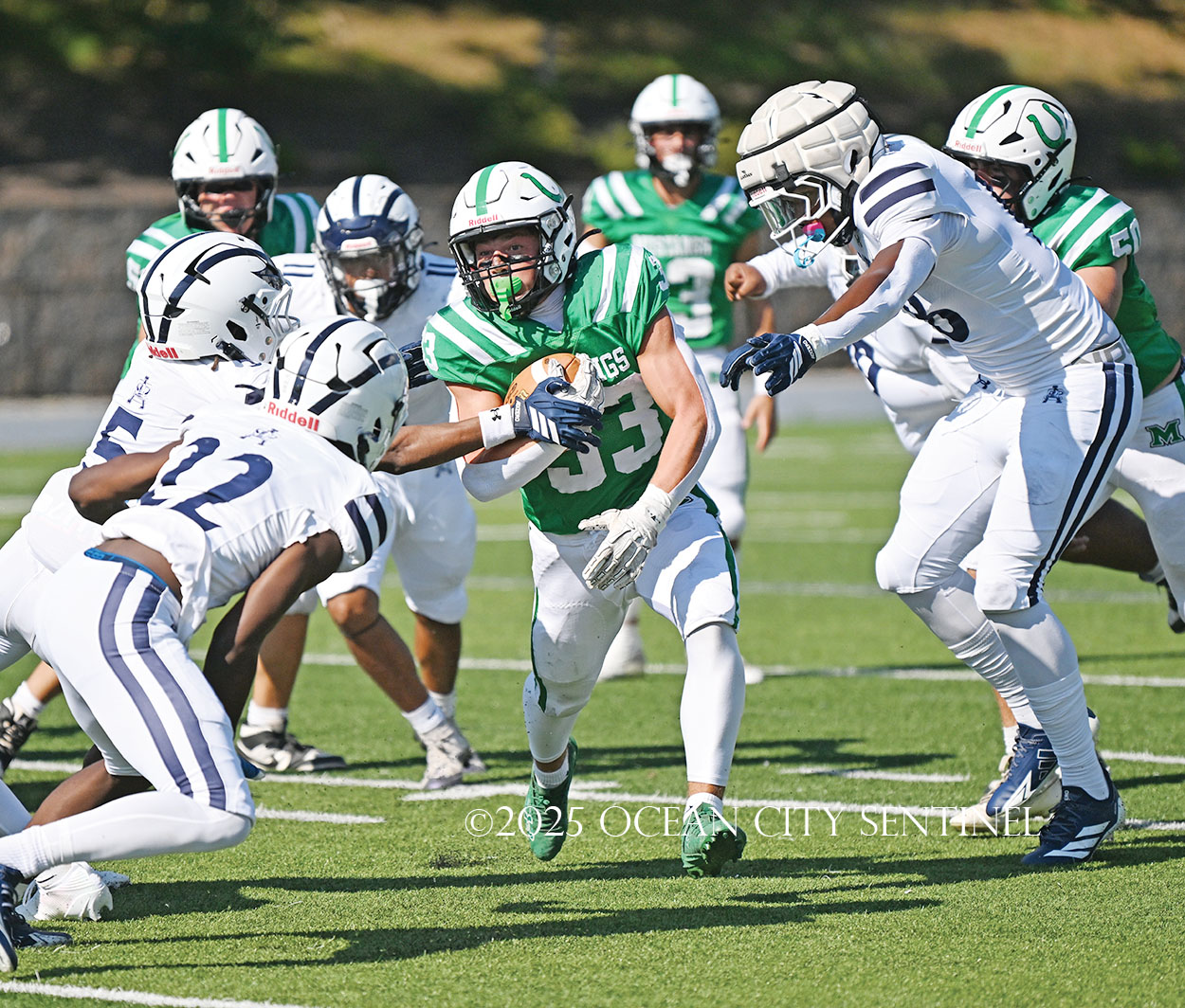 WILMINGTON, DEL. – The road toward Mainland Regional High School’s appearance in a third straight state championship game isn’t going to be smooth. The Mustangs found that out in Wilmington, Del., Aug. 29 against Atlantic City High School.