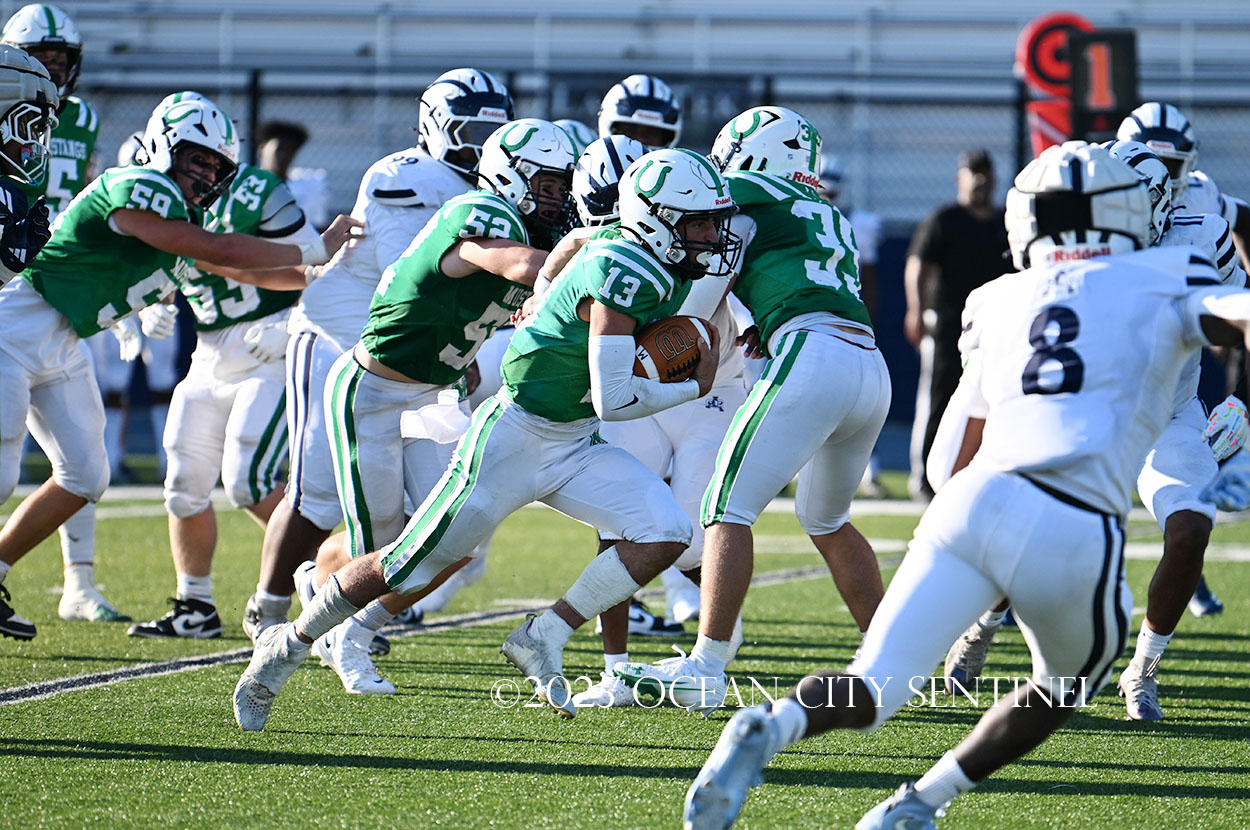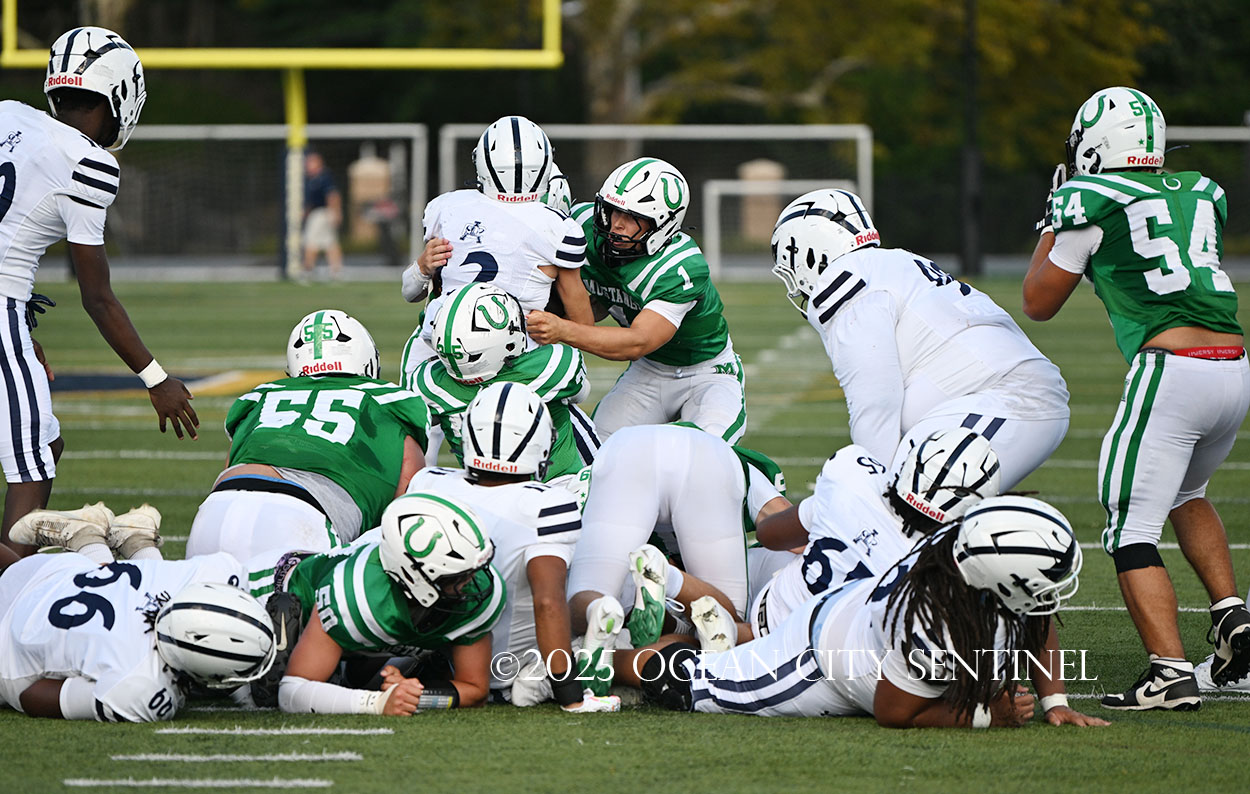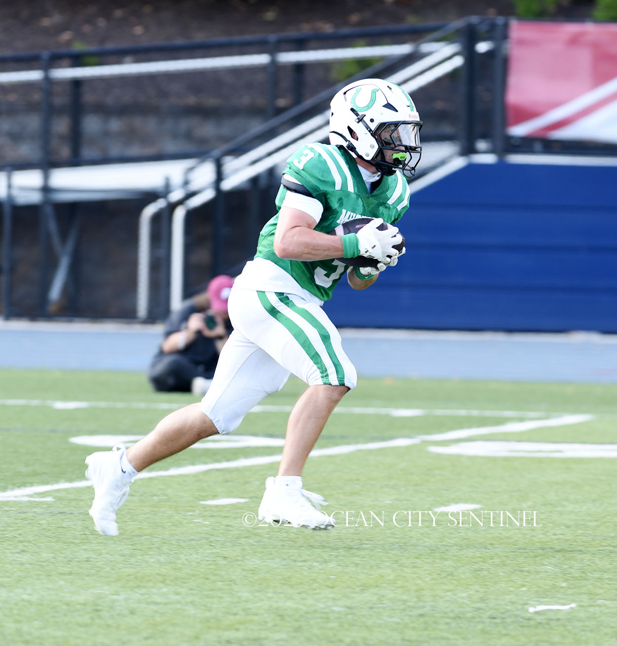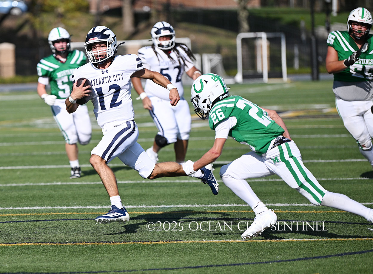 Despite Mainland’s defensive line forcing him out of the pocket, Vikings quarterback Kevin Entress stayed alive with his legs. His throws on the run and scrambles on third downs kept the Mainland offense off the field. Entress eventually scored on a tush-push like play from the one-yard line to extend Atlantic City’s lead to 13-0 at halftime.