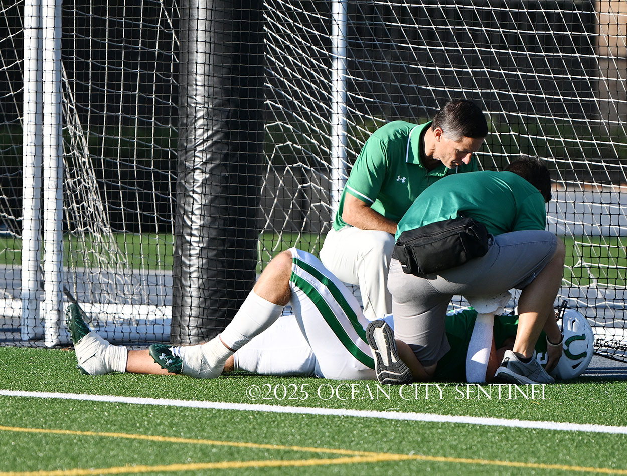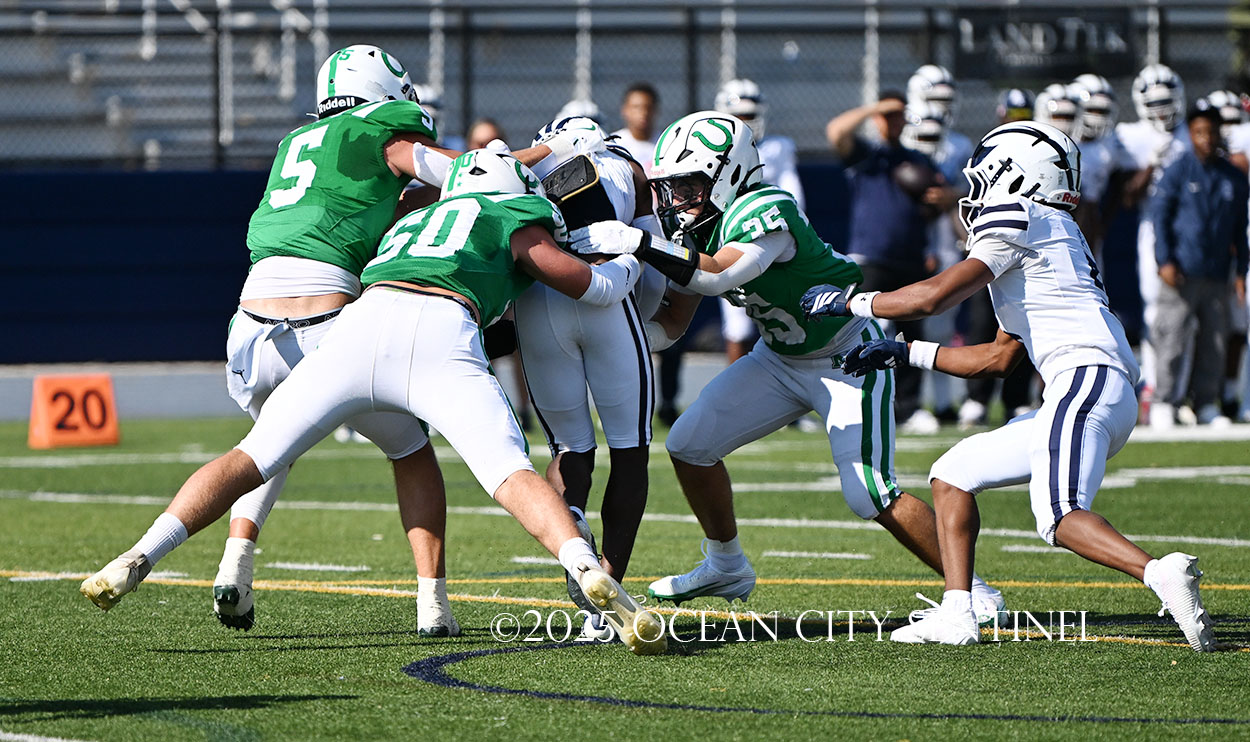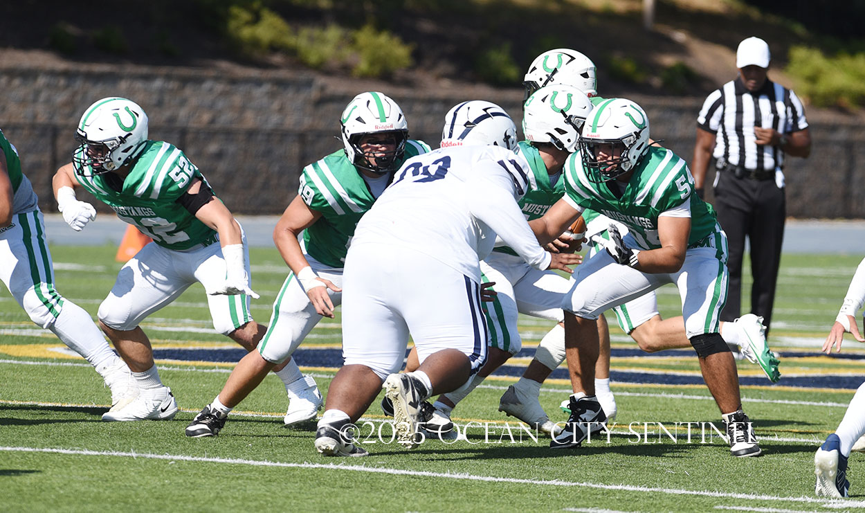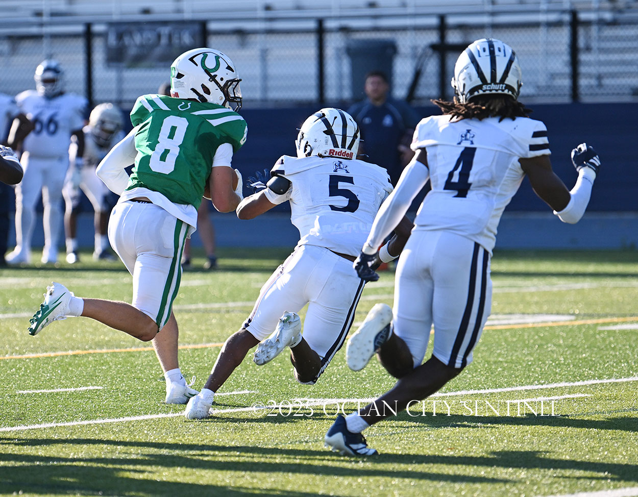Despite Mainland’s defensive line forcing him out of the pocket, Vikings quarterback Kevin Entress stayed alive with his legs. His throws on the run and scrambles on third downs kept the Mainland offense off the field. Entress eventually scored on a tush-push like play from the one-yard line to extend Atlantic City’s lead to 13-0 at halftime.