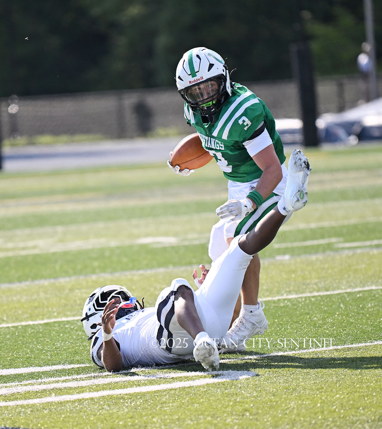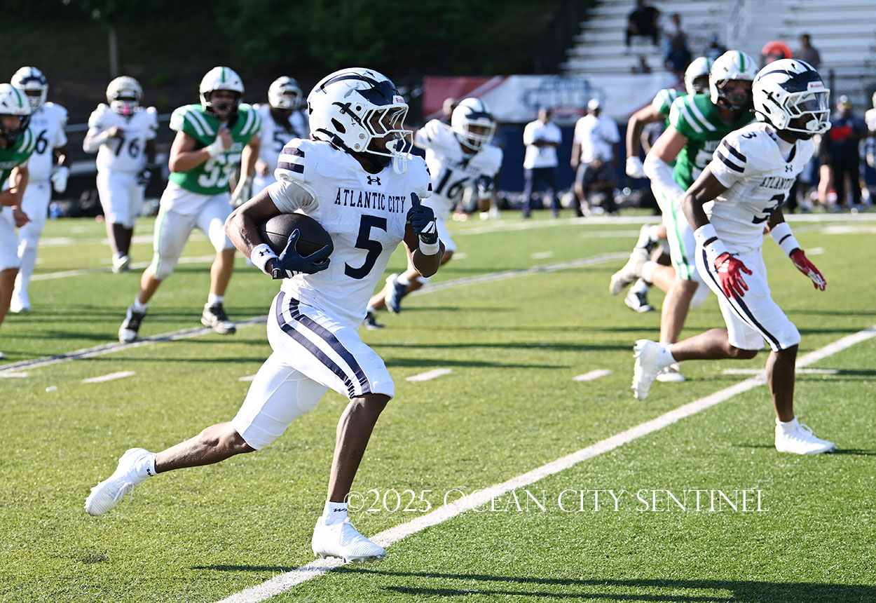Atlantic City led from its opening possession and never relinquished the lead as the Vikings stunned the Mainland Mustangs 25-8. The game was part of the Mid-Atlantic Pigskin Classic which brought schools from around the region to kick off the 2025 football season.
