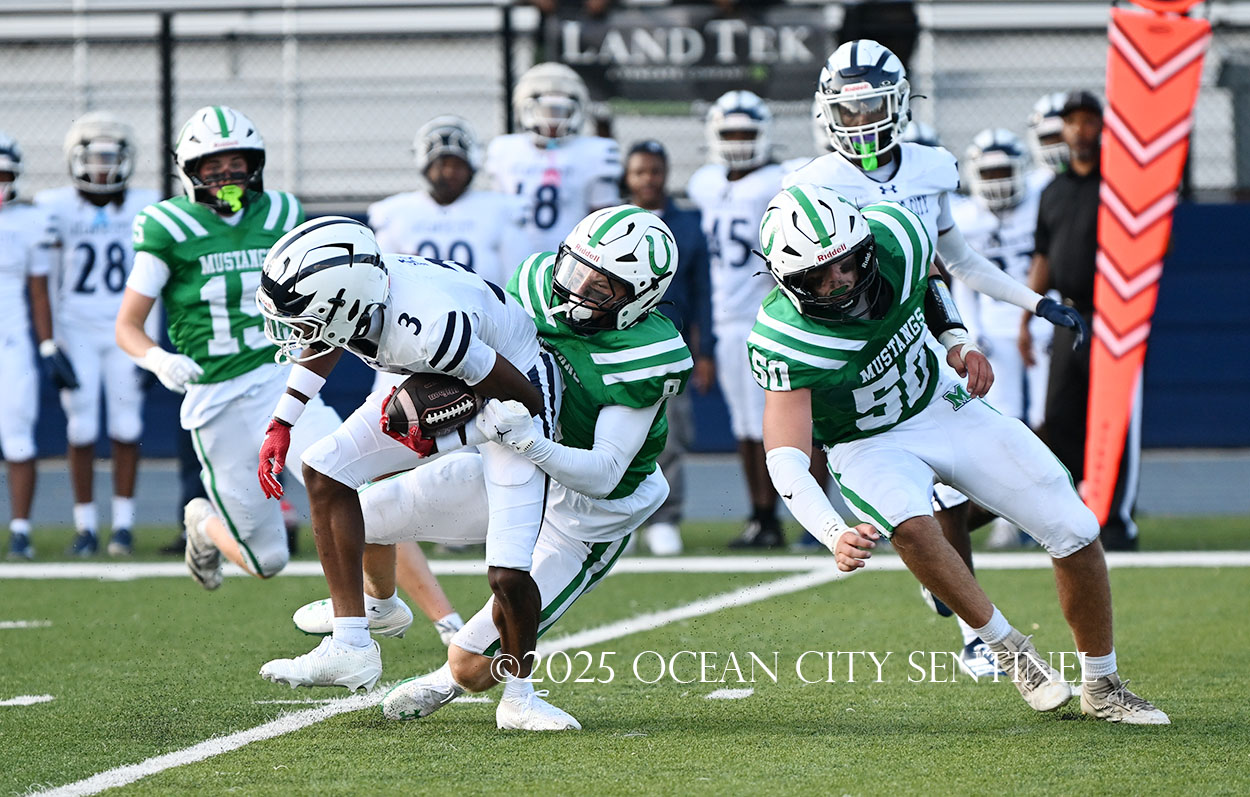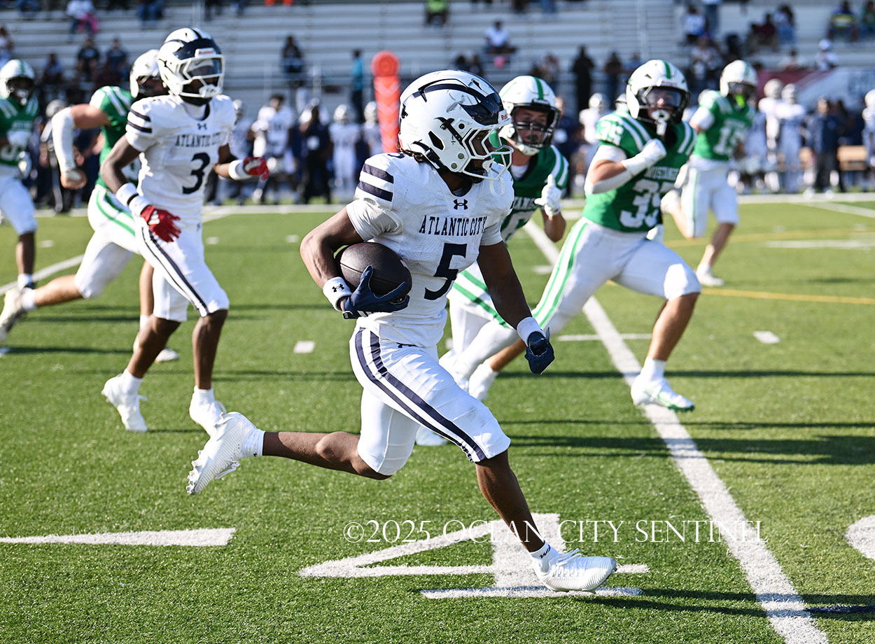 Atlantic City slowed down in the second half as the Mustangs rushed Entress and forced him into a couple close interceptions. After avoiding the turnovers, Entress put Atlantic City up by three possessions with a touchdown pass to Don’Taye Thompson.