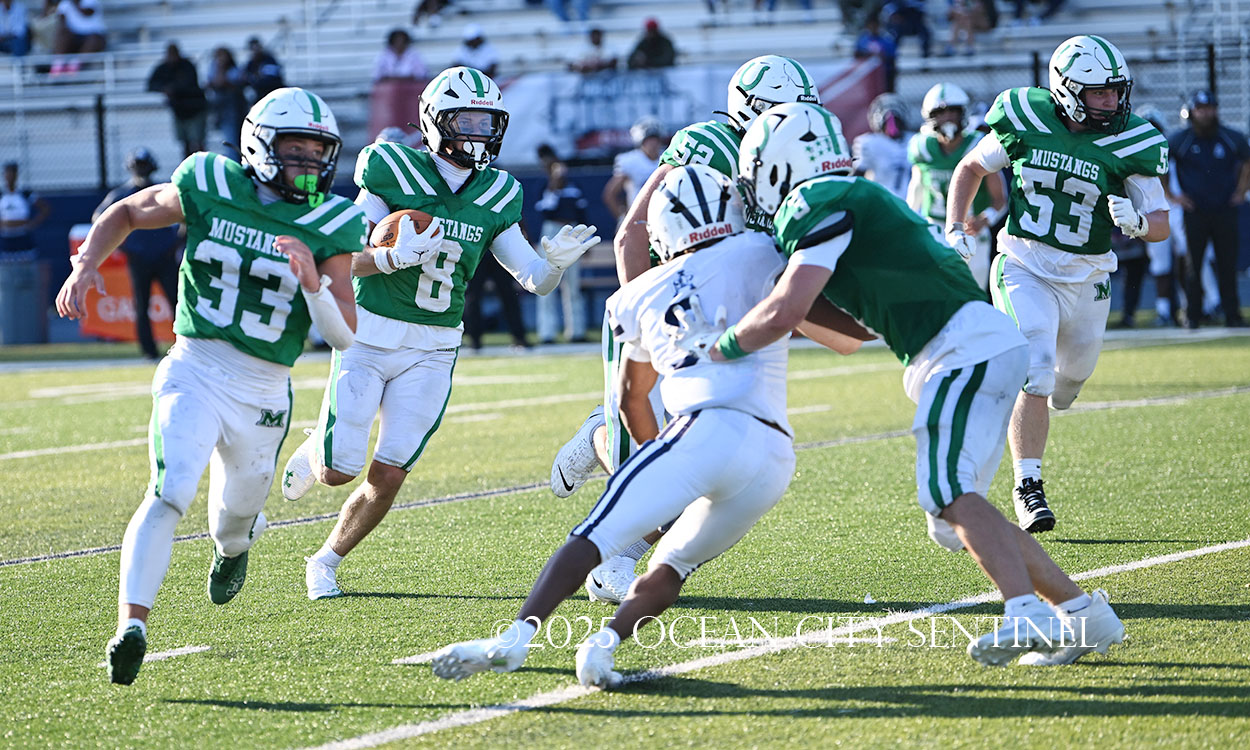 Down two possessions with only nine minutes left Mainland needed a quick stop on defense to have a chance at a comeback. The Mustangs nearly forced an Atlantic City three-and-out, but Entress broke containment and just made the first down marker. On the next play, Day drove in the final nail with a 67-yard touchdown catch to add on to his monster day and hand Mainland the 25-8 loss.