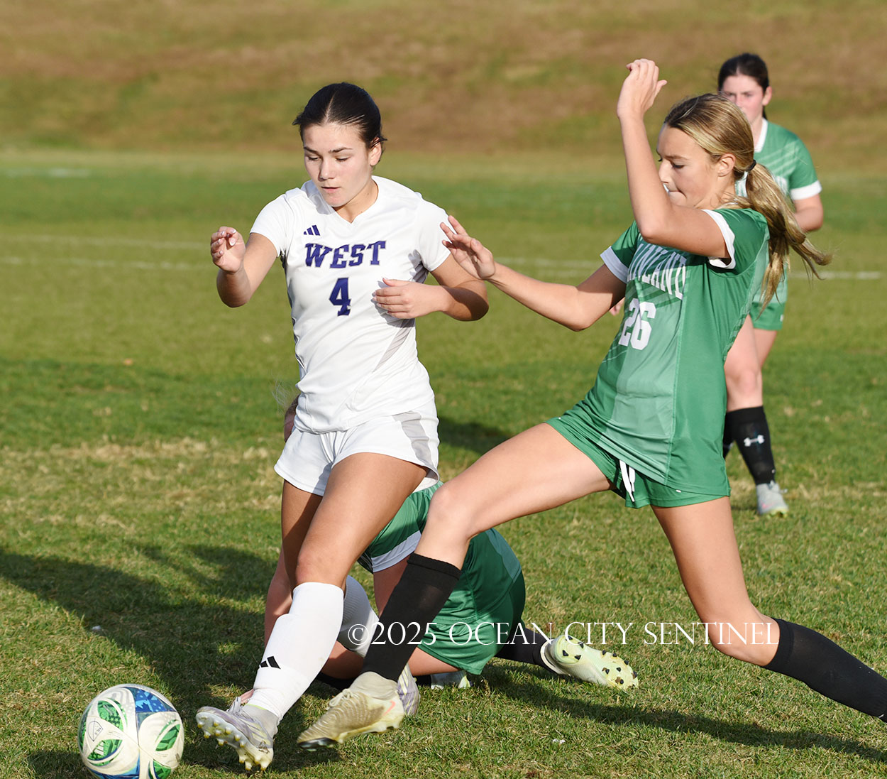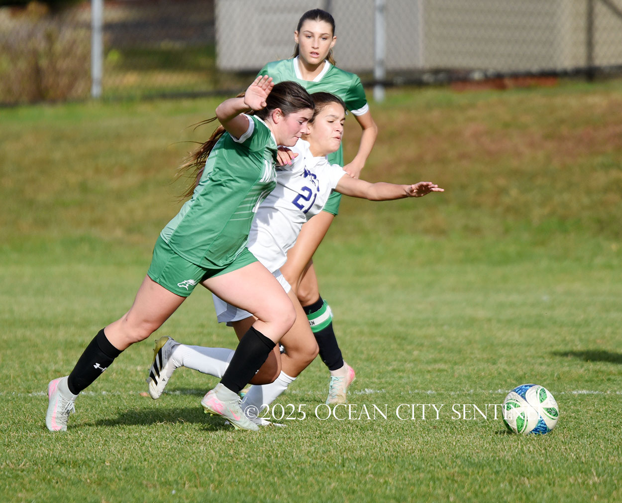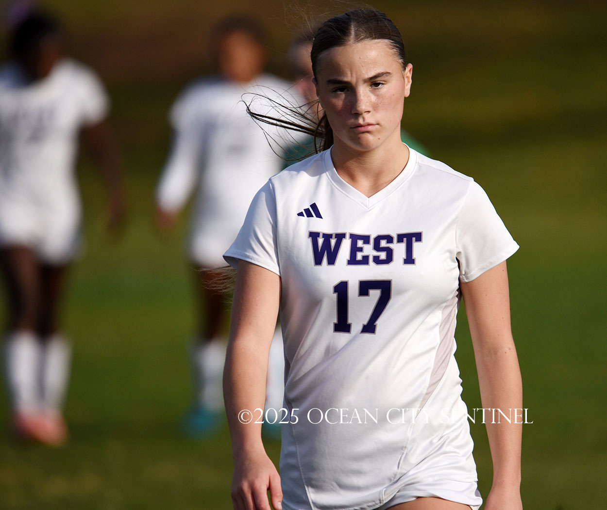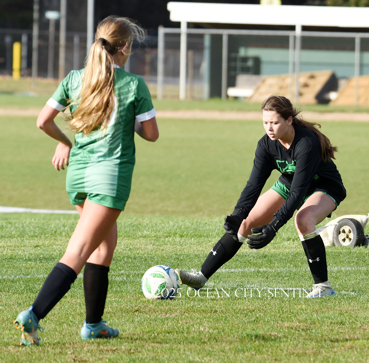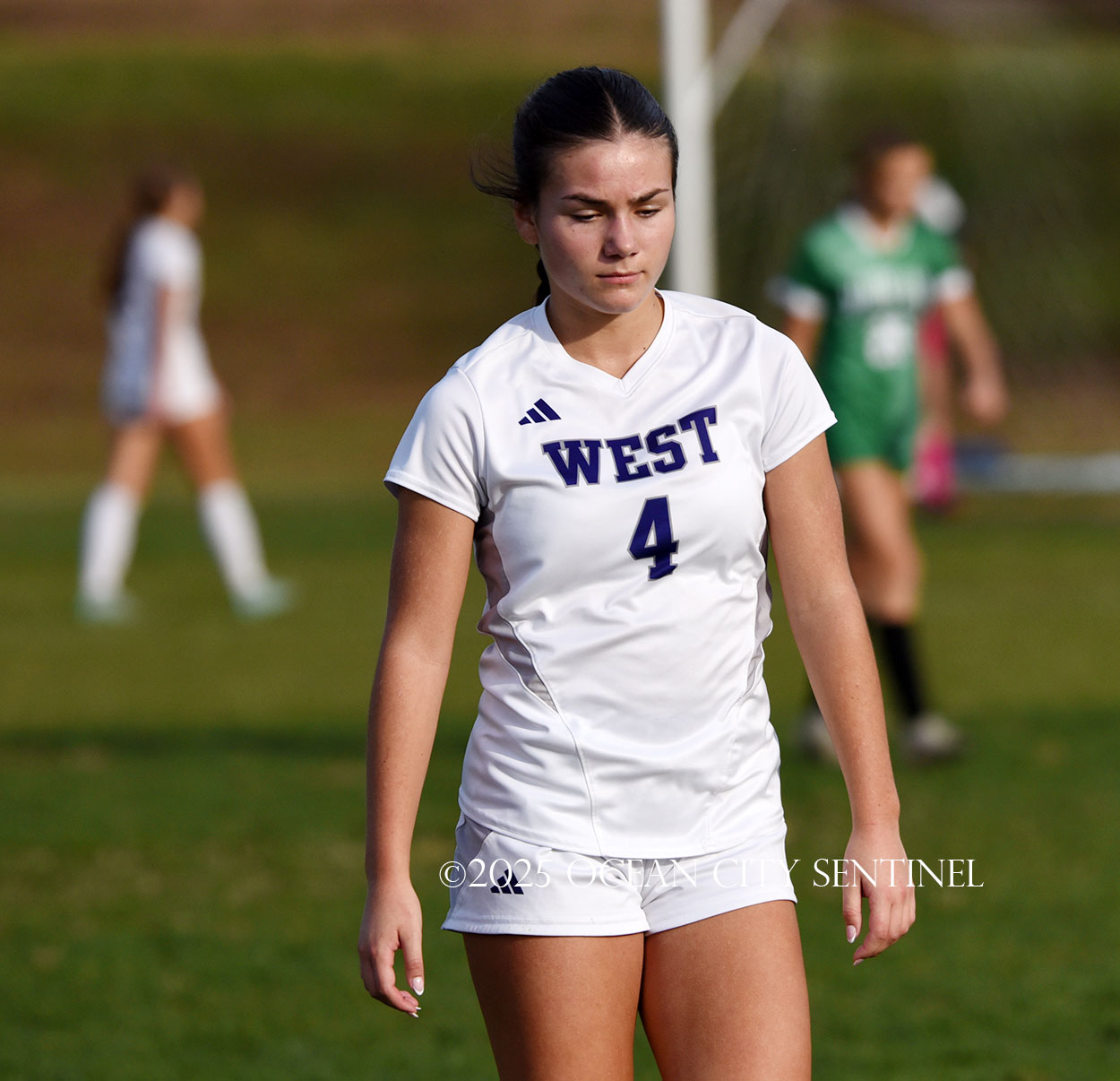 Center midfielder Reilly Nagle had her hands full as Jarrett played a lot of balls to midfield.