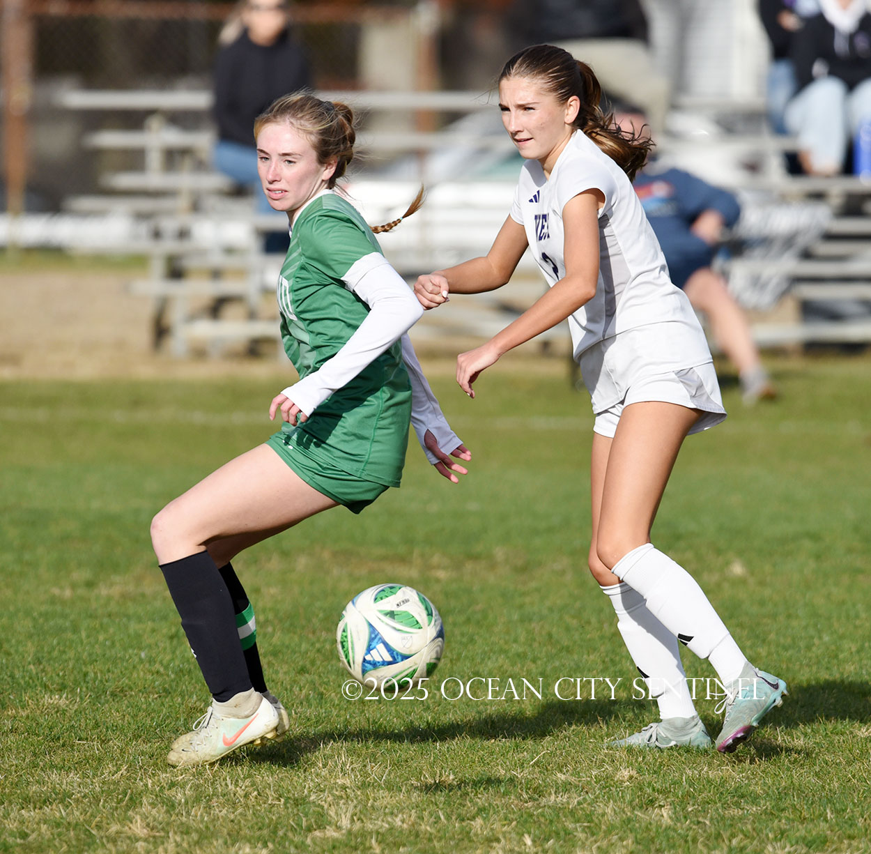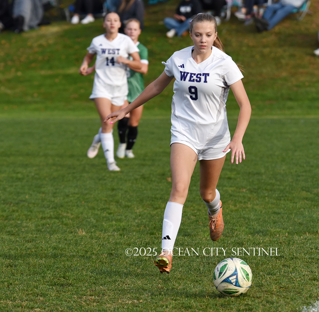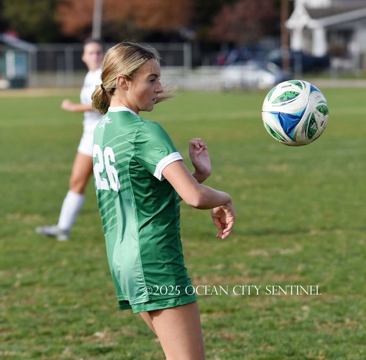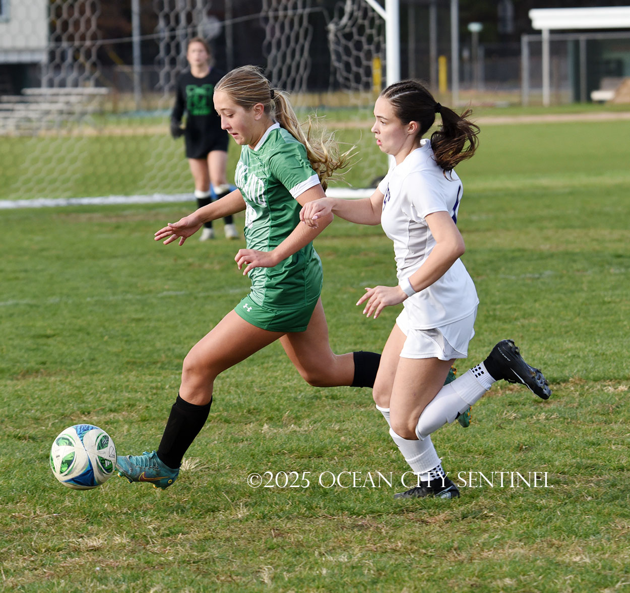 Center midfielder Reilly Nagle had her hands full as Jarrett played a lot of balls to midfield.