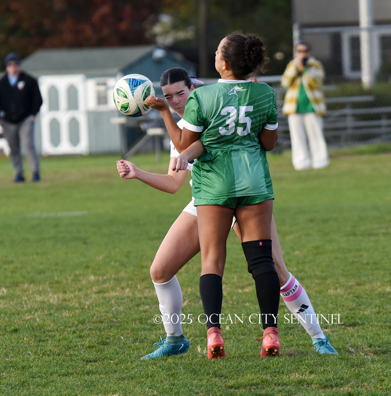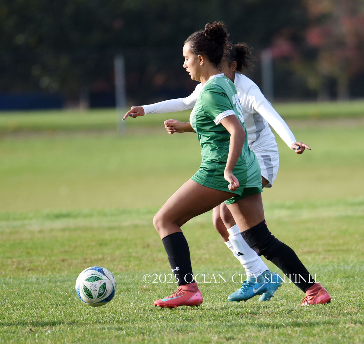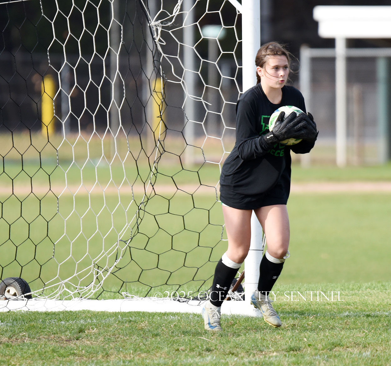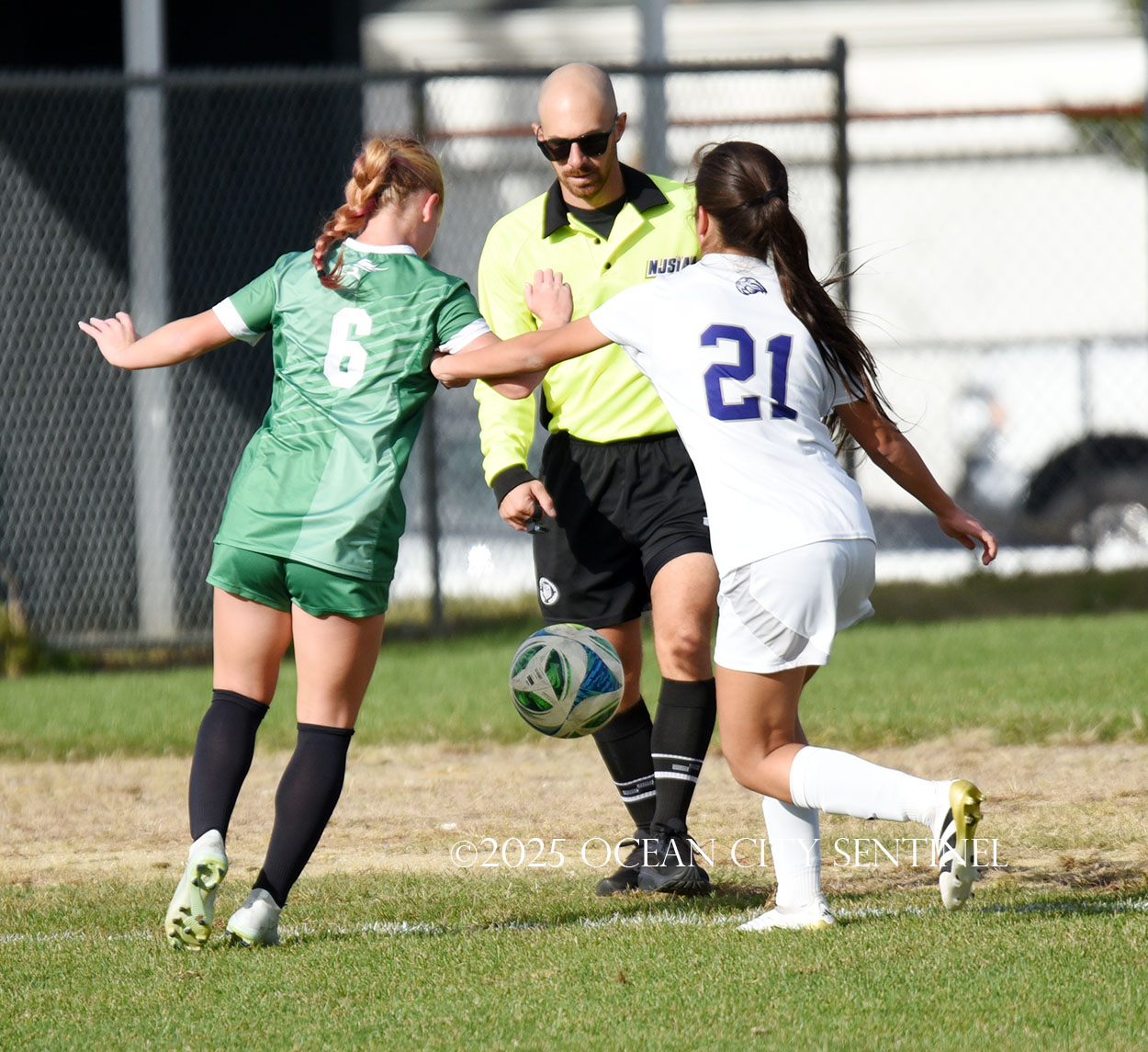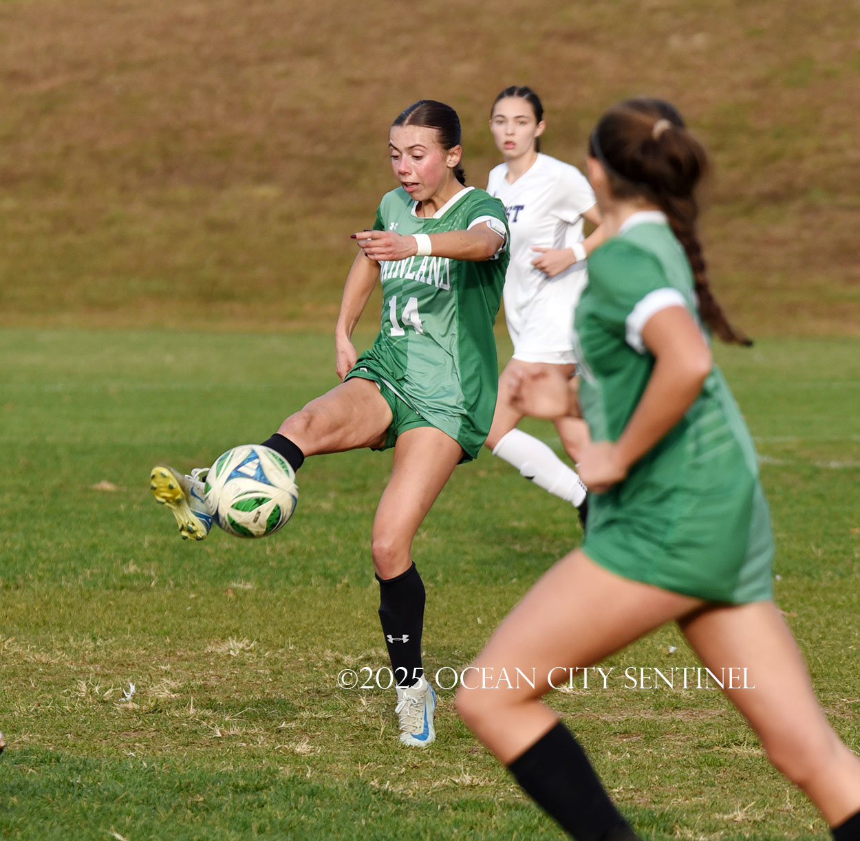 Center midfielder Reilly Nagle had her hands full as Jarrett played a lot of balls to midfield.