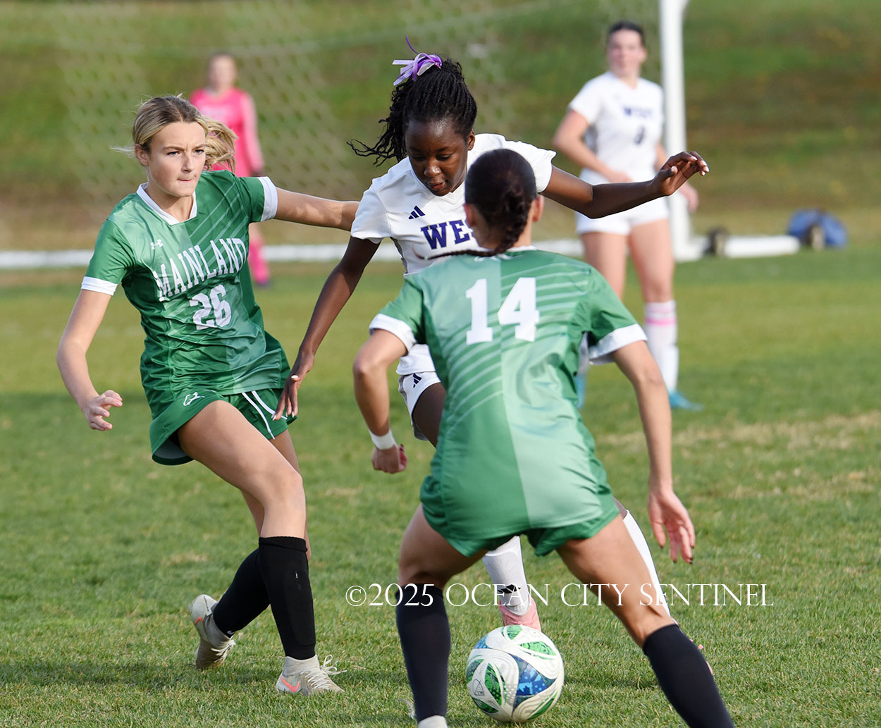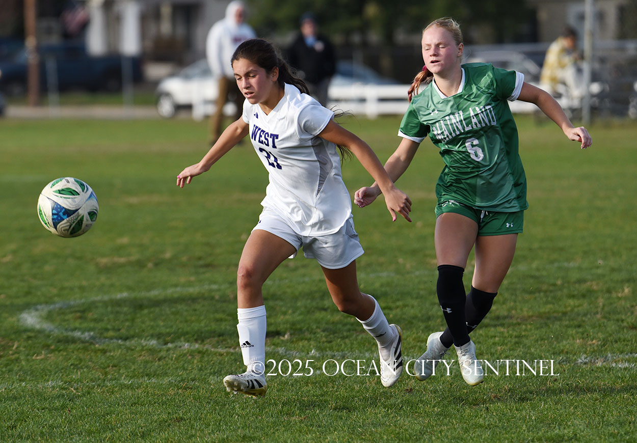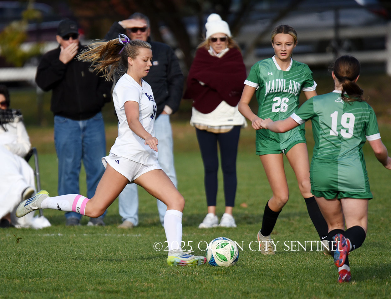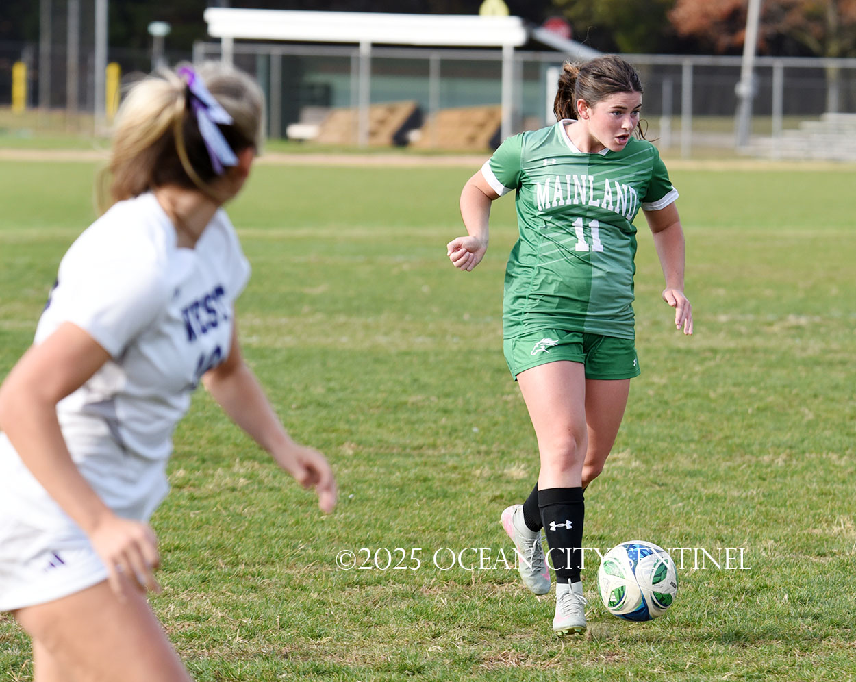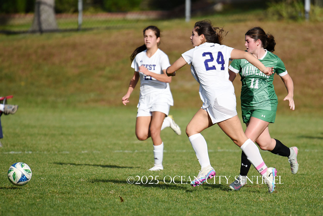Mainland started the game strong, getting two shots from junior Emma Tenaglia in the first 5 minutes, but the momentum quickly shifted as Cherry Hill West got three corner kicks in a row.