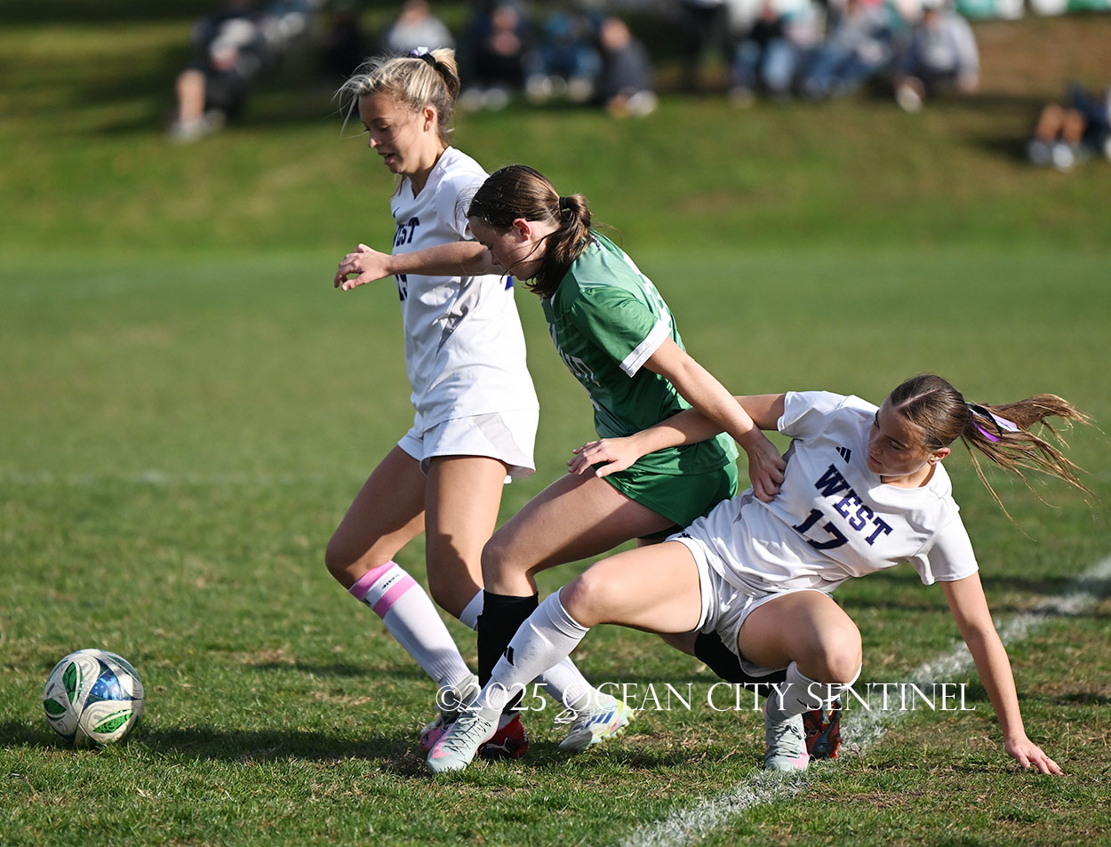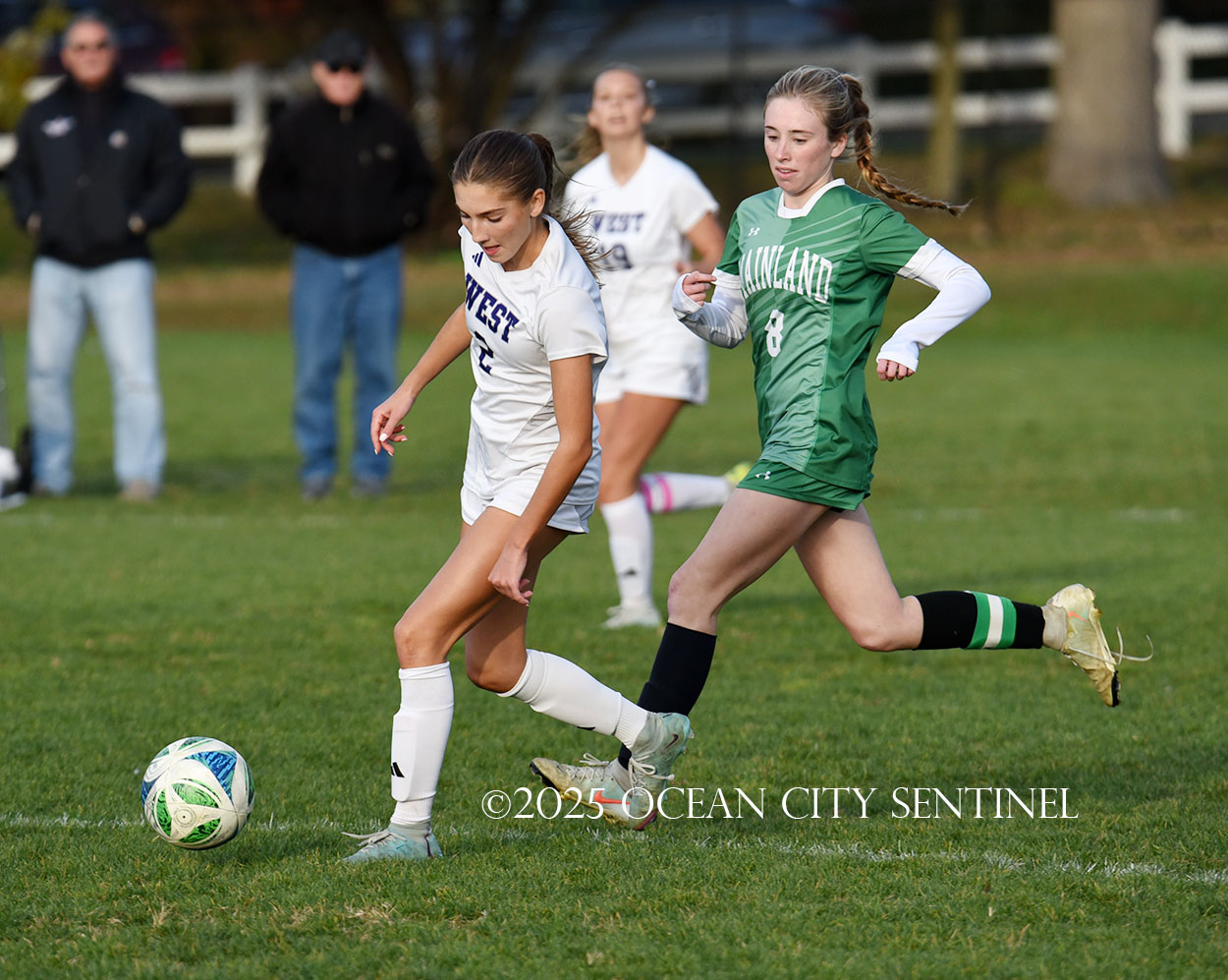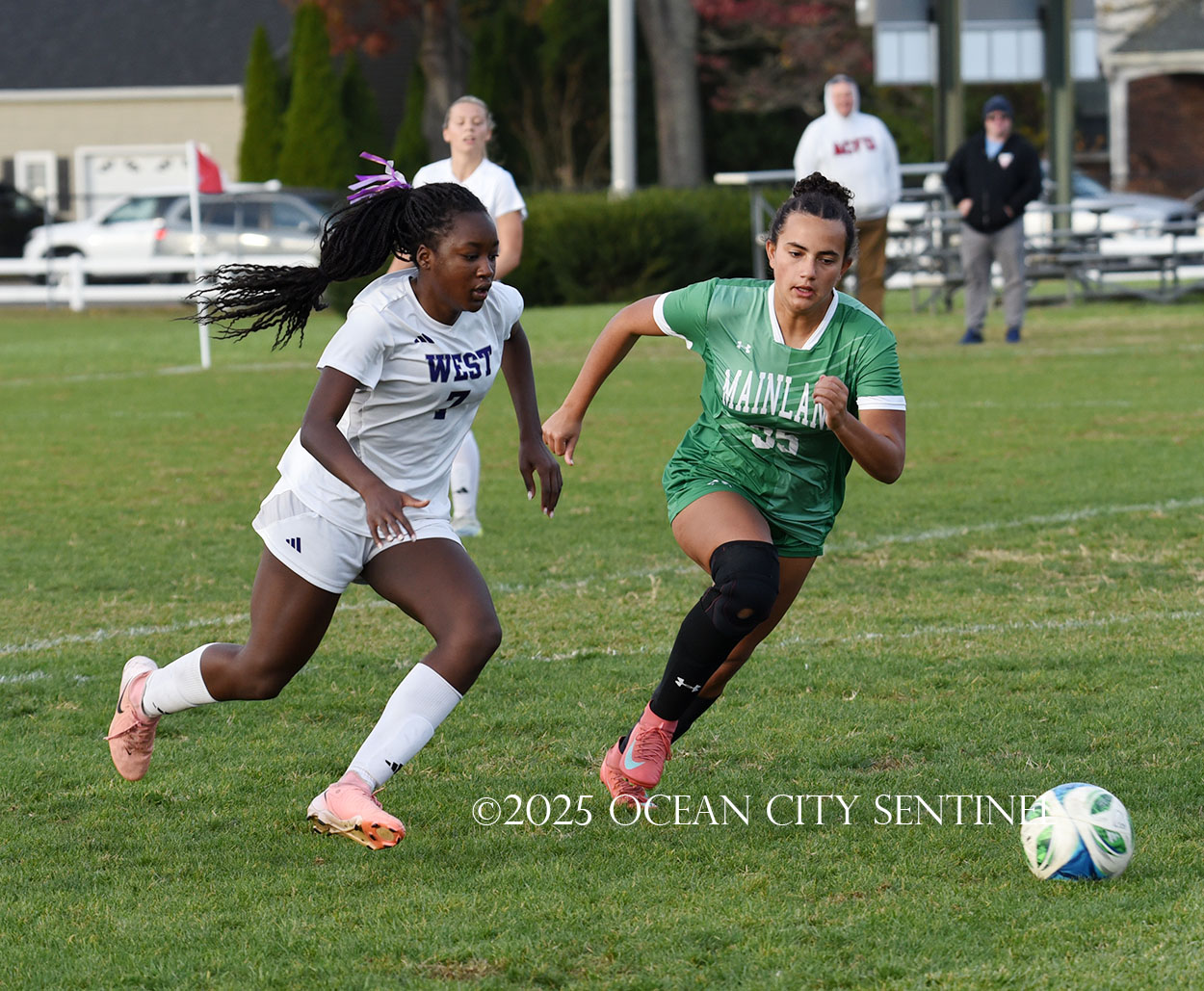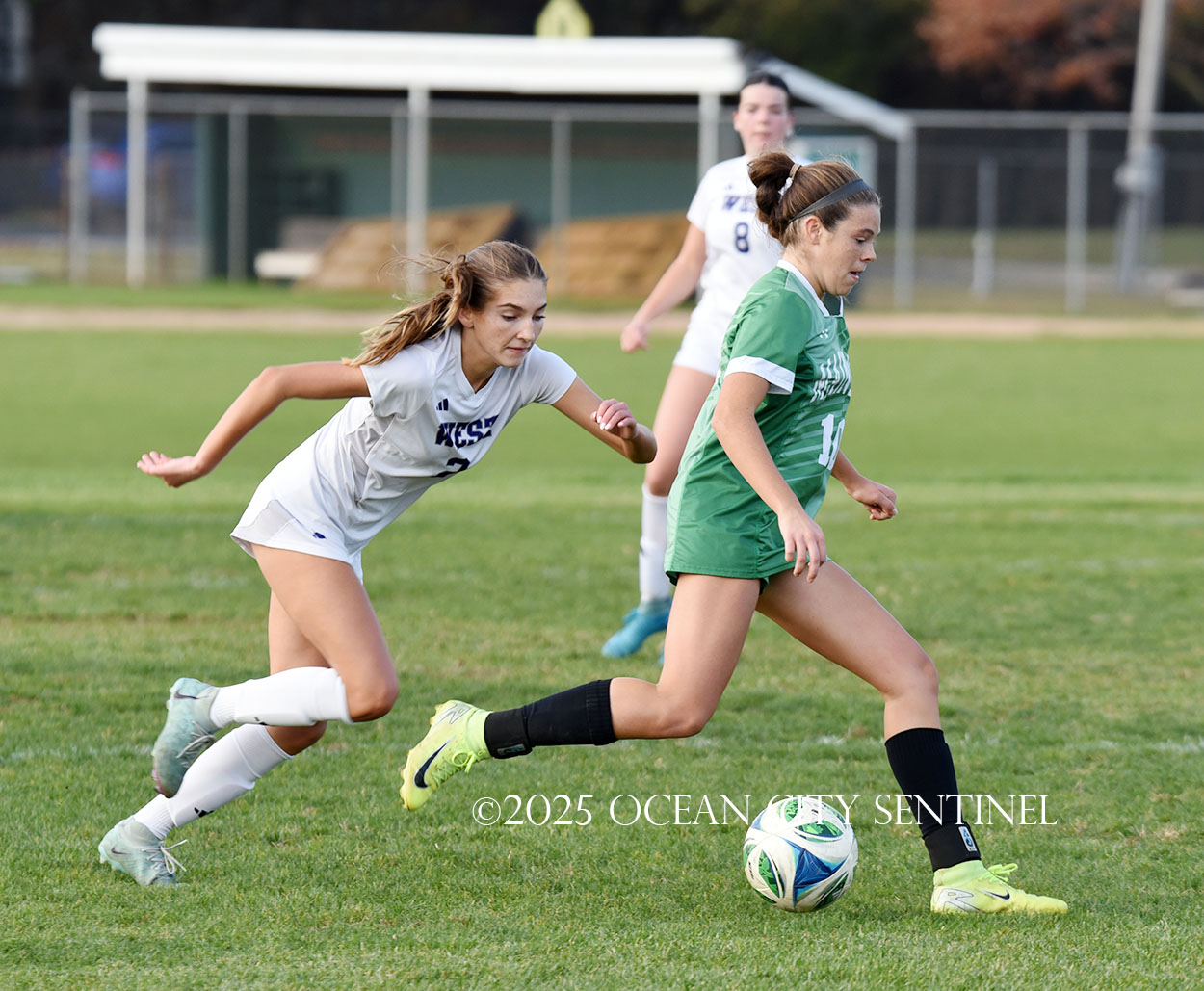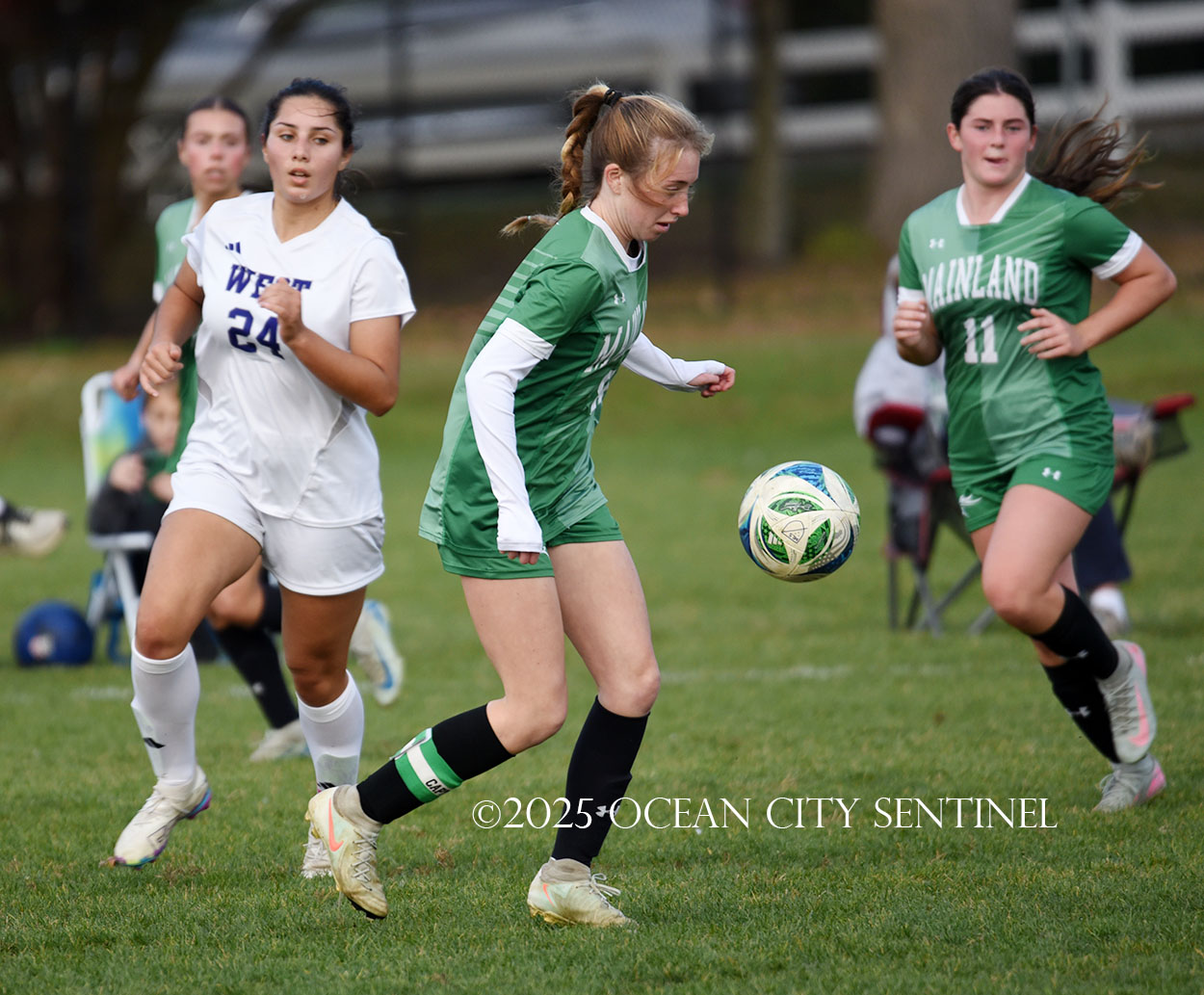 Mainland started the game strong, getting two shots from junior Emma Tenaglia in the first 5 minutes, but the momentum quickly shifted as Cherry Hill West got three corner kicks in a row.