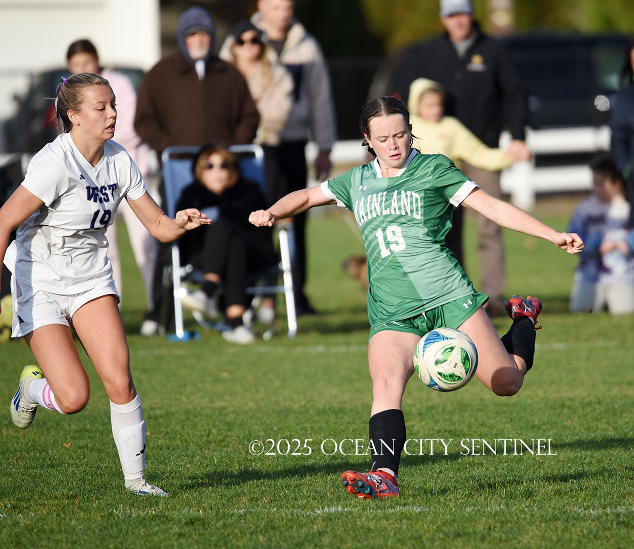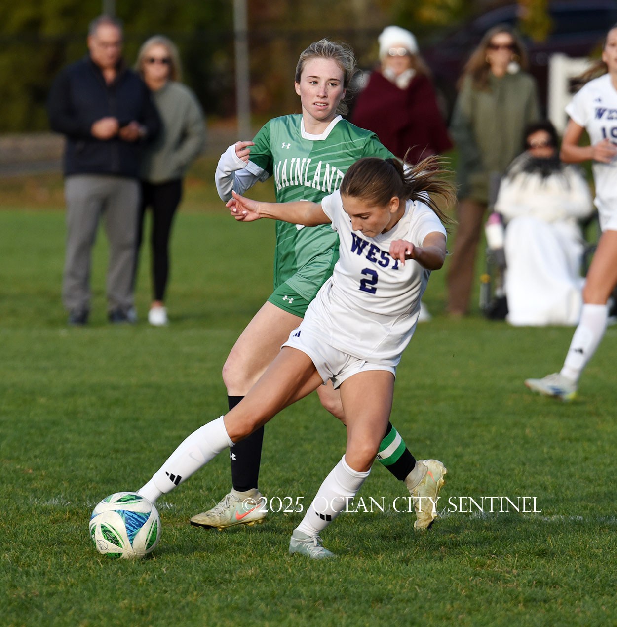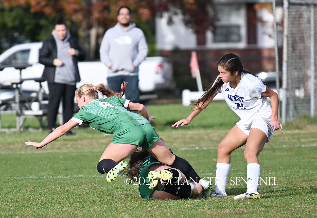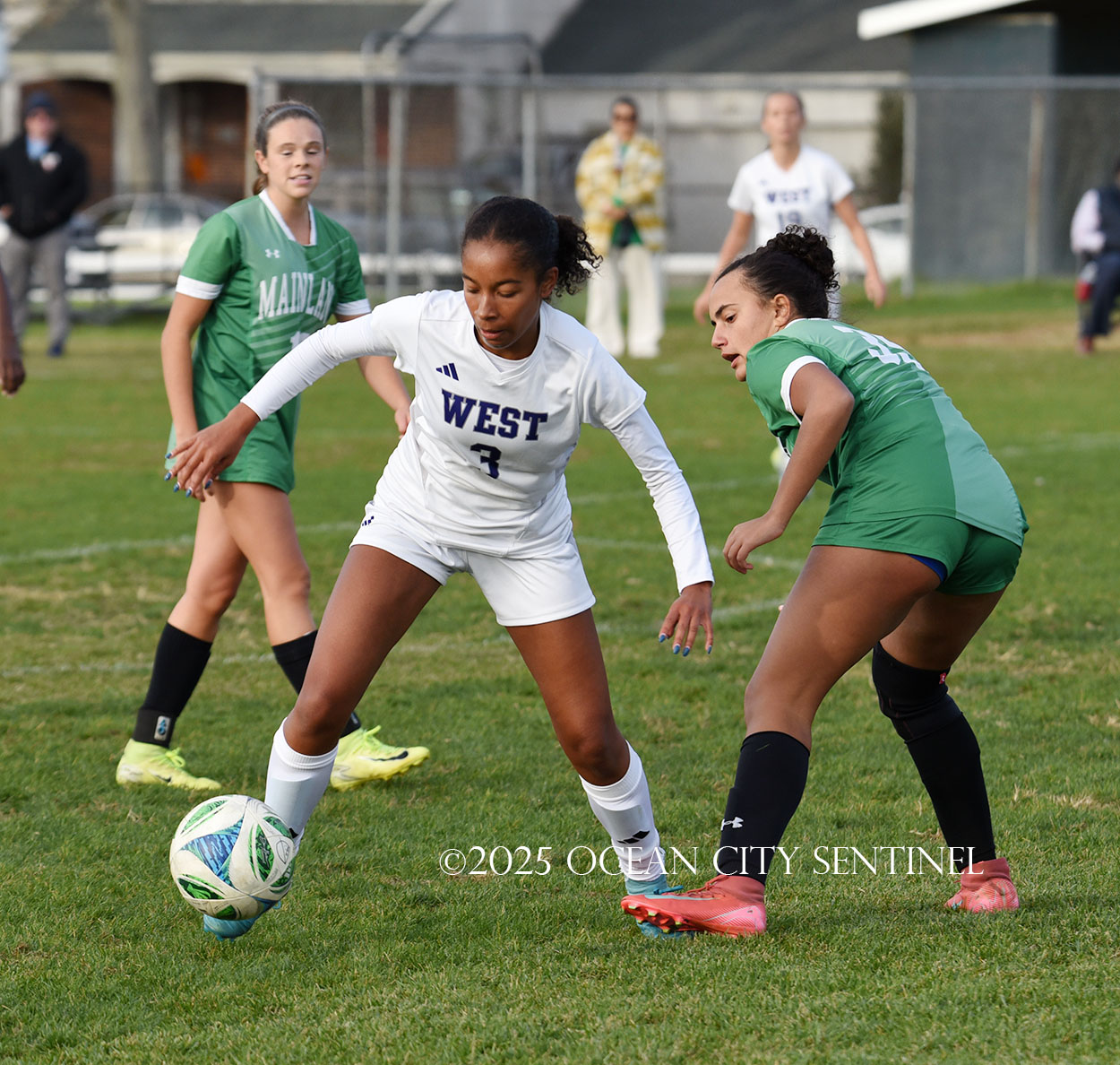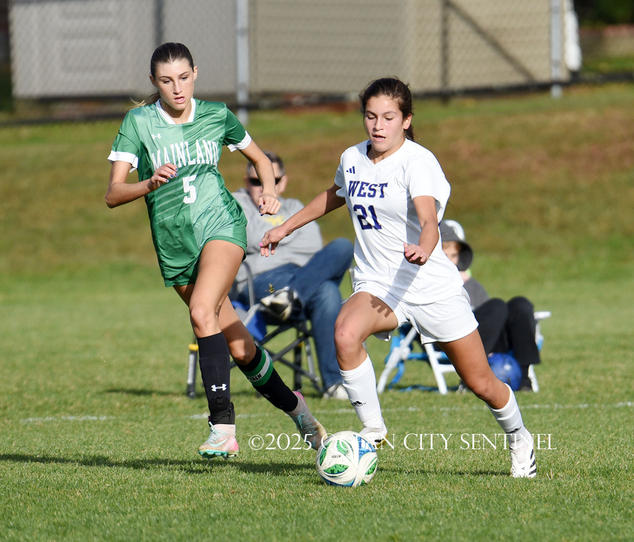 Mainland started the game strong, getting two shots from junior Emma Tenaglia in the first 5 minutes, but the momentum quickly shifted as Cherry Hill West got three corner kicks in a row.