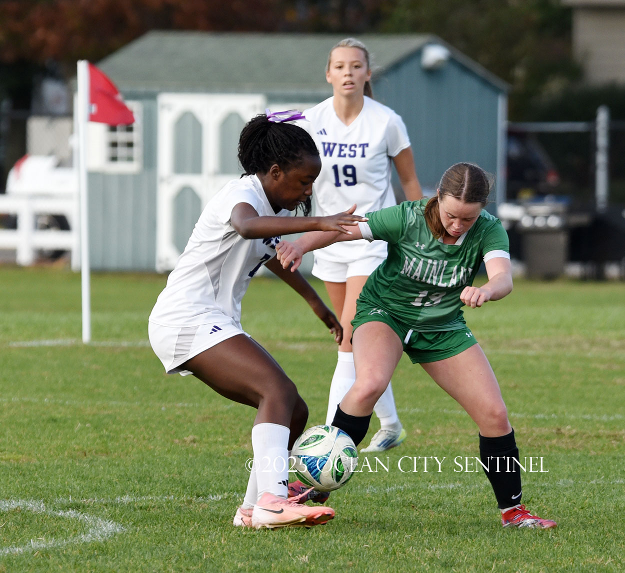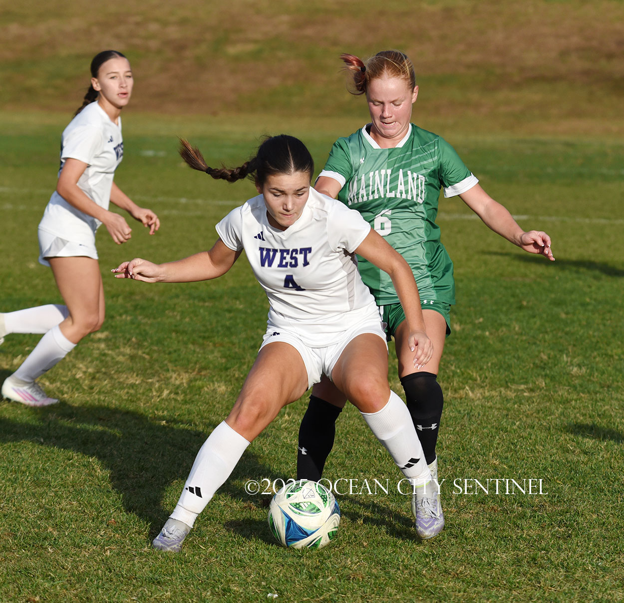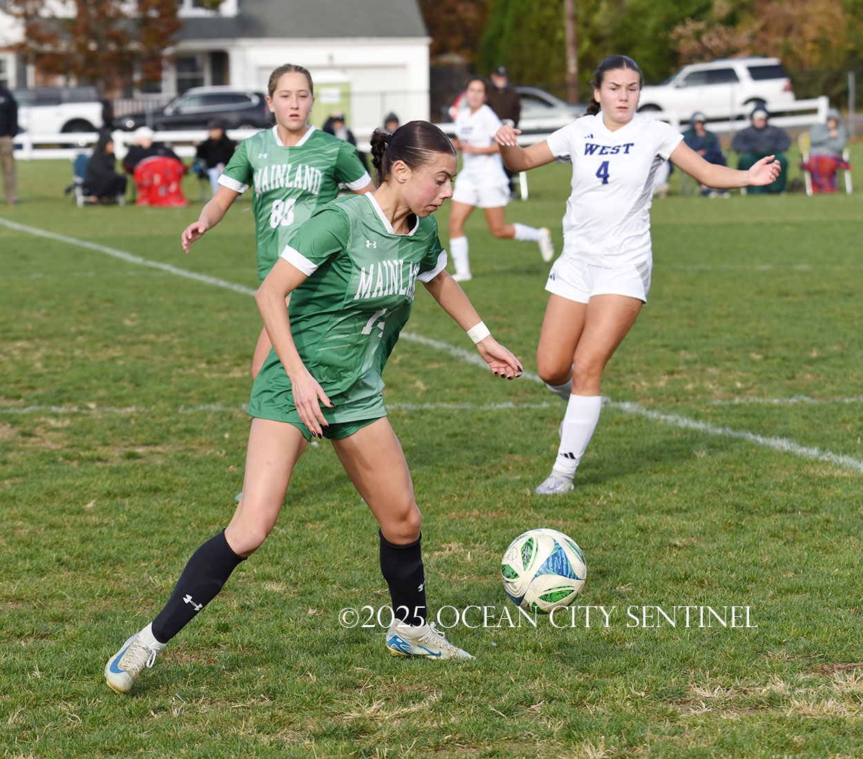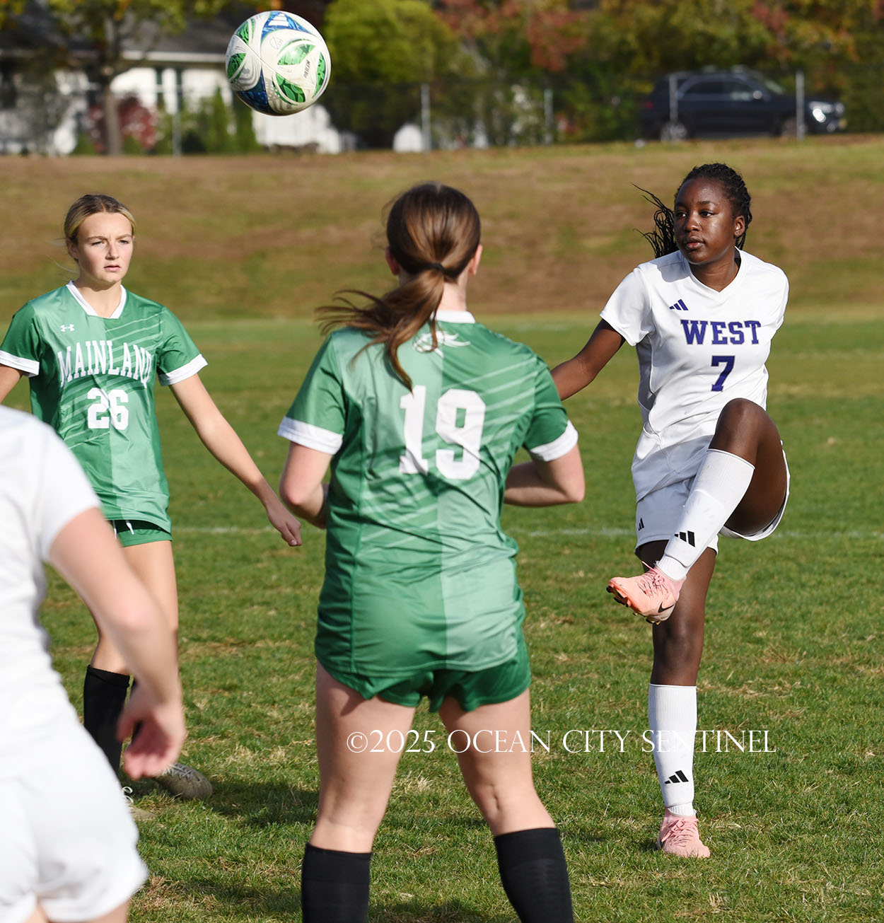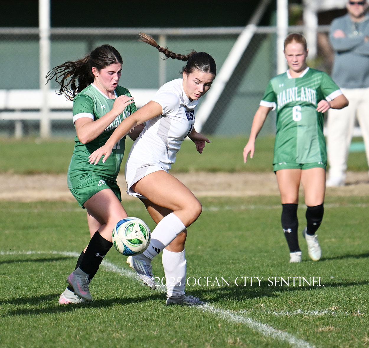 Mainland started the game strong, getting two shots from junior Emma Tenaglia in the first 5 minutes, but the momentum quickly shifted as Cherry Hill West got three corner kicks in a row.