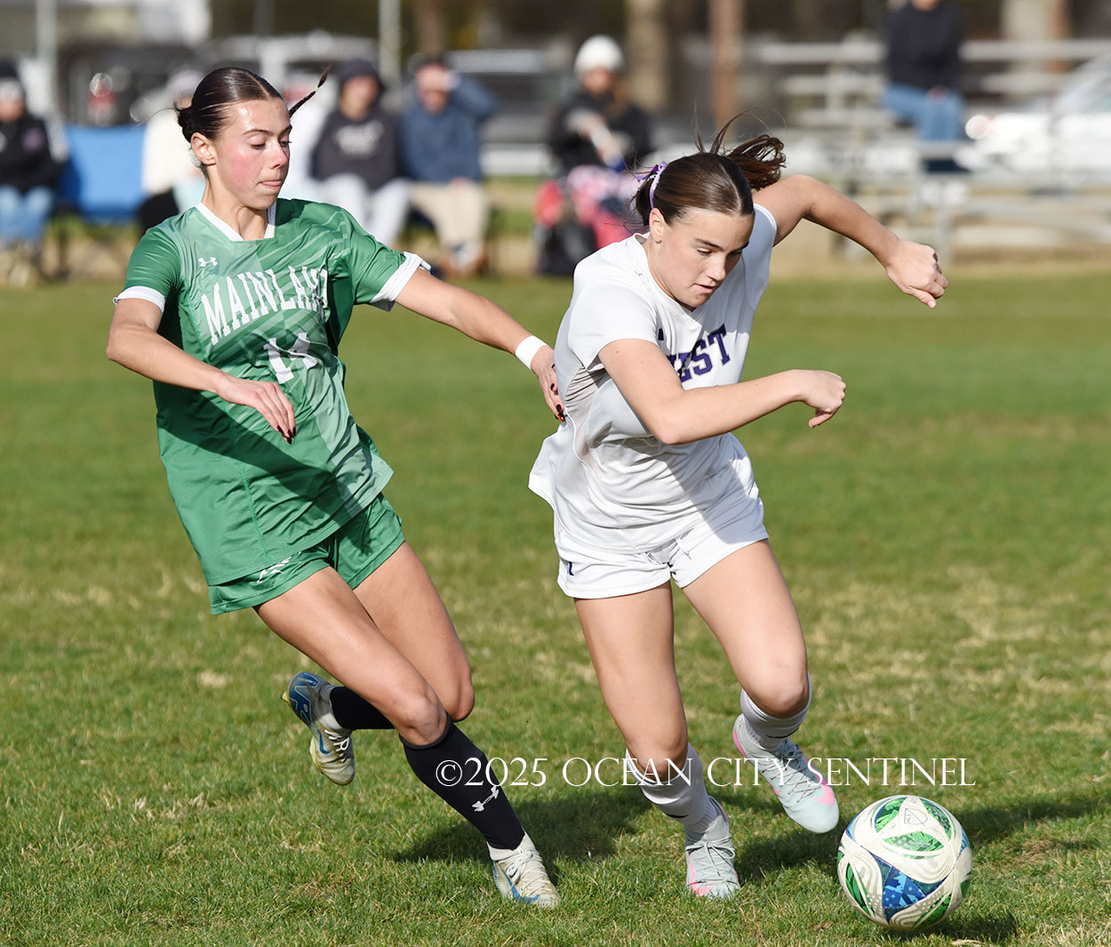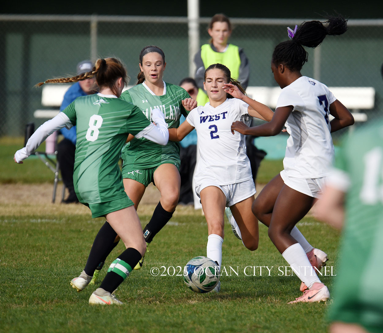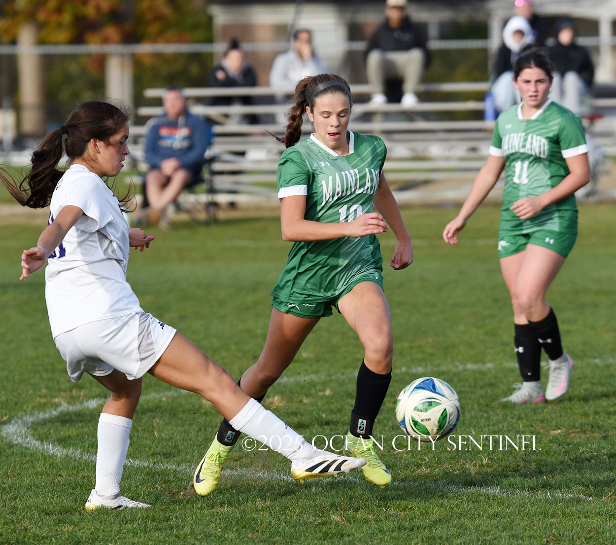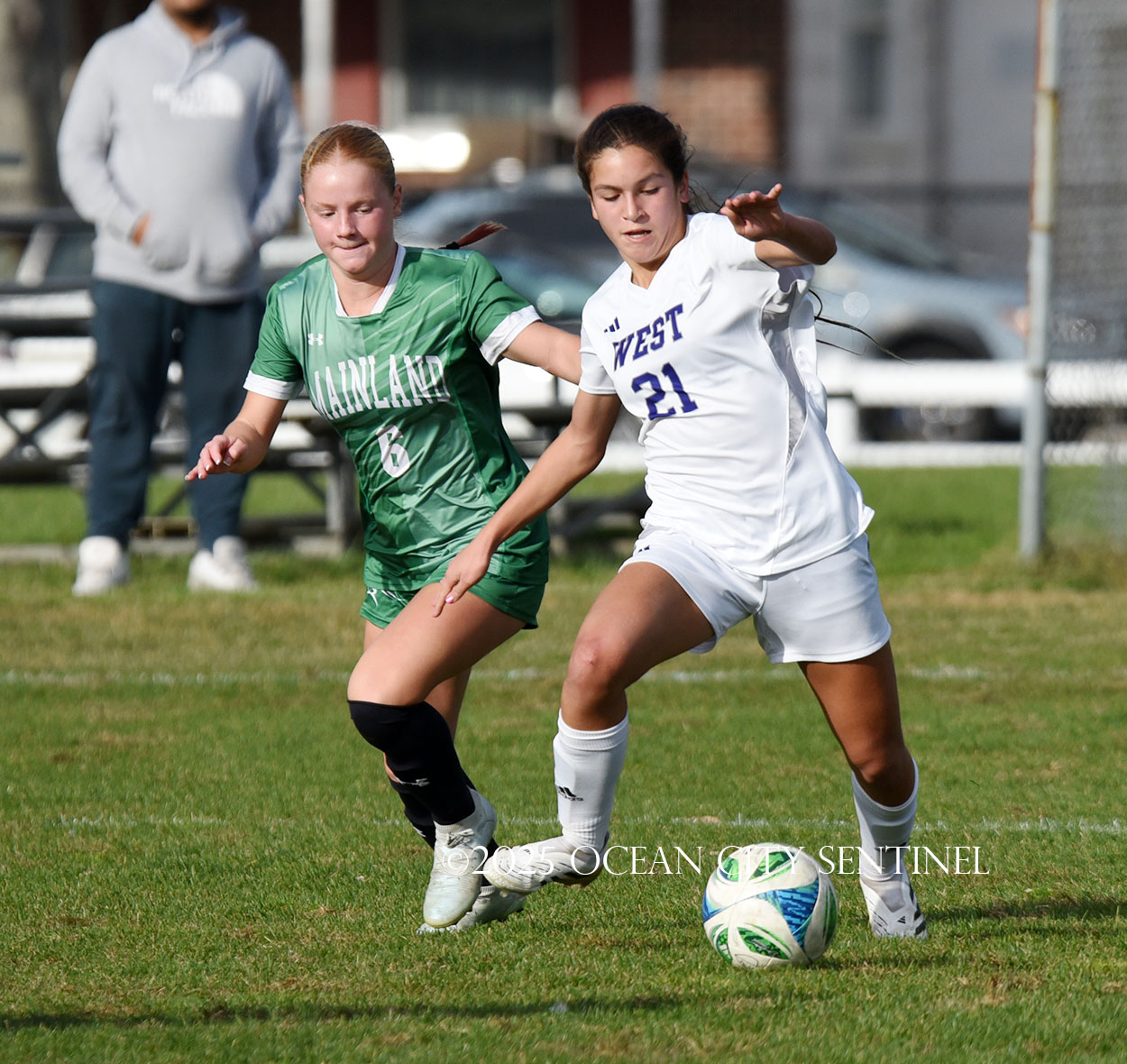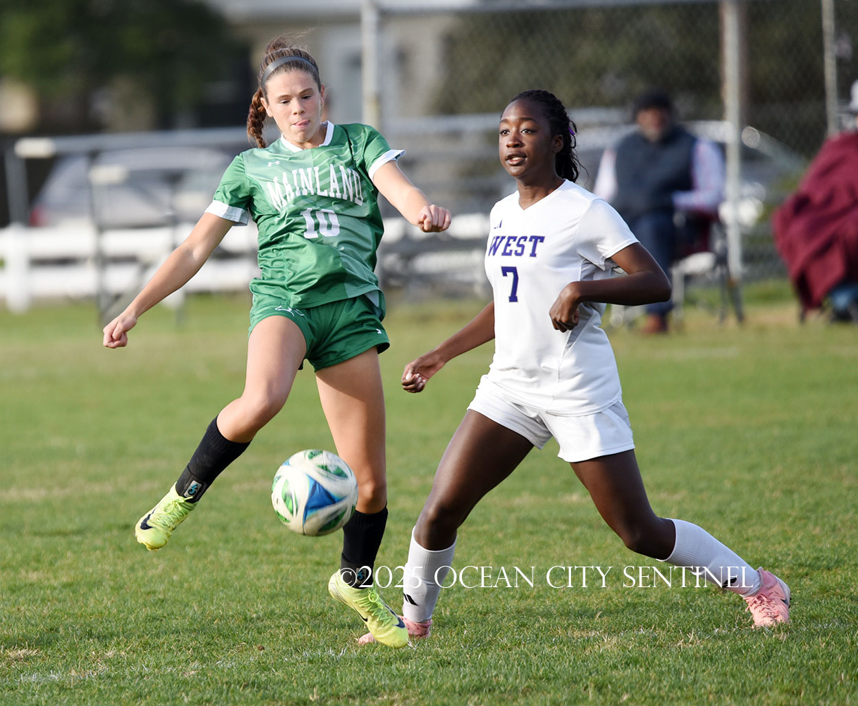 Mainland started the game strong, getting two shots from junior Emma Tenaglia in the first 5 minutes, but the momentum quickly shifted as Cherry Hill West got three corner kicks in a row.