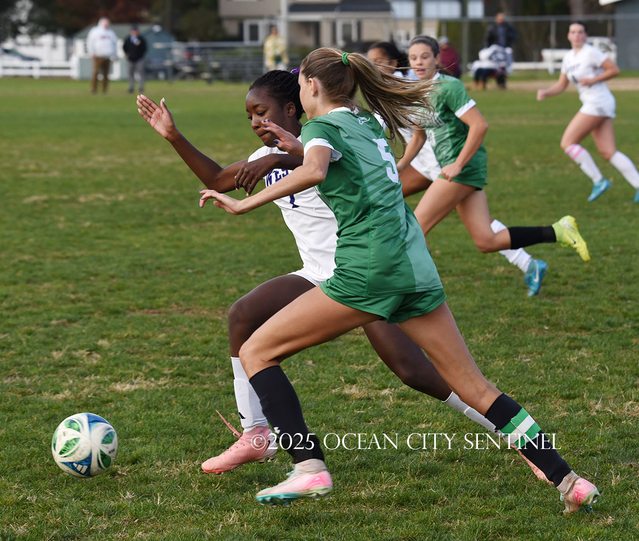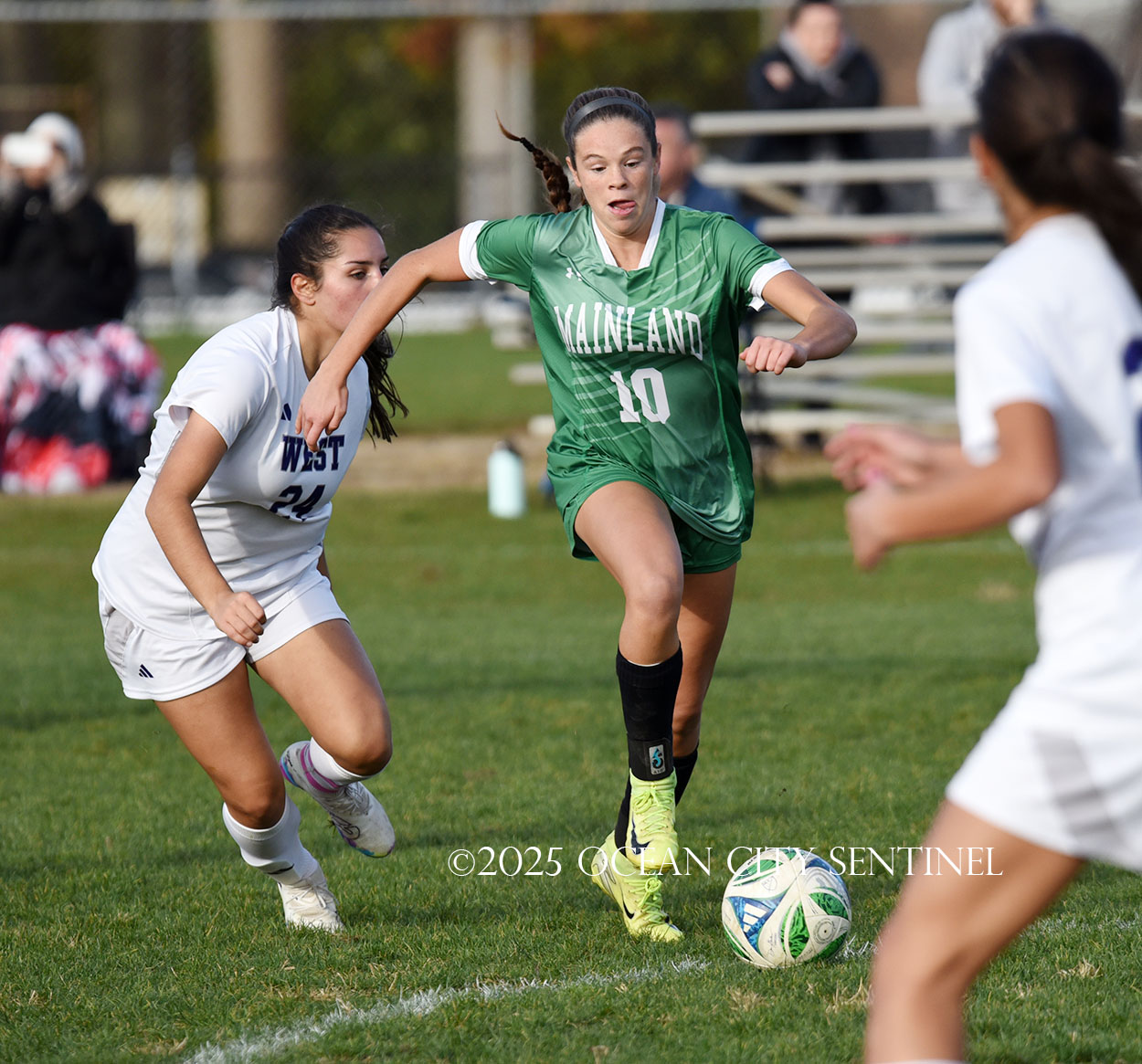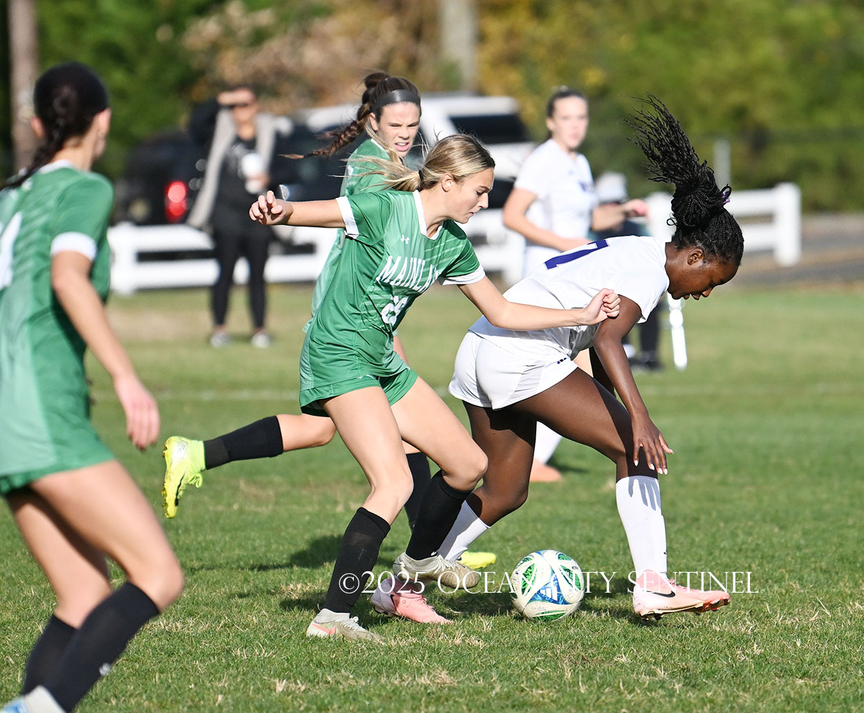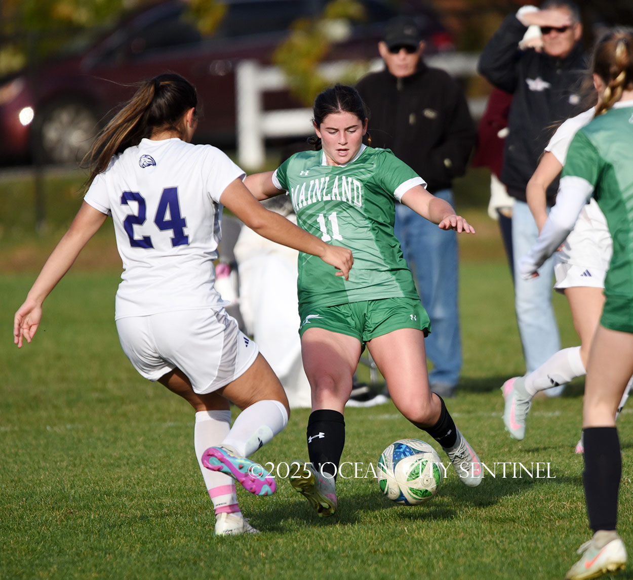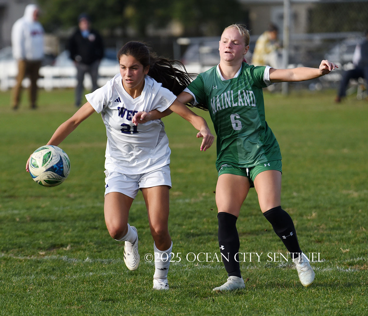 Mainland started the game strong, getting two shots from junior Emma Tenaglia in the first 5 minutes, but the momentum quickly shifted as Cherry Hill West got three corner kicks in a row.