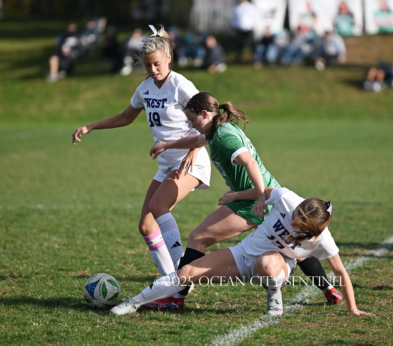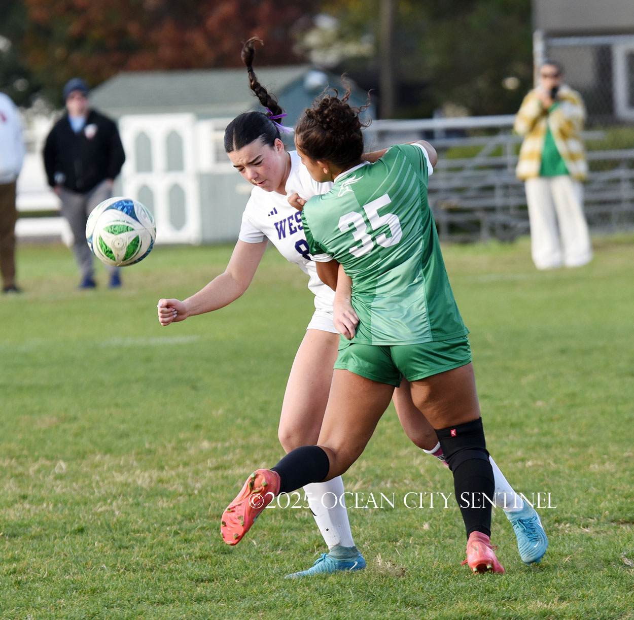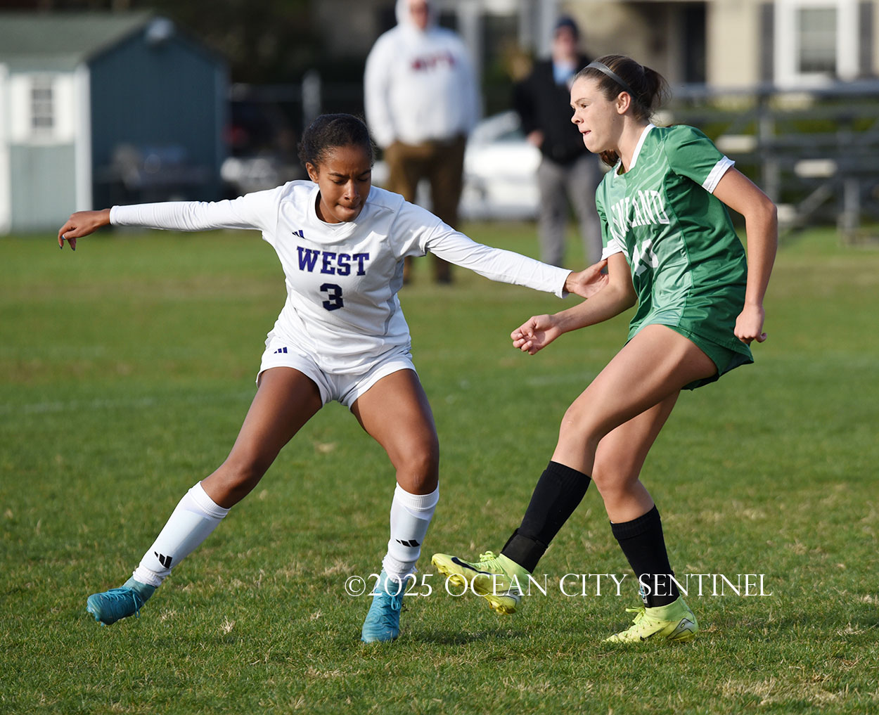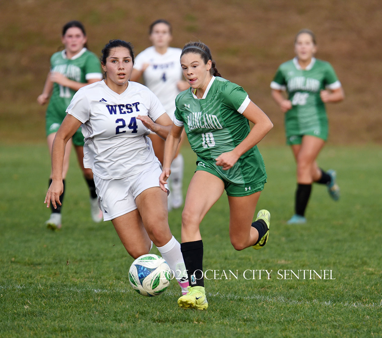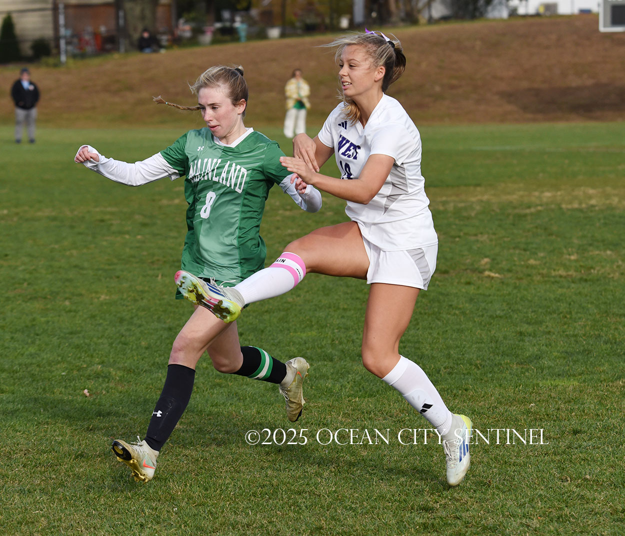 Mainland started the game strong, getting two shots from junior Emma Tenaglia in the first 5 minutes, but the momentum quickly shifted as Cherry Hill West got three corner kicks in a row.