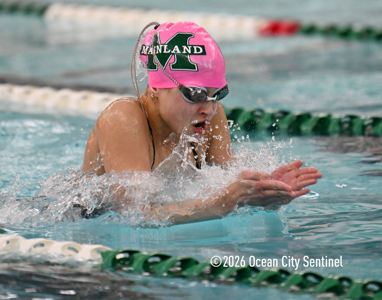 Mokienko (1:27.61), Grace Sims and Karagatchlian finished first, second and third, respectively, in the 100 breaststroke for Mainland. Haddon Township’s Schultz was fourth.