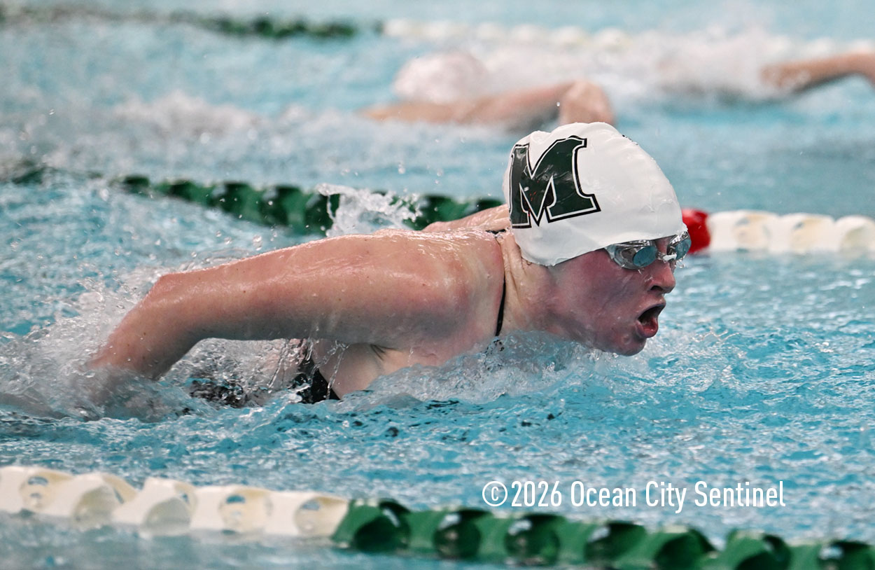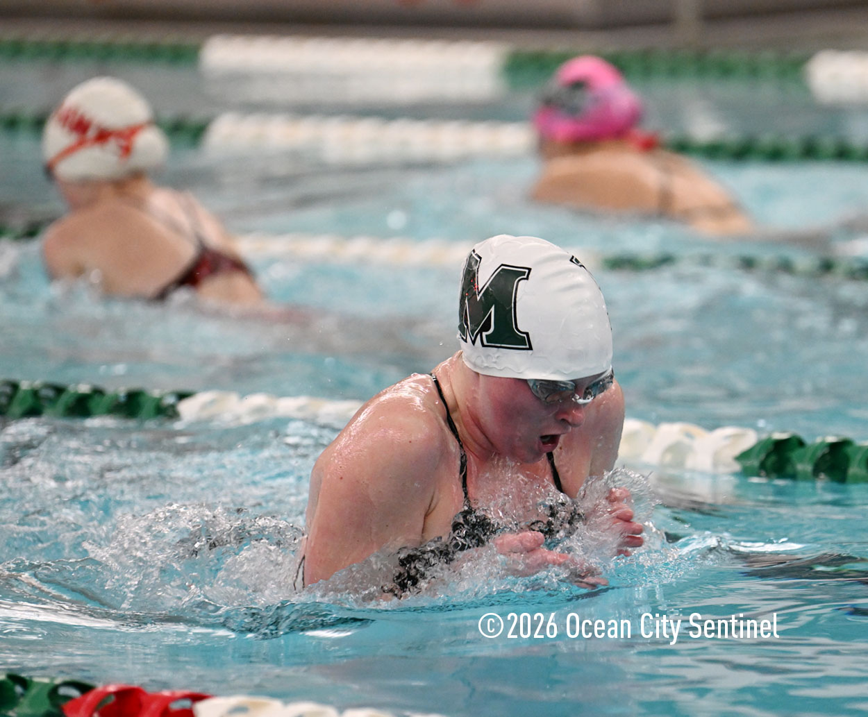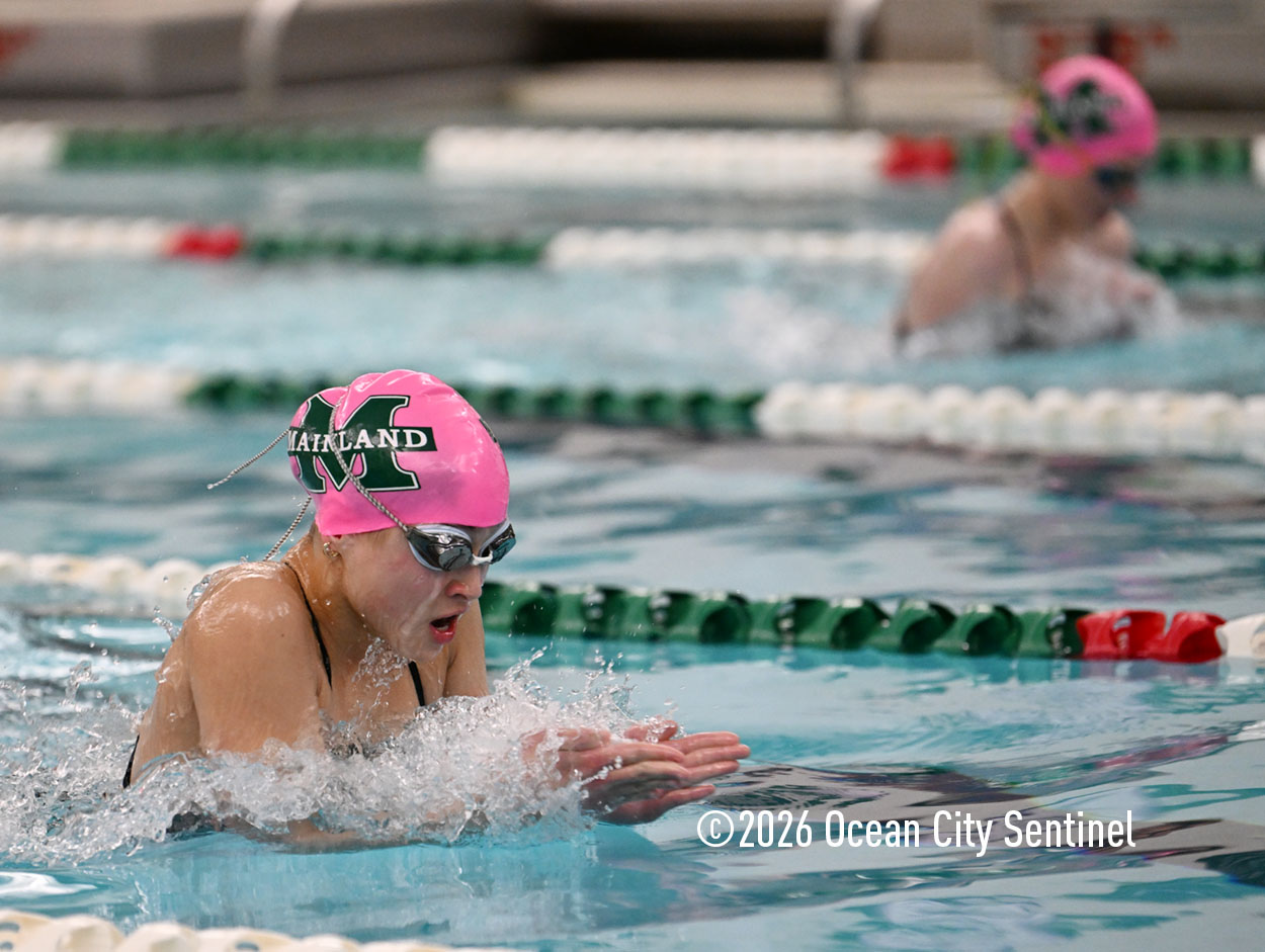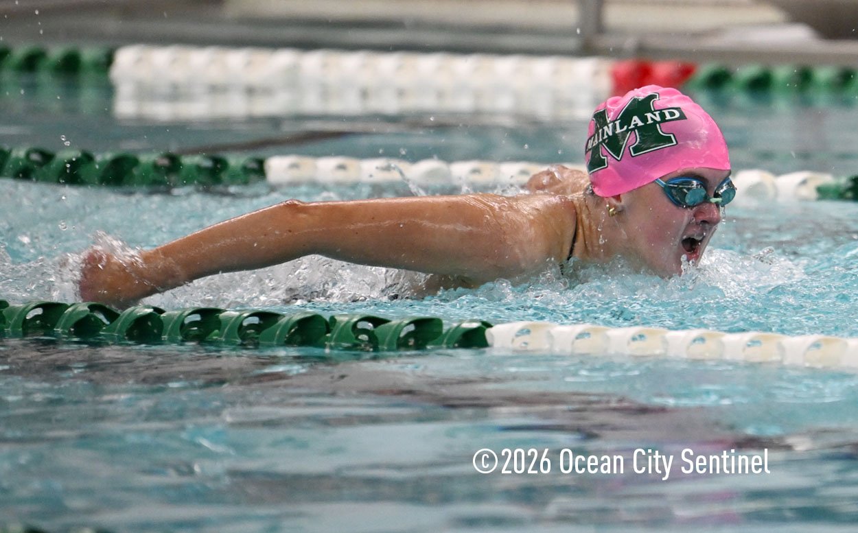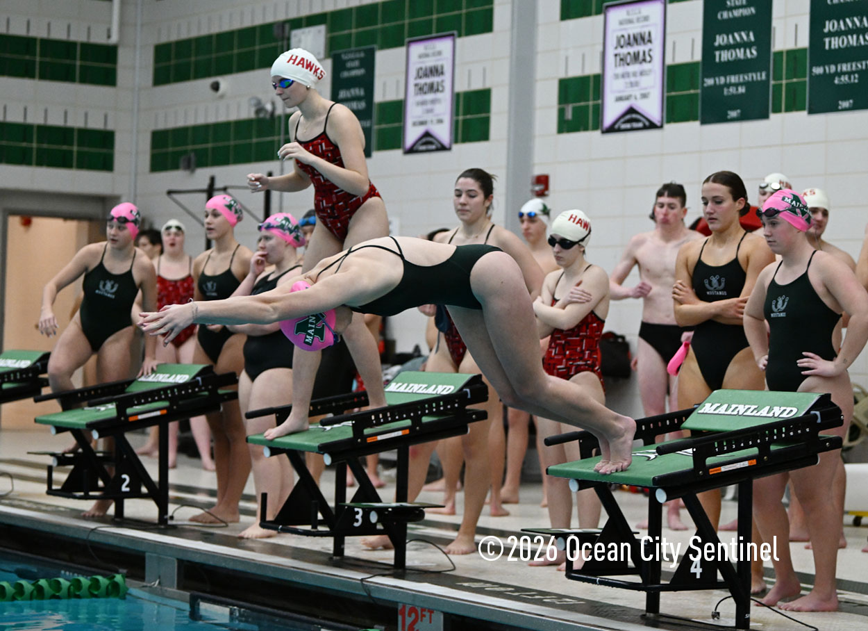 Mainland’s Reese McEvoy, Ella Mokienko, Hailey Kerns and Madelyn Slattery opened Friday’s meet by winning the 200-meter medley relay in 2 minutes 19.16 seconds. Haddon’s Ani Pierwola, Jo Anderer, Reagan Berger and Tessa Darby were second and Mustangs Maddie Reed, Ella Rose Farrell, Sasha Rimska and Olivia Herbert were third.