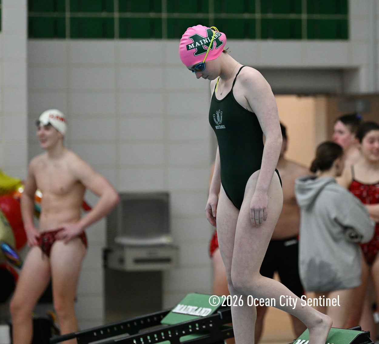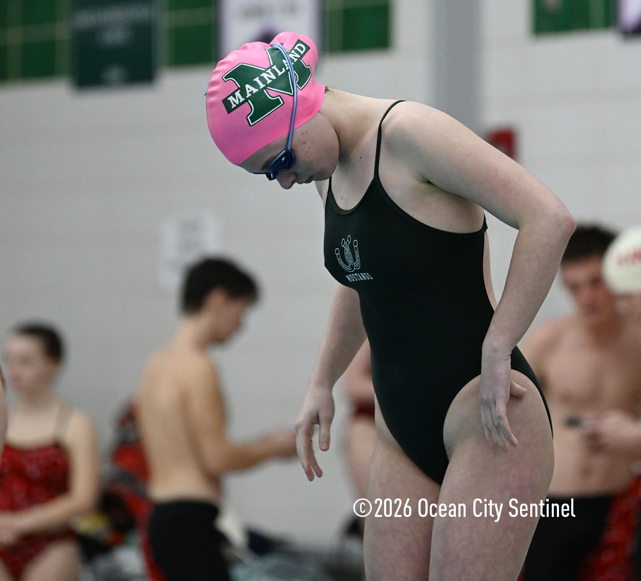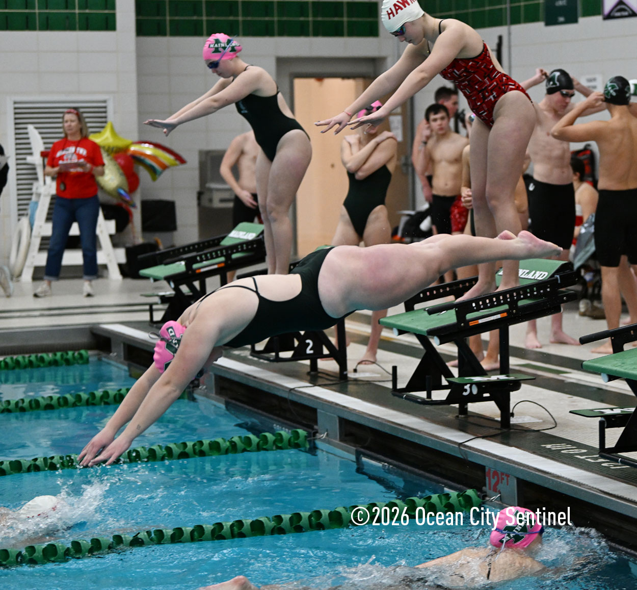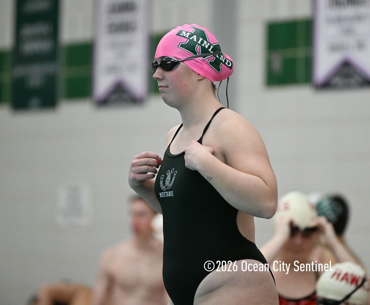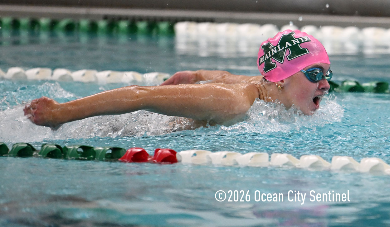 Mainland’s Reese McEvoy, Ella Mokienko, Hailey Kerns and Madelyn Slattery opened Friday’s meet by winning the 200-meter medley relay in 2 minutes 19.16 seconds. Haddon’s Ani Pierwola, Jo Anderer, Reagan Berger and Tessa Darby were second and Mustangs Maddie Reed, Ella Rose Farrell, Sasha Rimska and Olivia Herbert were third.