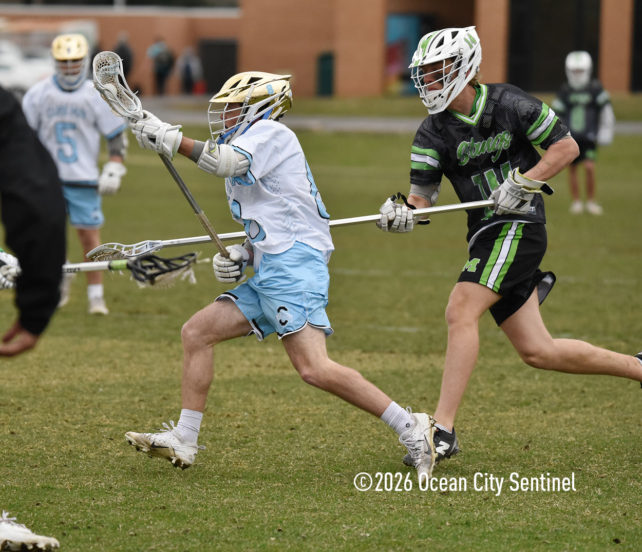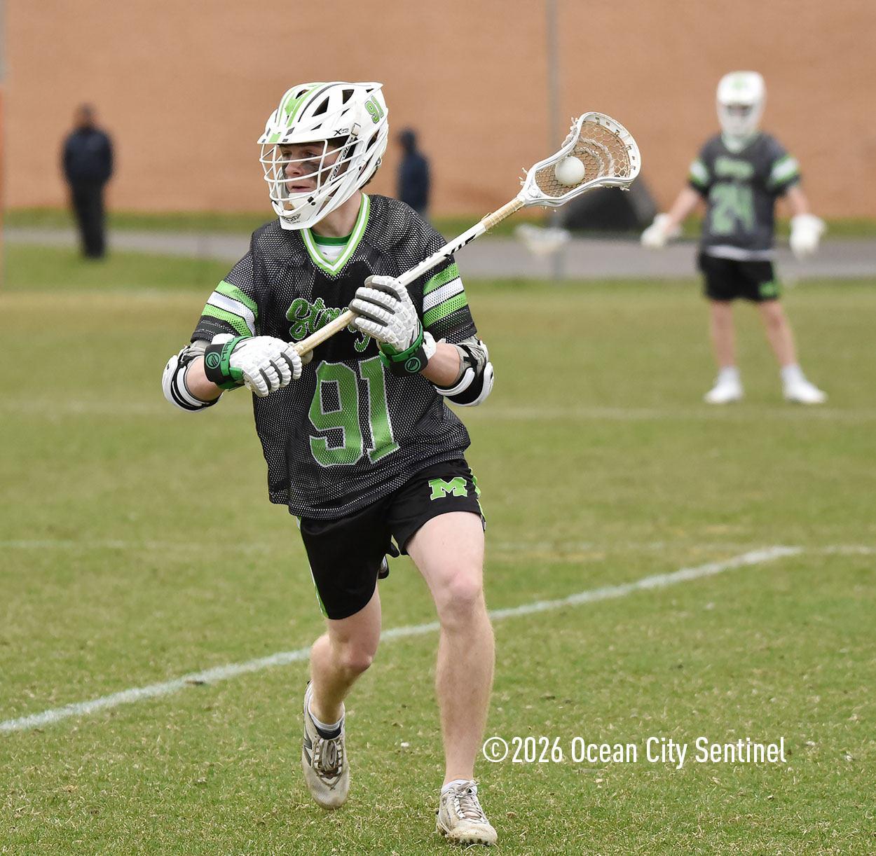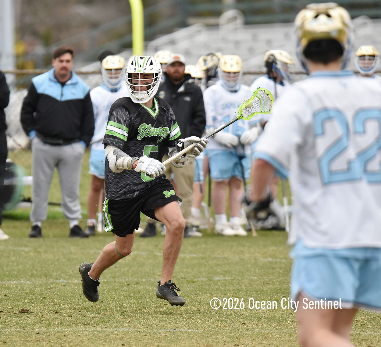 After an offseason of roster changes for both teams, Mainland Regional High School’s offense was in control from the start and rode an early lead into an 18-1 win over the Caper Tigers Friday, March 27. Junior Jack Gregory announced his return to the Mustangs in a big way with three goals in the first quarter after missing most of last season due to a broken ankle.