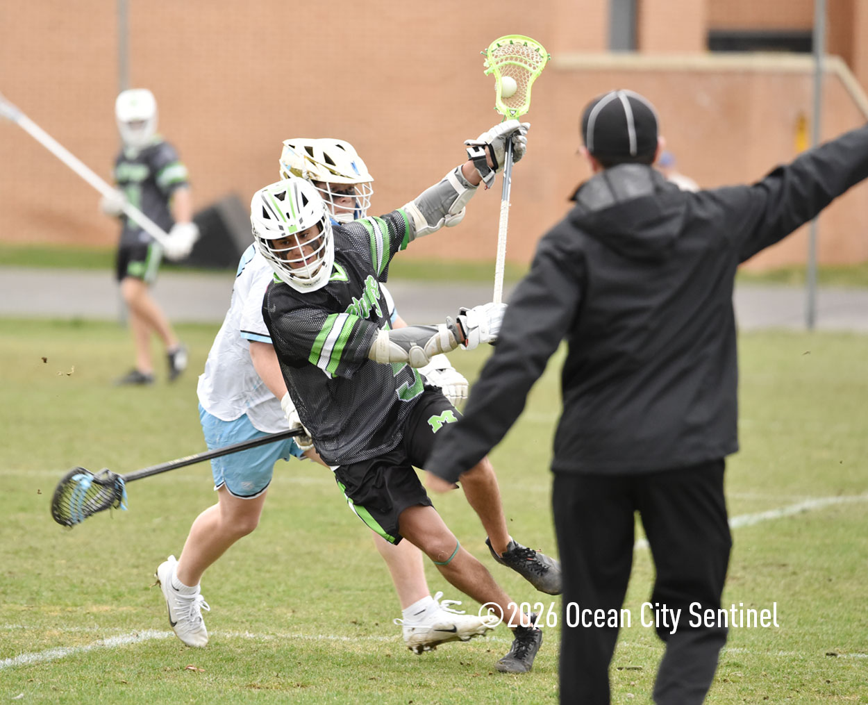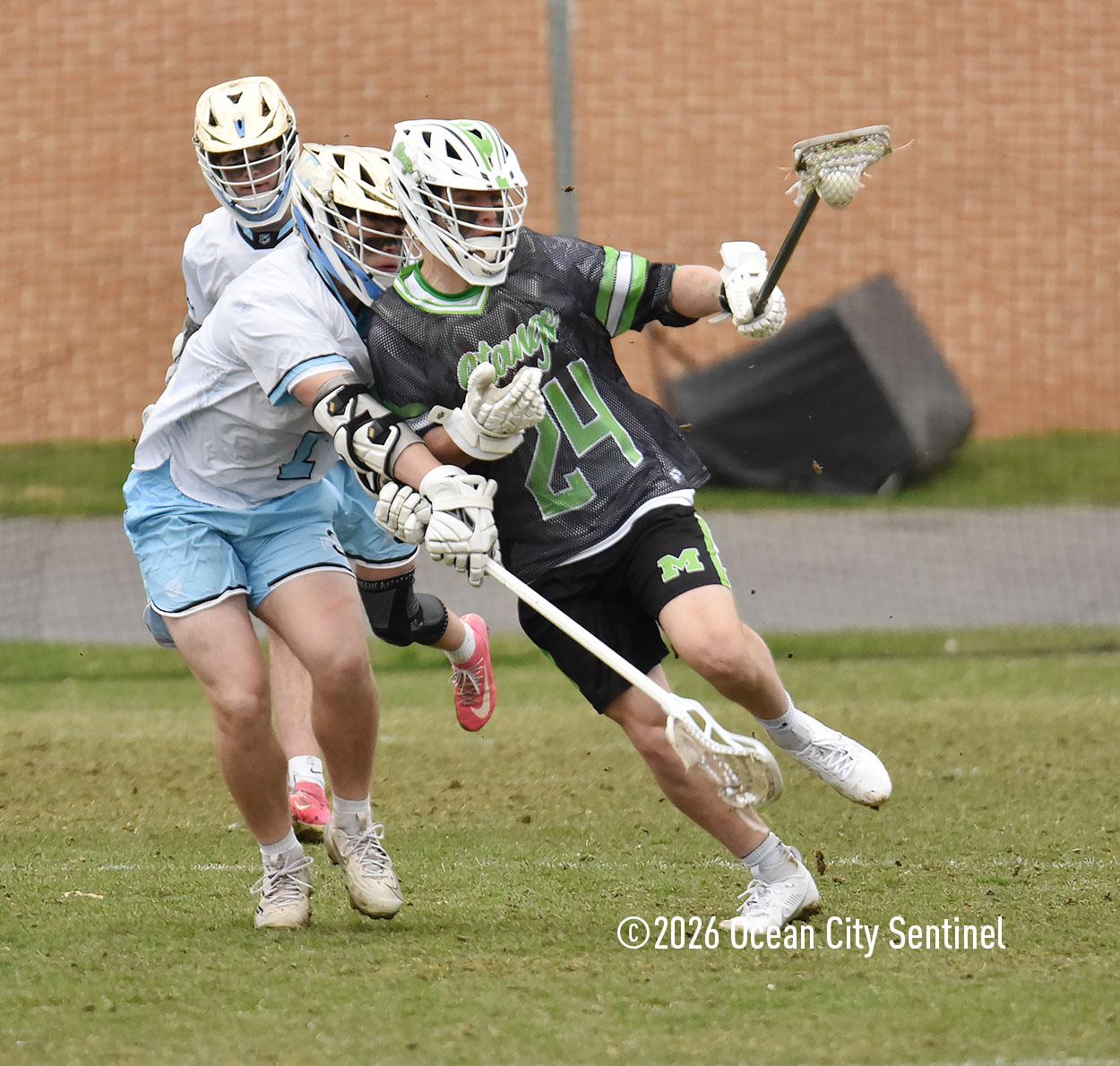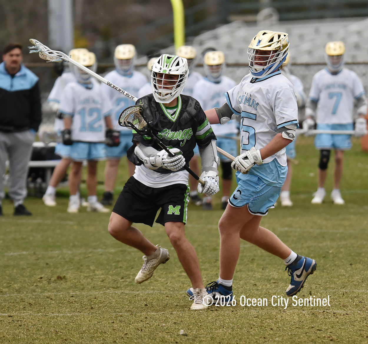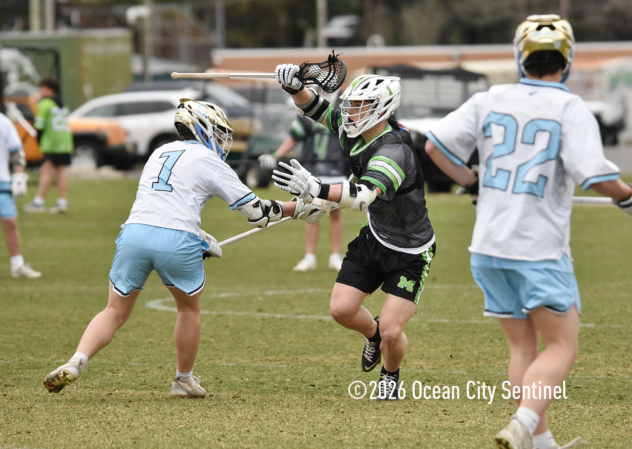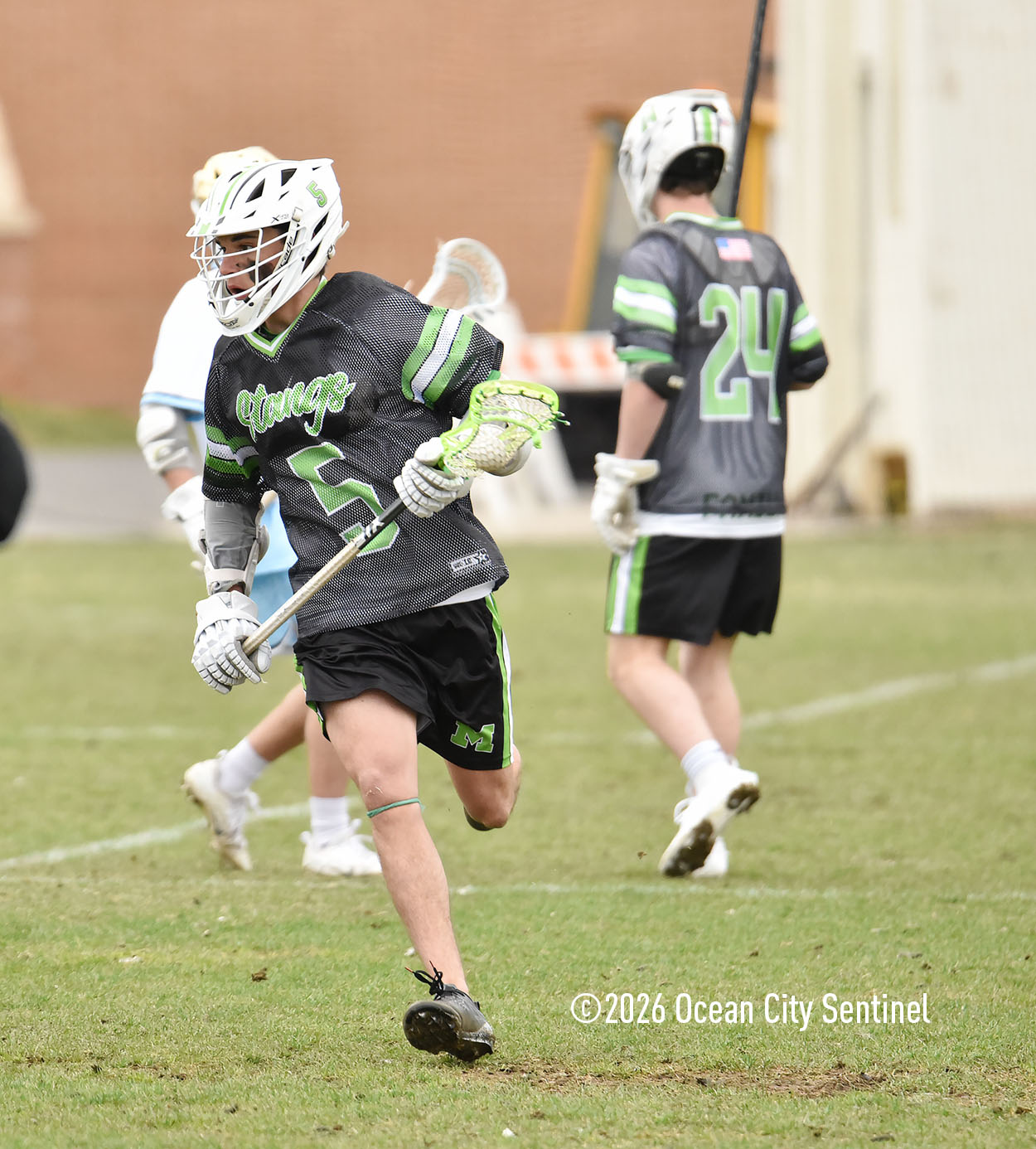 Mustang Harrison Gurwicz has handled Mainland’s face-offs for the last two seasons and picked up where he left off last season against Lower. The senior took one of the first face-offs of the game all the way to the net and scored a solo goal. He then later passed off his duties to sophomore Conlan Fitzpatrick, who went 12 for 15 in his first game.
