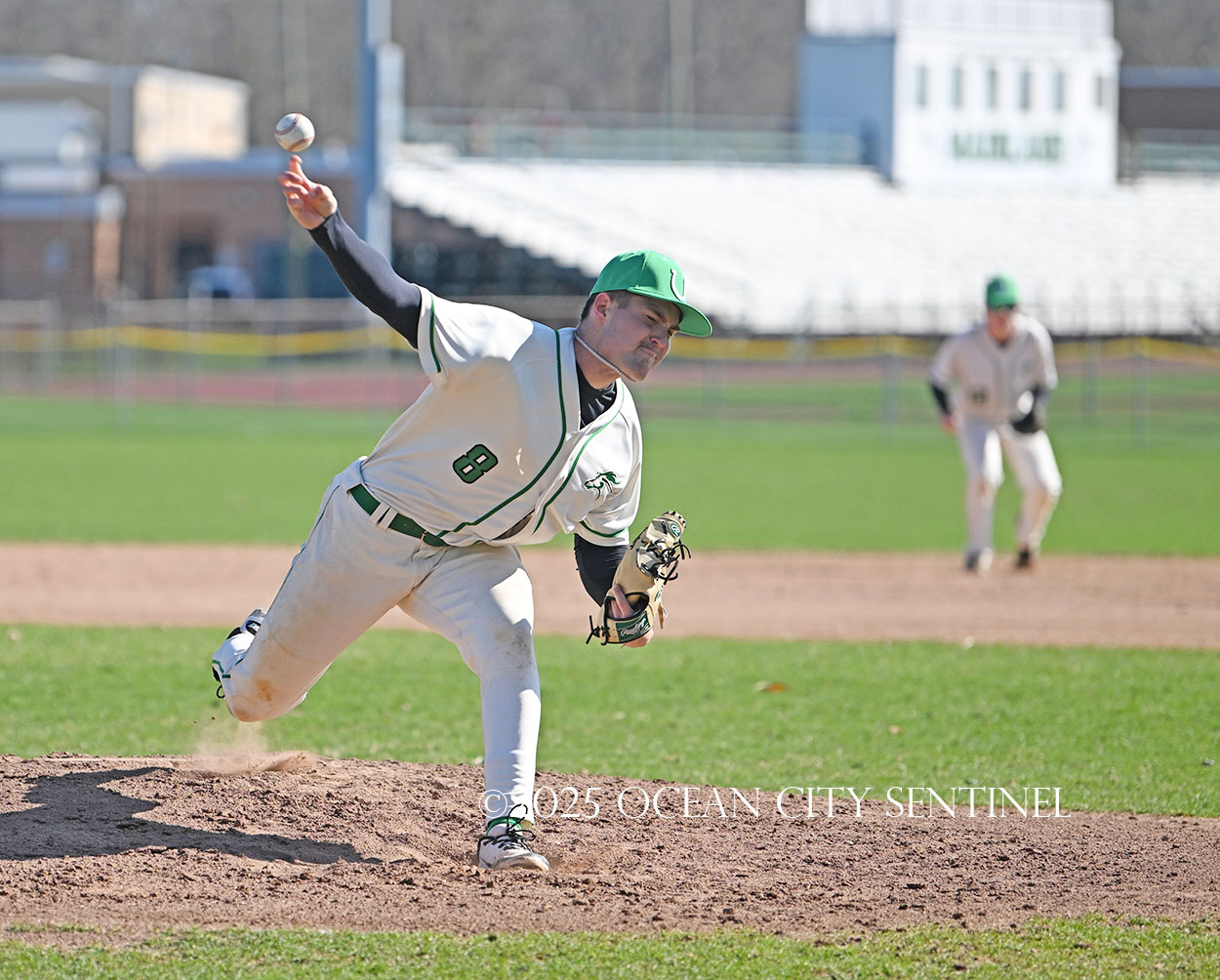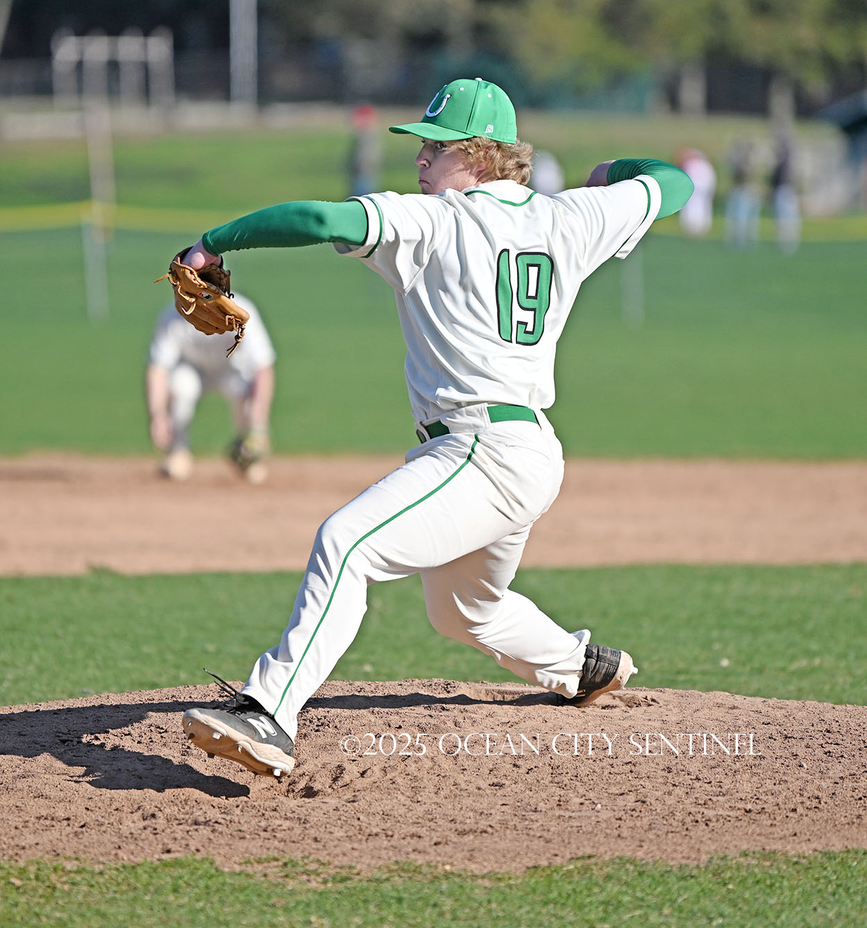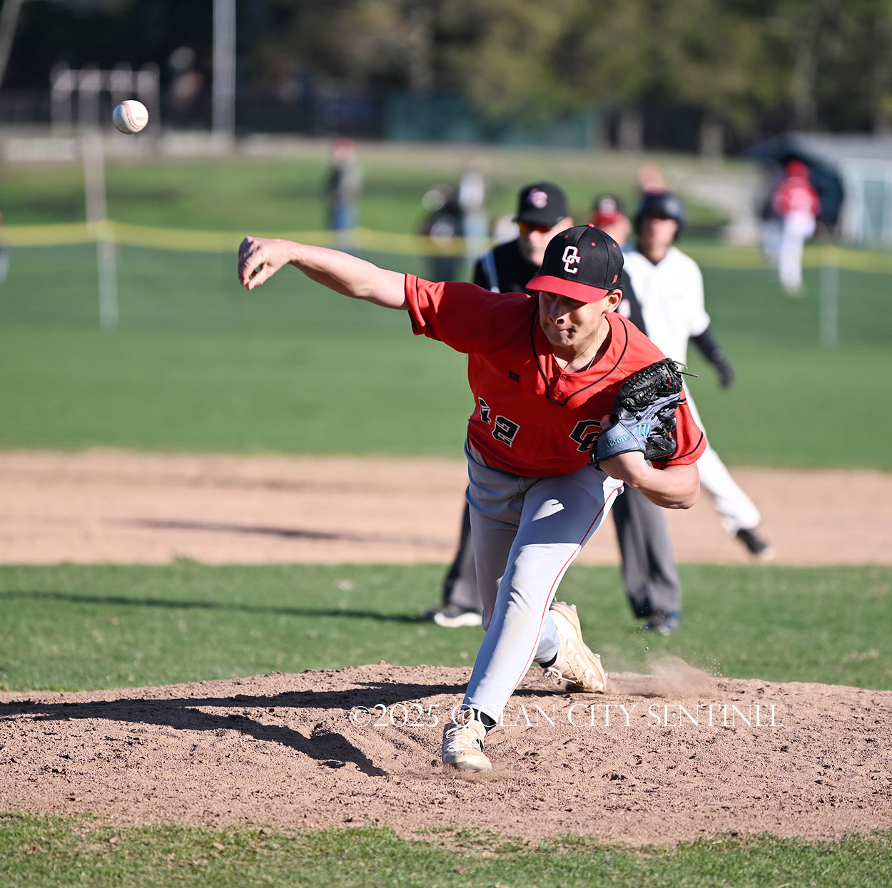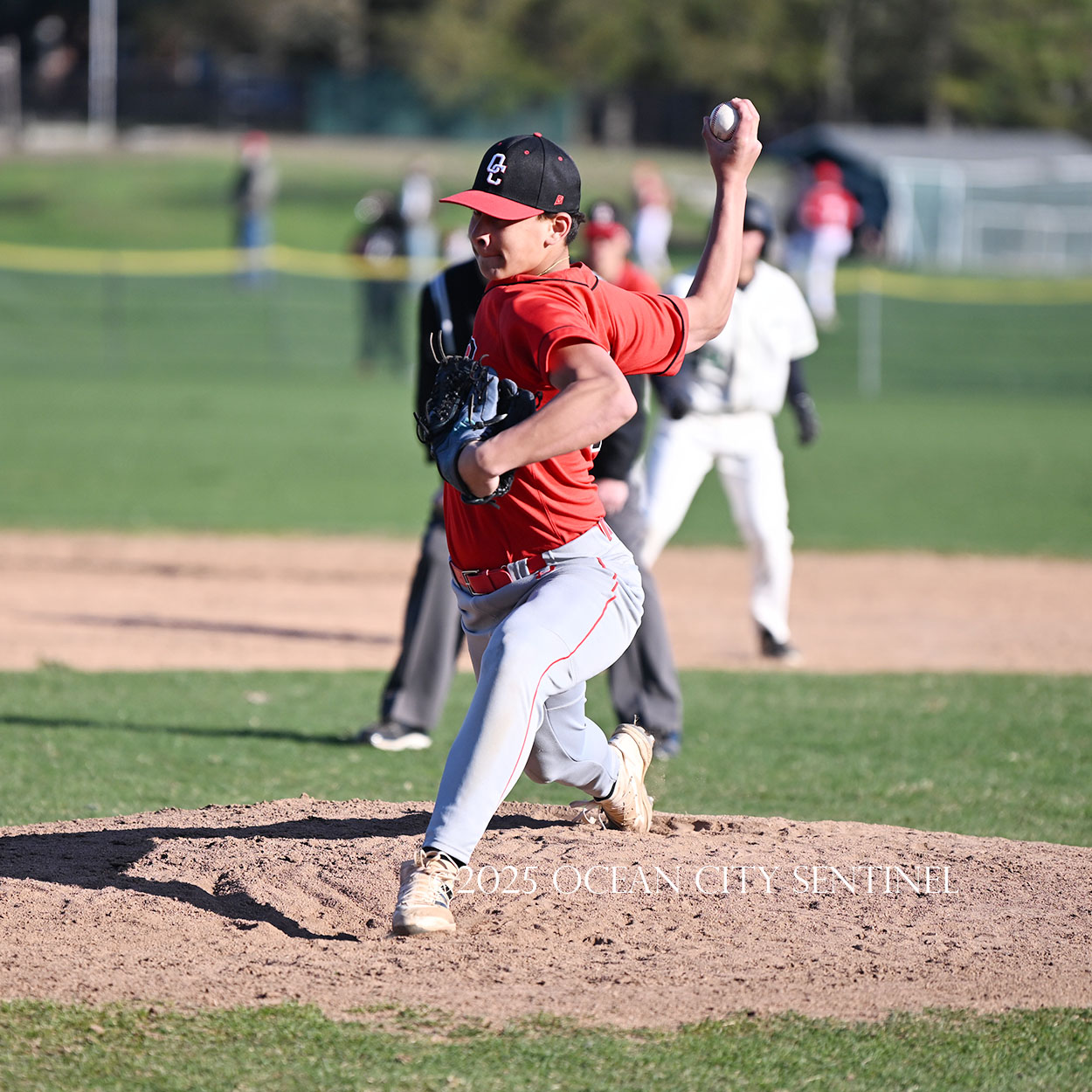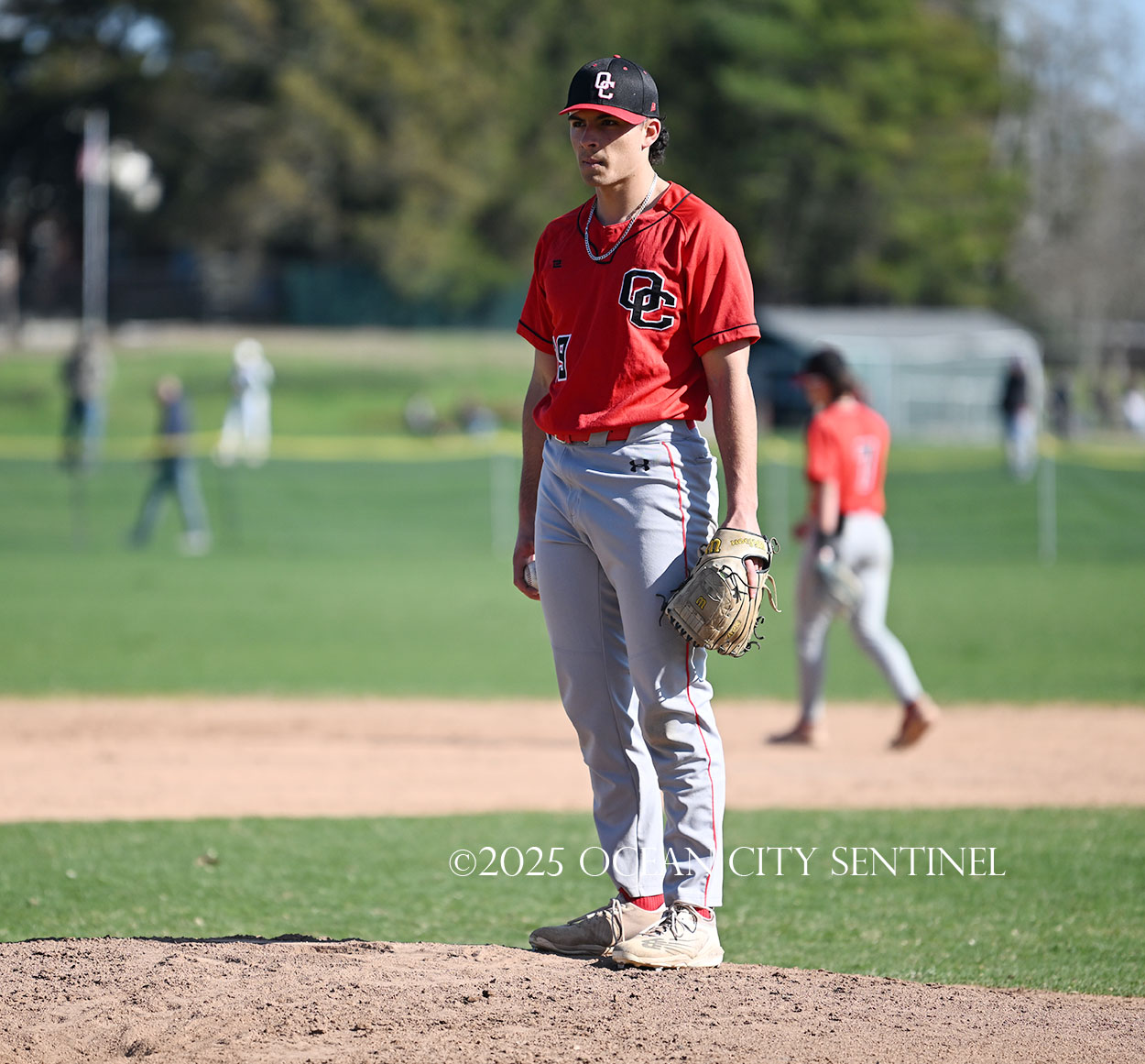 With some left-handed hitters coming up for Ocean City, Smith called upon left-handed pitcher Finnegan Haines to close out the game for Mainland.