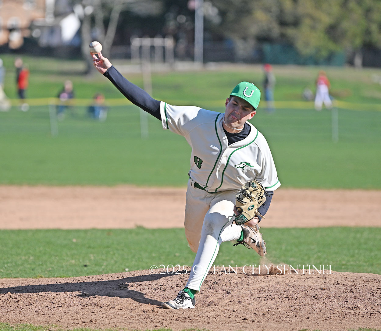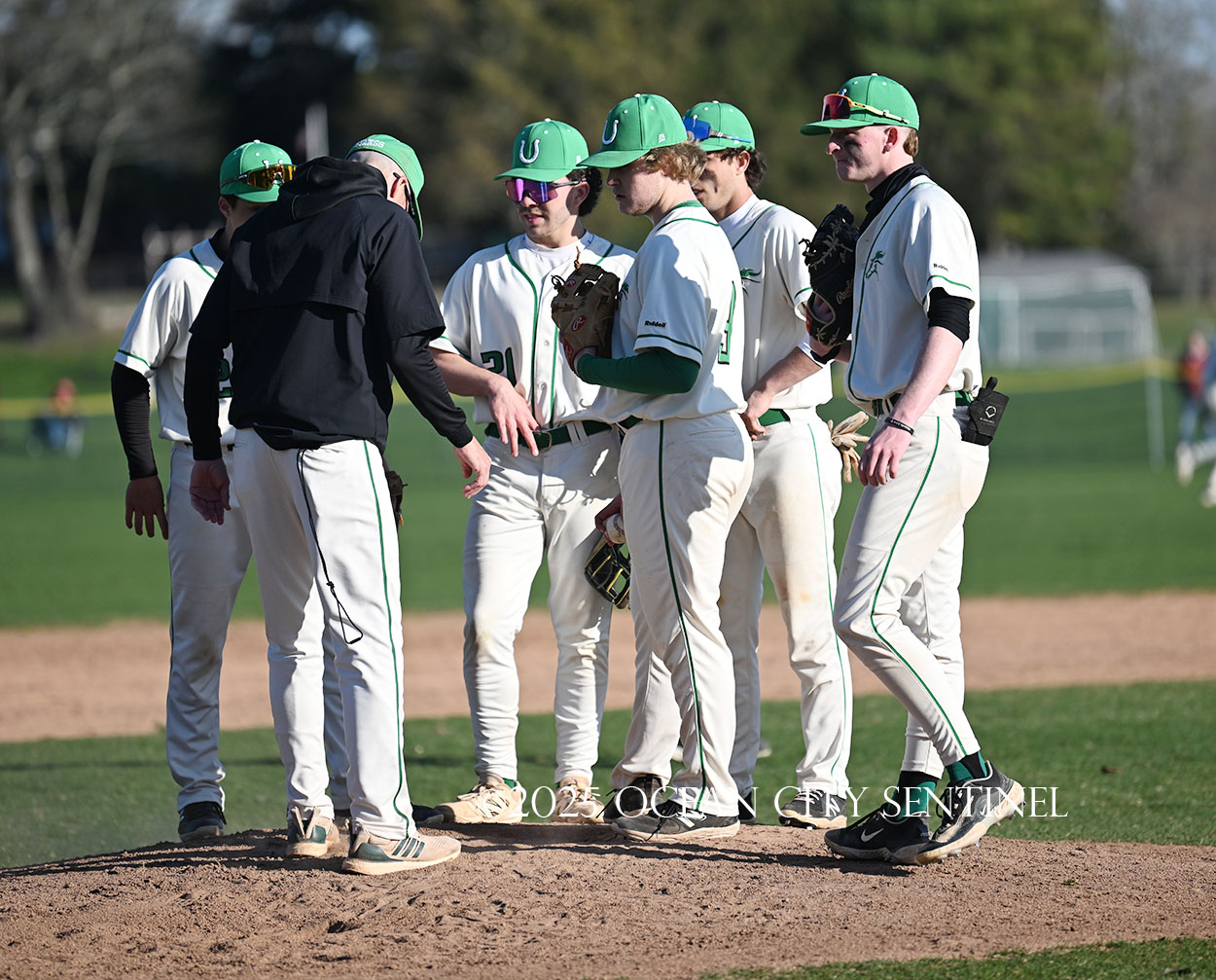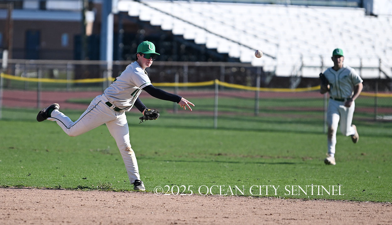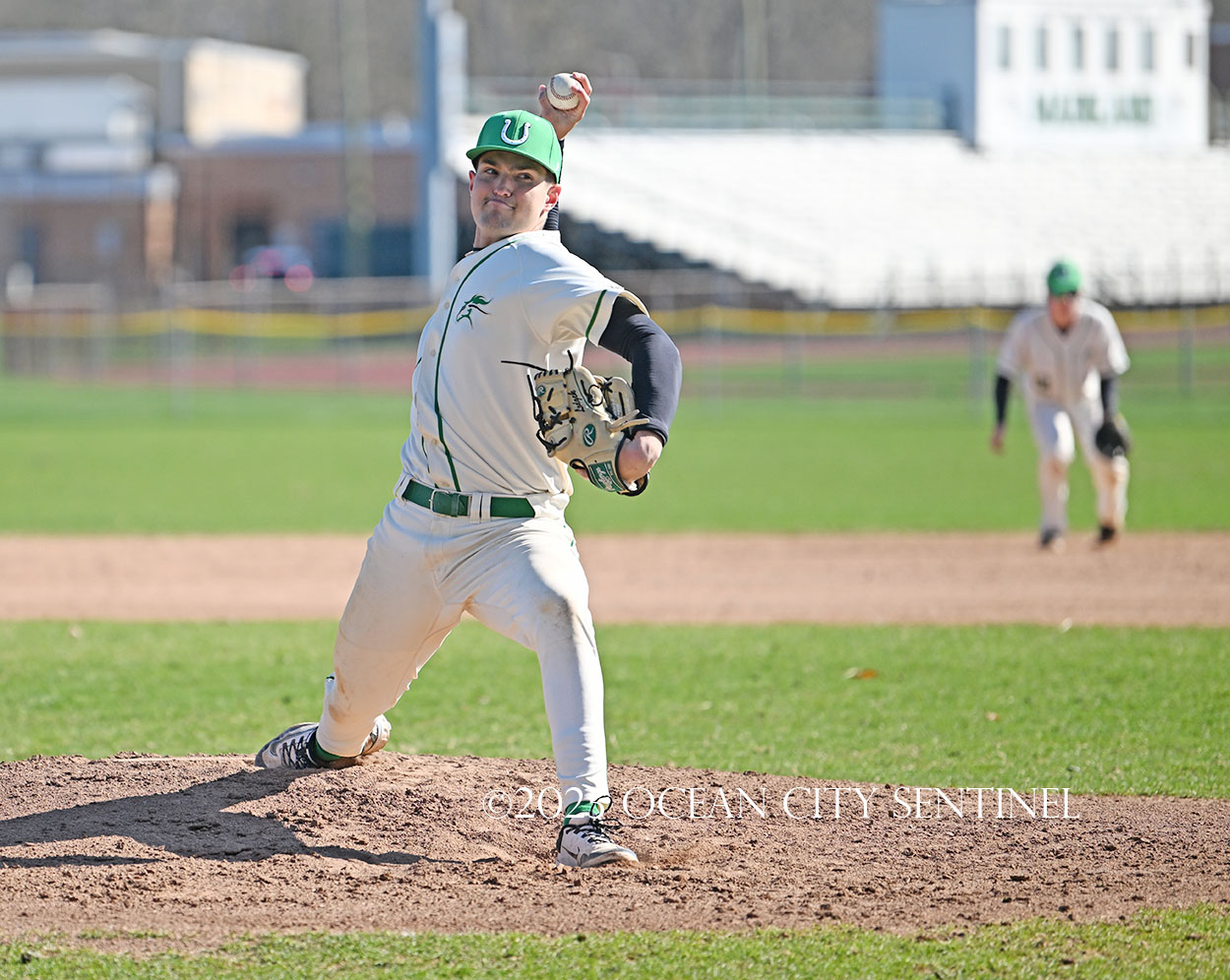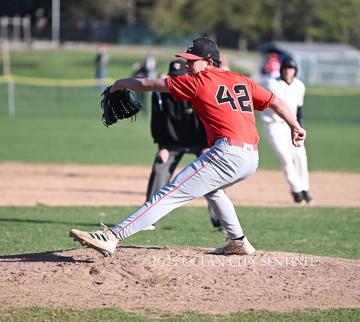 With some left-handed hitters coming up for Ocean City, Smith called upon left-handed pitcher Finnegan Haines to close out the game for Mainland.