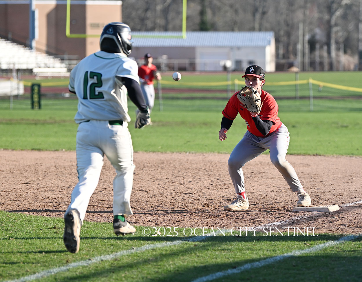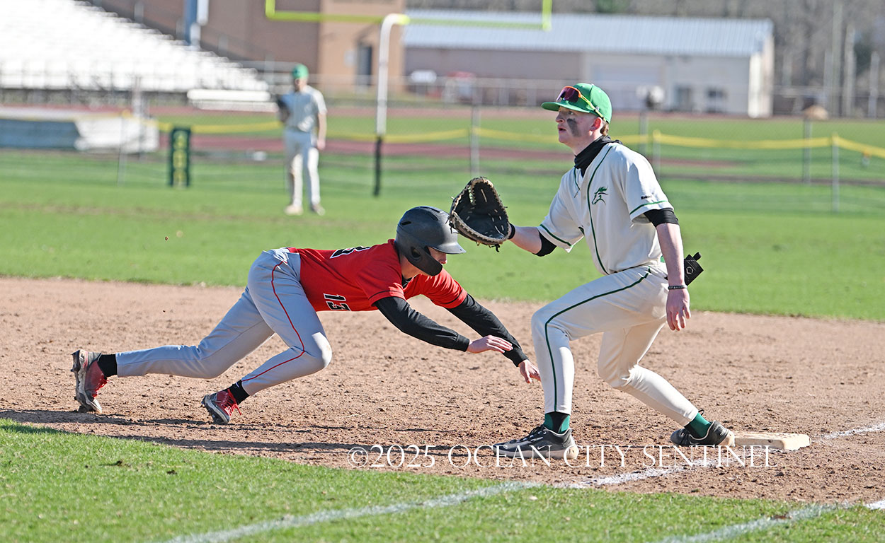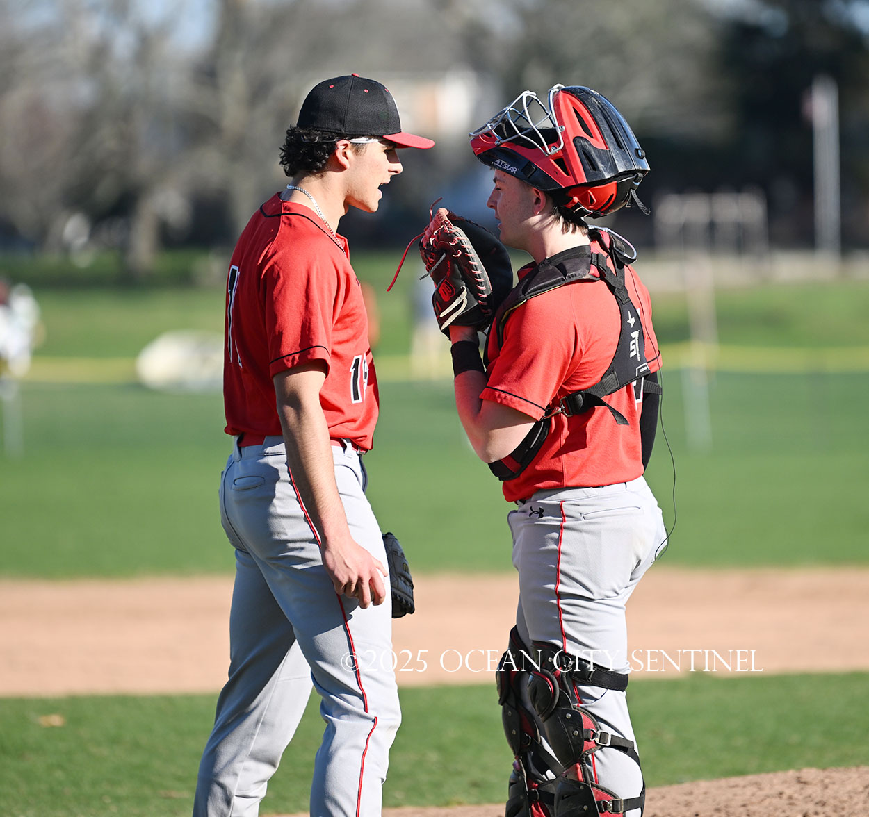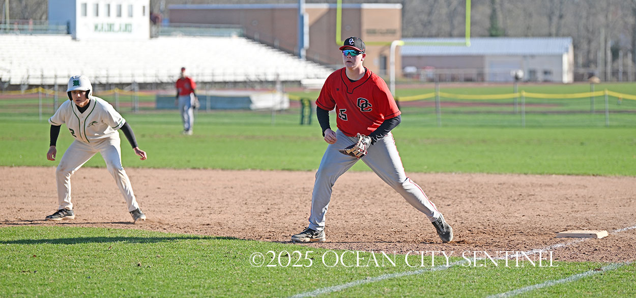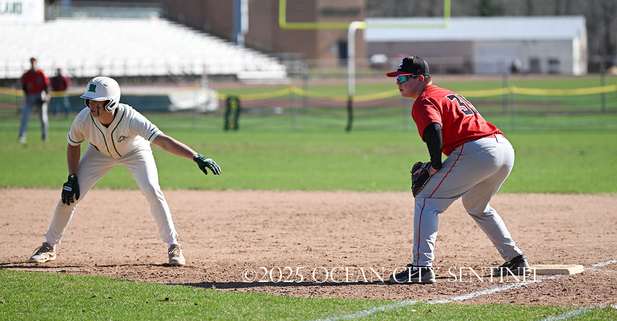 One day later in Ocean City, the Raiders defended their home field and held on to defeat the Mustangs 3-2 April 10. It was the third straight game between the two teams to end with a final score of 3-2, including Mainland’s win over Ocean City in last year’s Cape-Atlantic League Tournament.