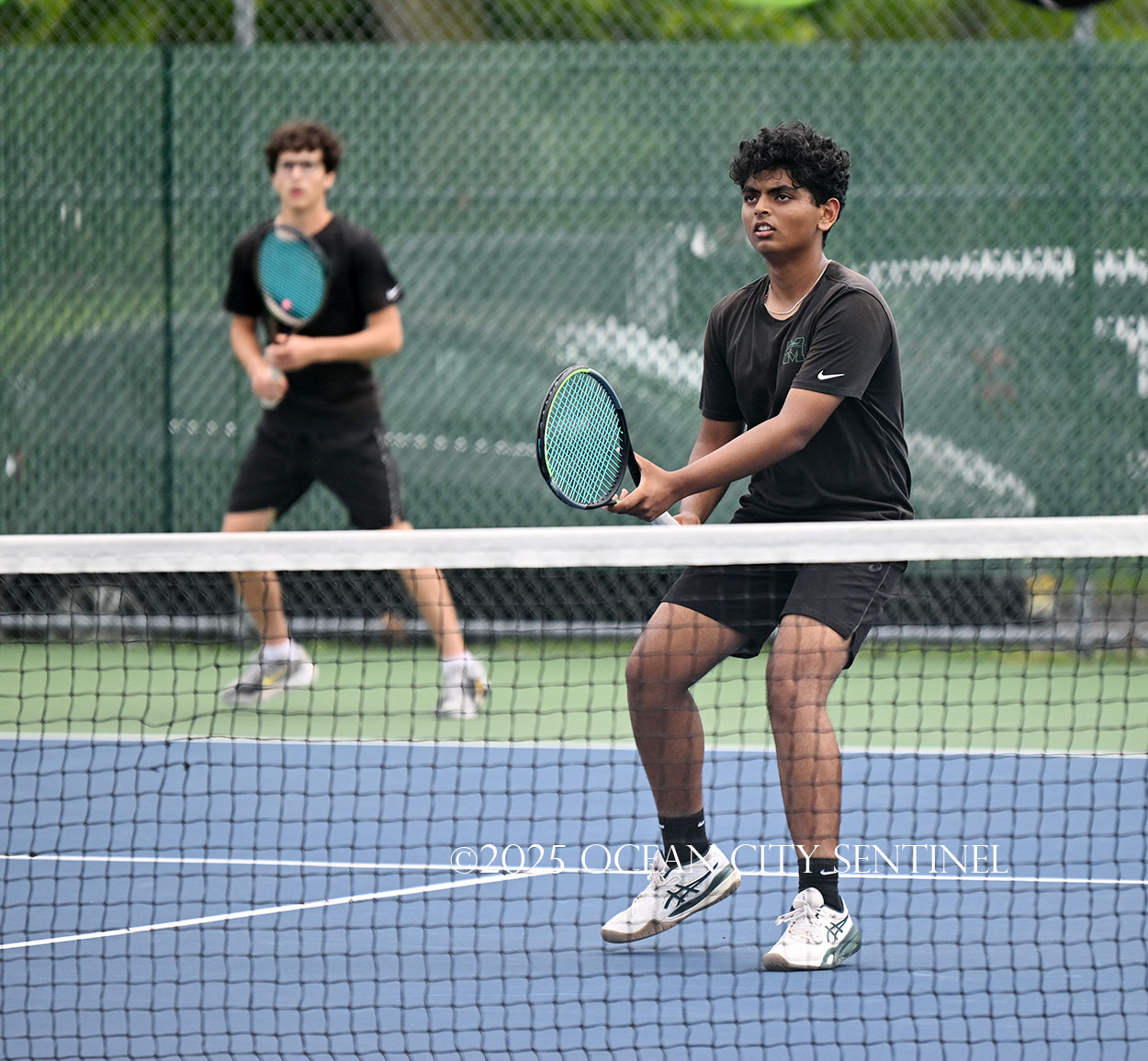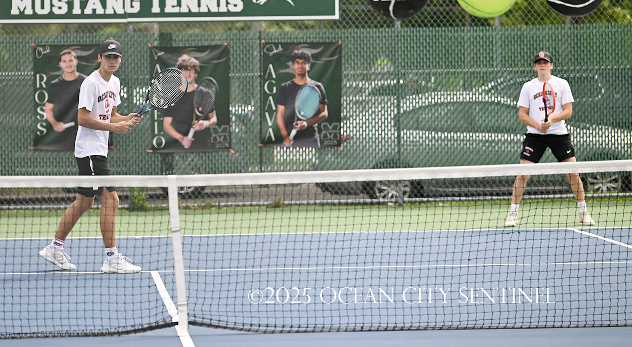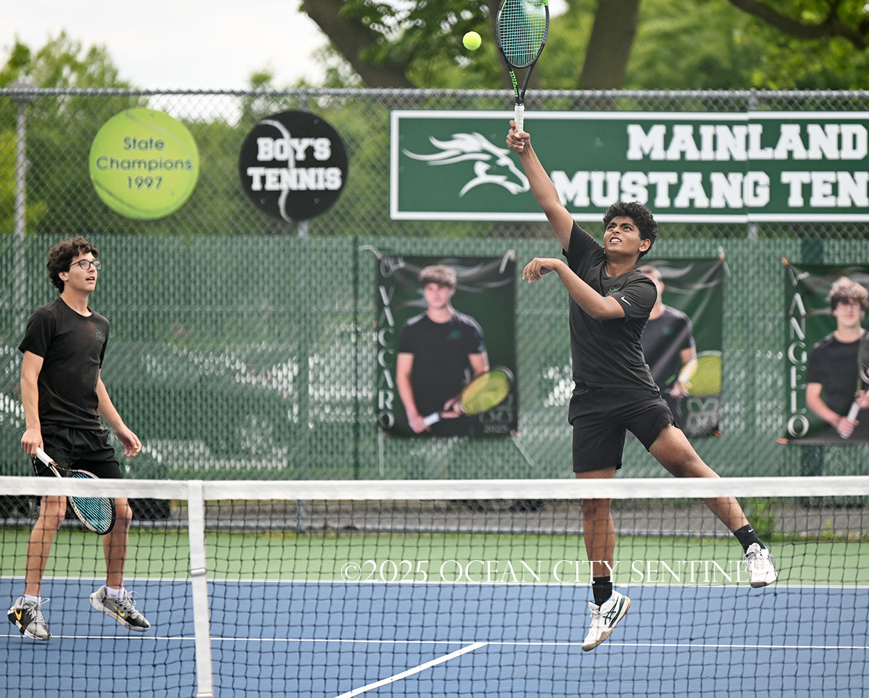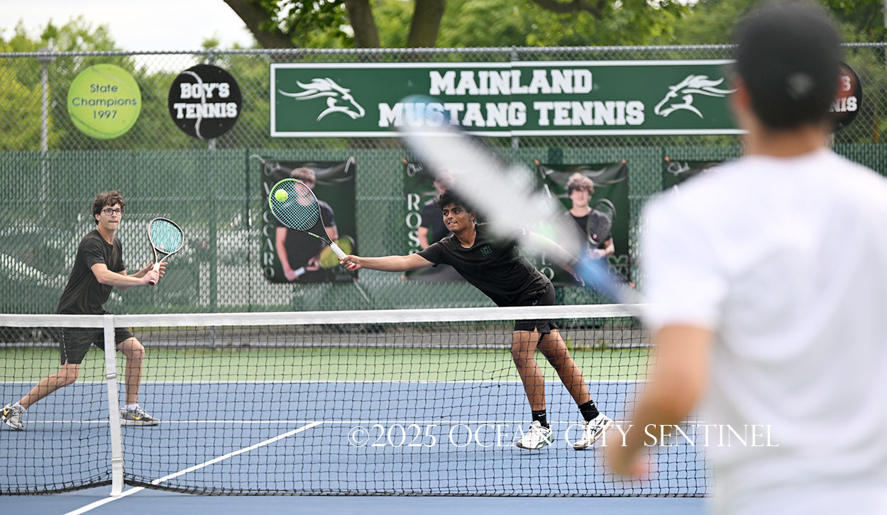 All four matches between the first doubles teams have gone three sets. The teams split matches during the regular season, then Meron and Sardy beat the Mustang pair for the Cape-Atlantic League crown before meeting again the South Jersey Group III semifinal.