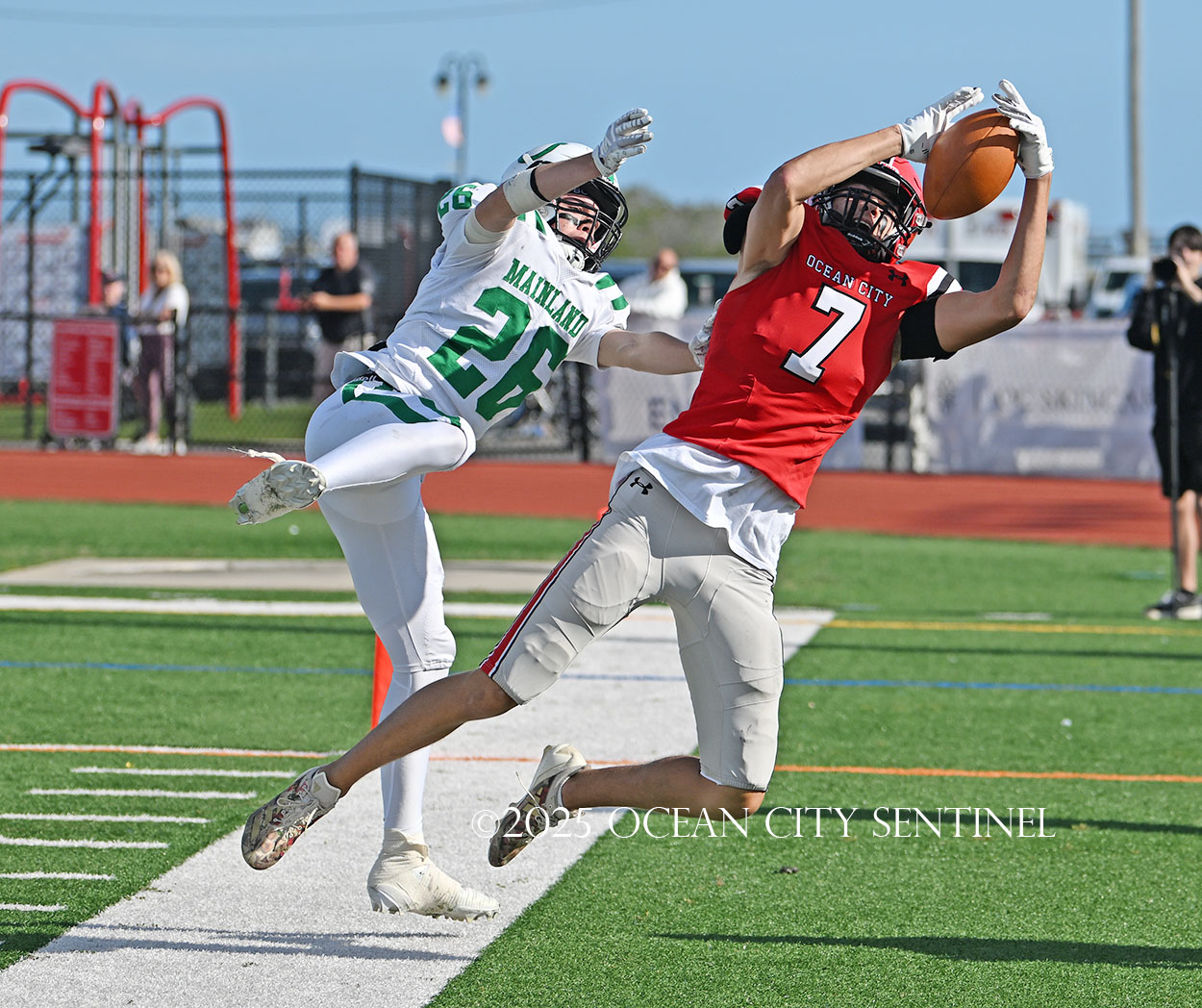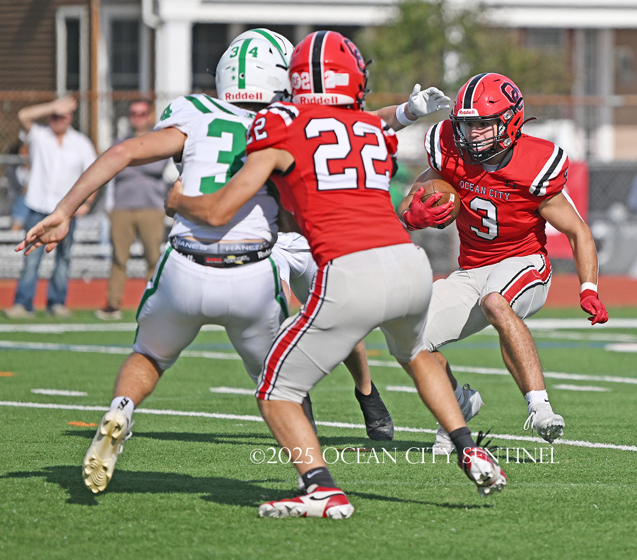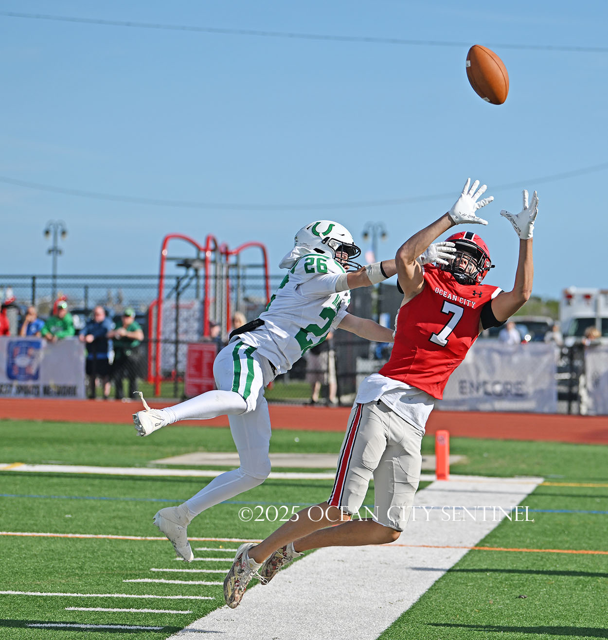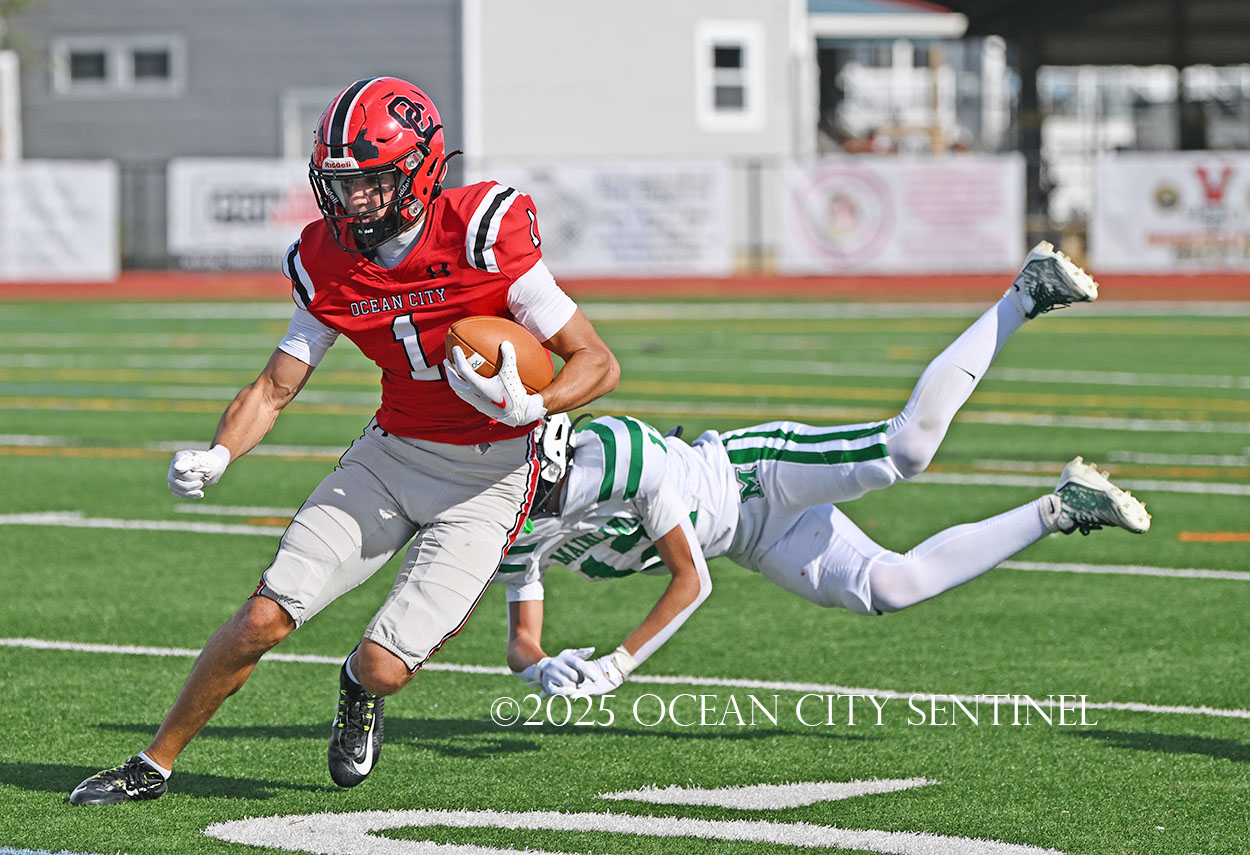Ragazzi came out of the locker room looking to do more damage and on Ocean City’s second play of the half, he broke free for a 60-yard catch and run. He finished with his best game of the season as he caught five passes for 112 yards and a touchdown.