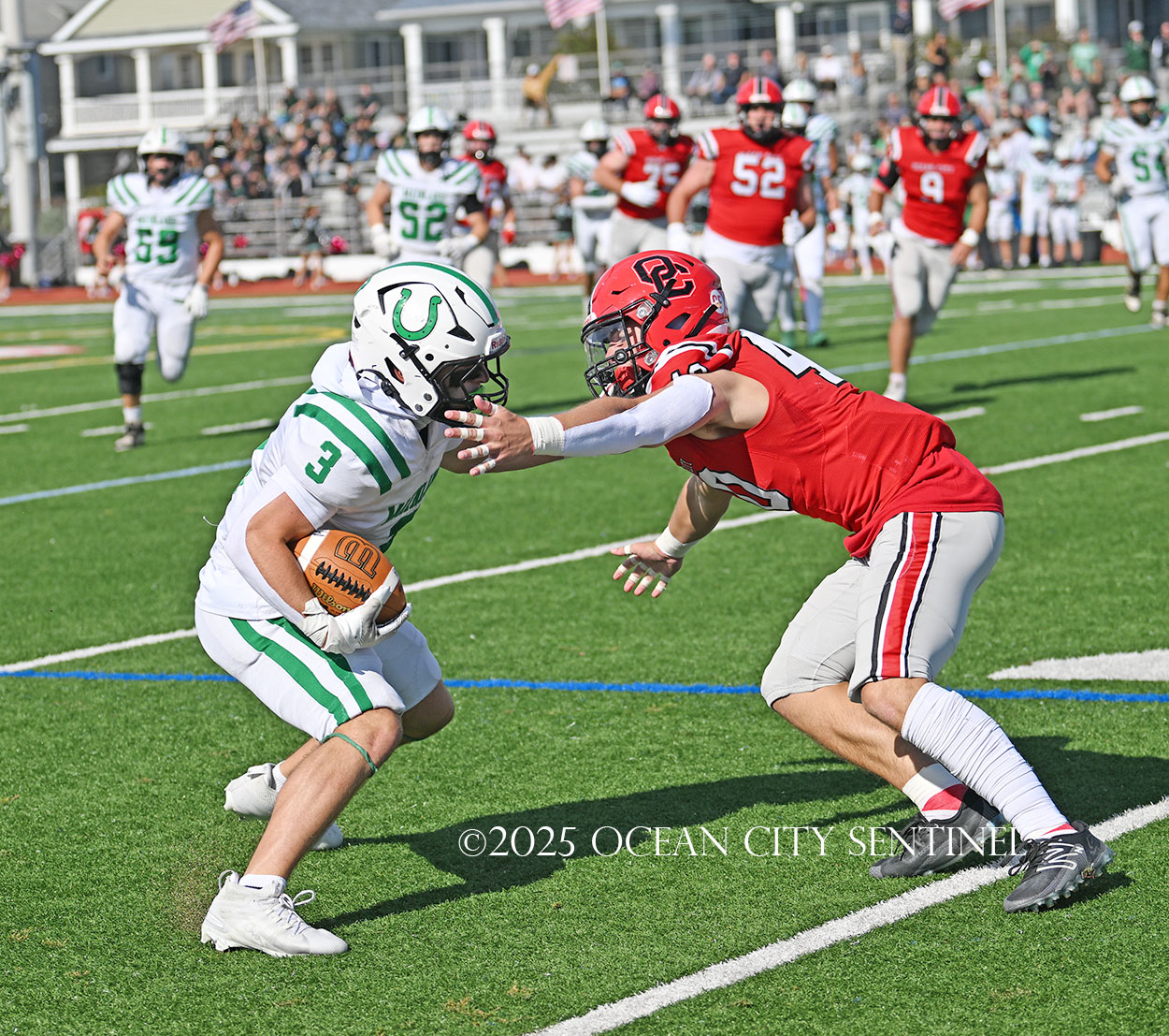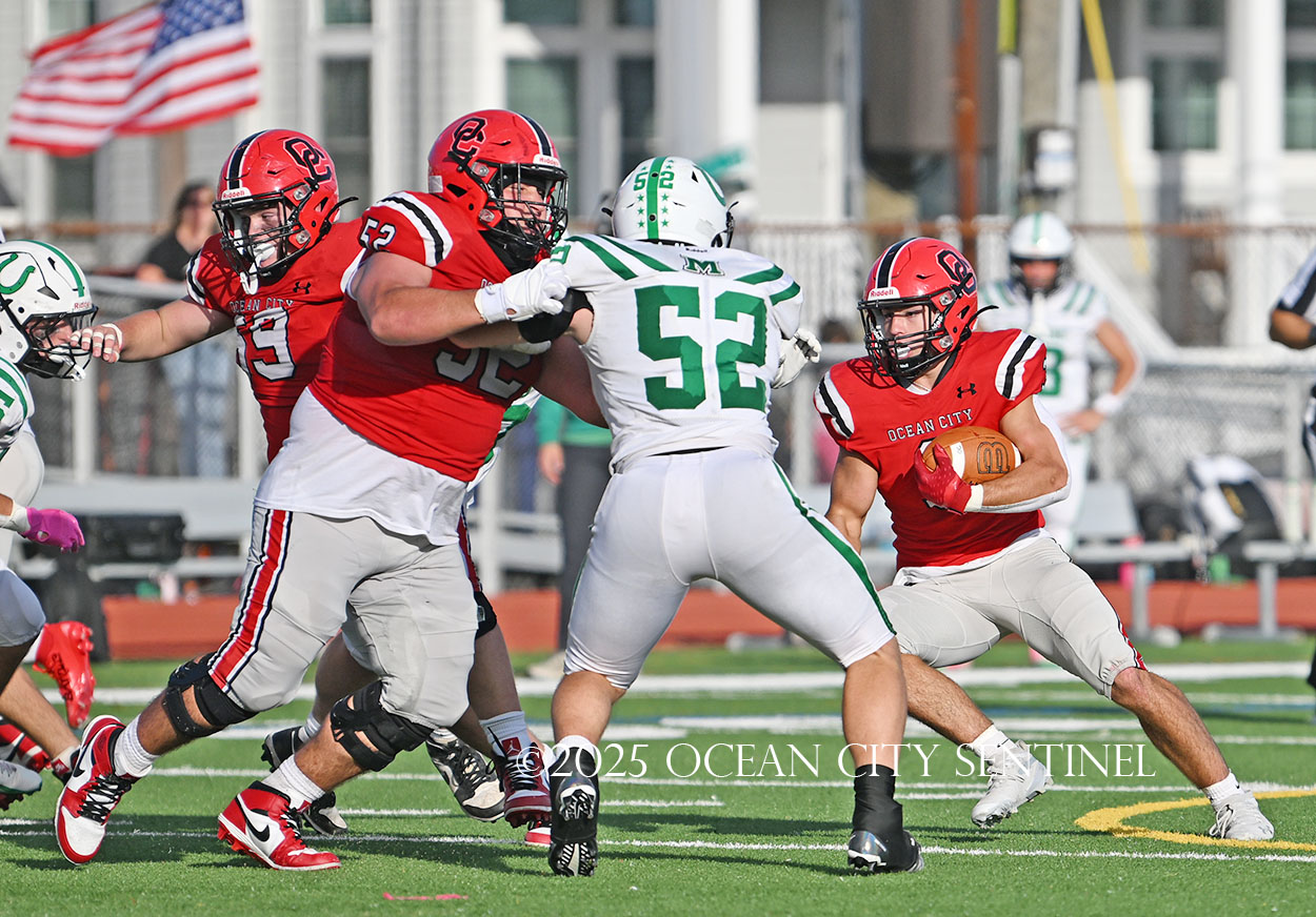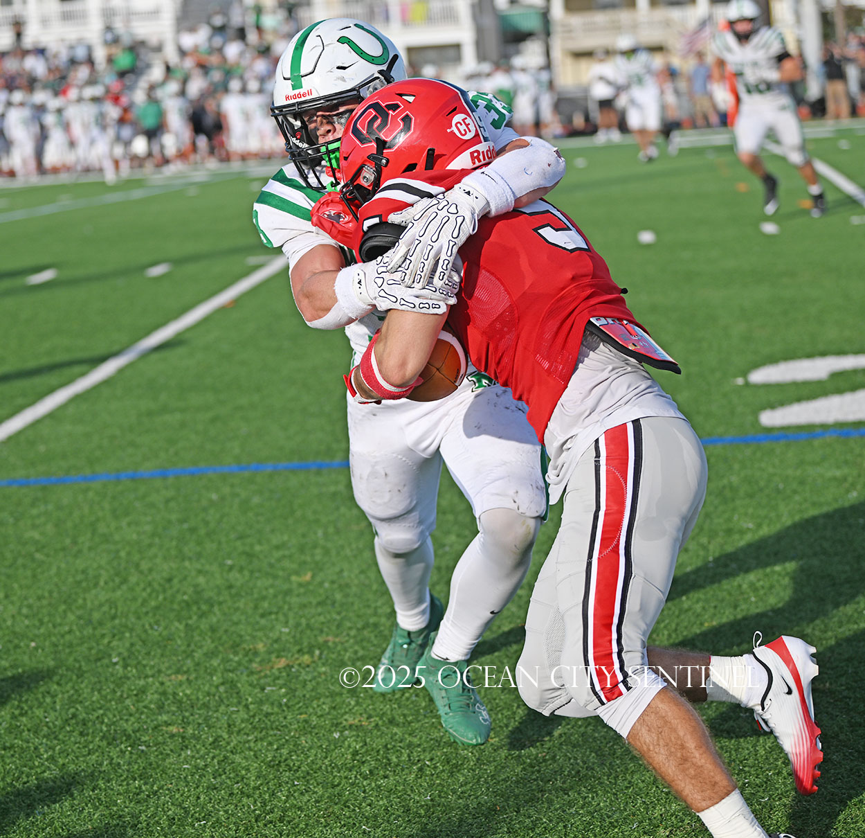 Ragazzi came out of the locker room looking to do more damage and on Ocean City’s second play of the half, he broke free for a 60-yard catch and run. He finished with his best game of the season as he caught five passes for 112 yards and a touchdown.