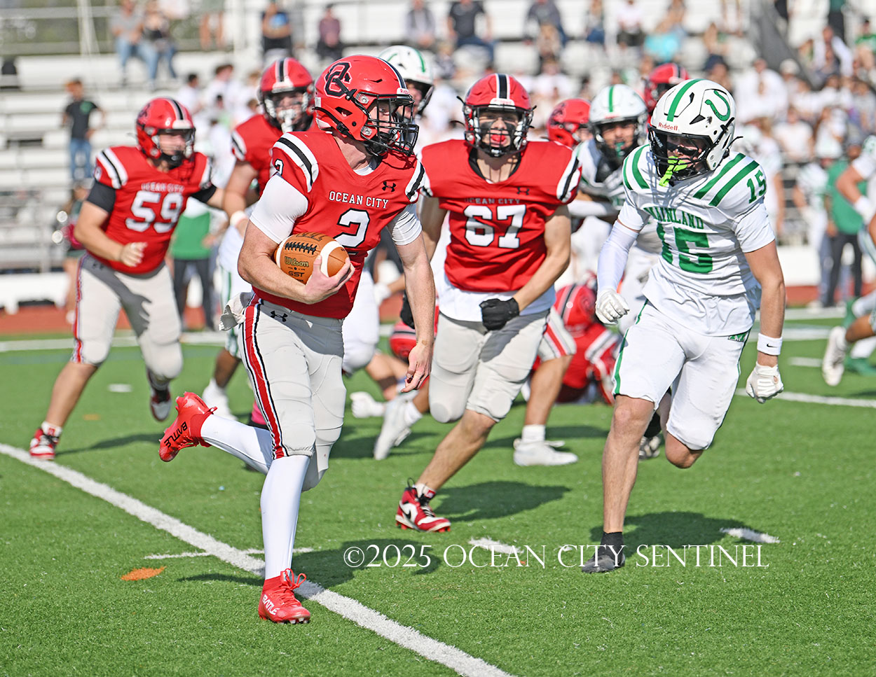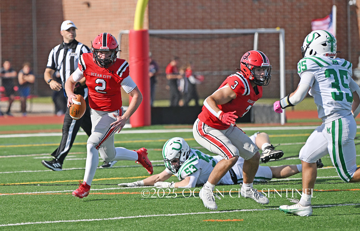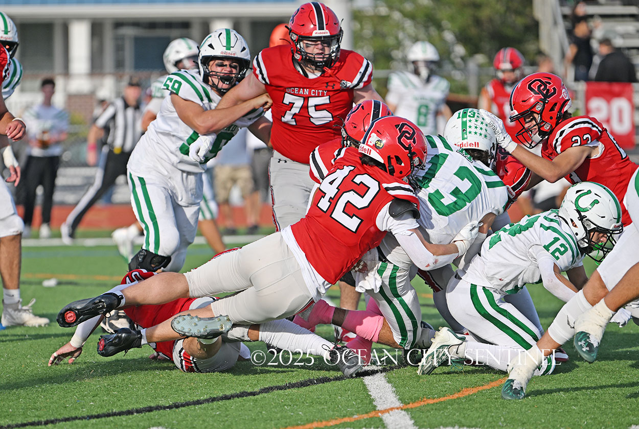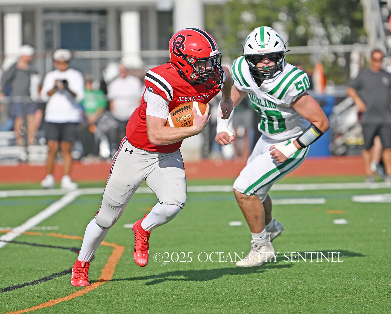 Ragazzi came out of the locker room looking to do more damage and on Ocean City’s second play of the half, he broke free for a 60-yard catch and run. He finished with his best game of the season as he caught five passes for 112 yards and a touchdown.