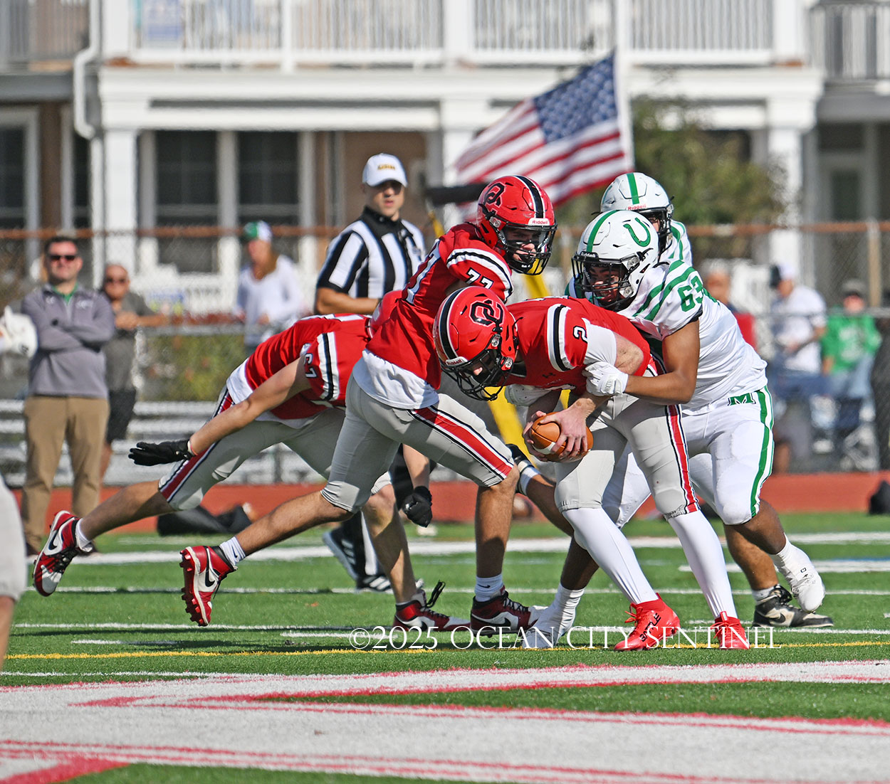The Raider defense kept Mainland scoreless the entire second half but unfortunately for Ocean City, Mainland’s defense found similar success. After the Raiders were turned away on fourth down, their last three drives of the game all ended in interceptions by DeBiaso, Jack Dougherty and Brady Kallen.