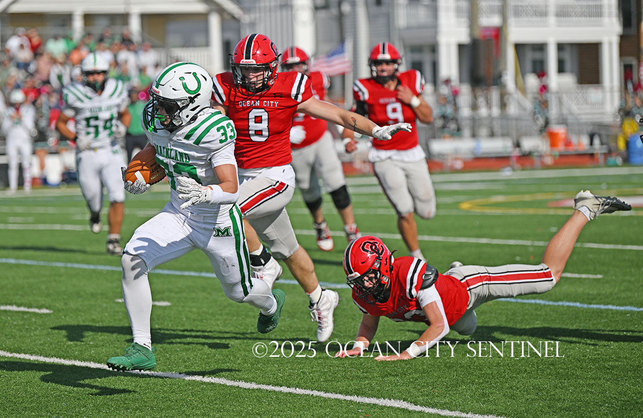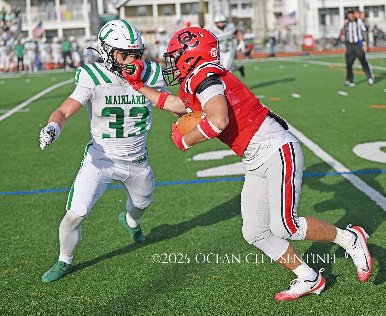 Mainland’s defense stood tall once again however and quickly stopped Ocean City on four straight downs to maintain the two-possession lead.