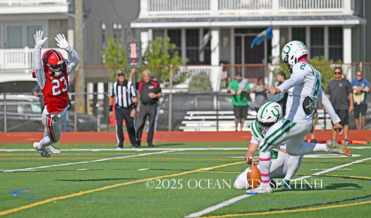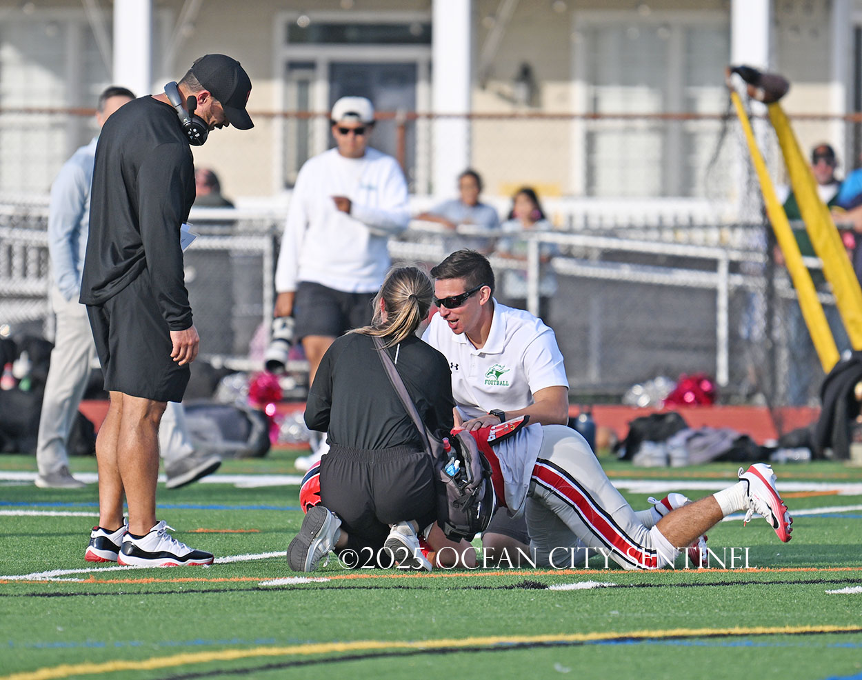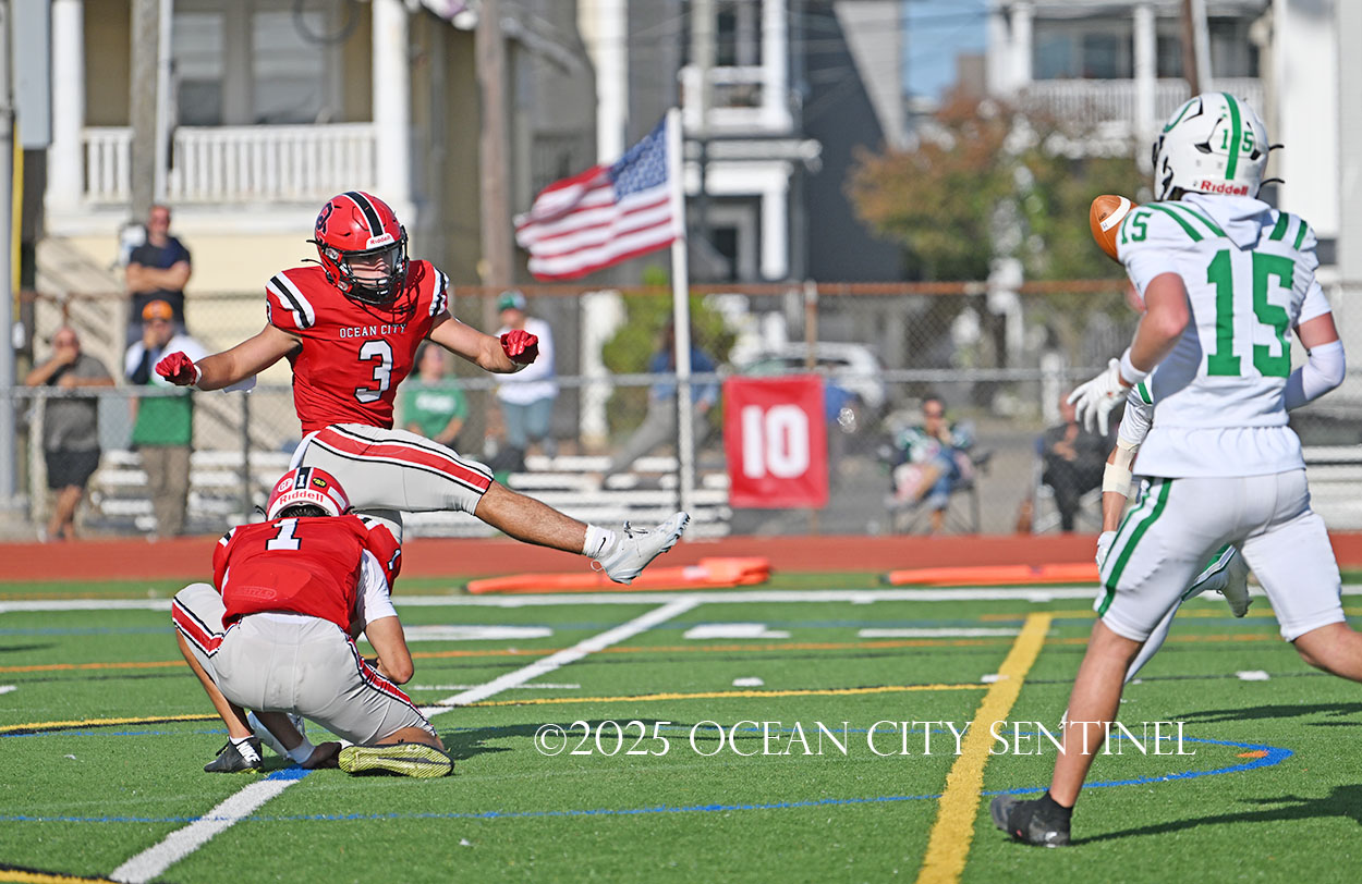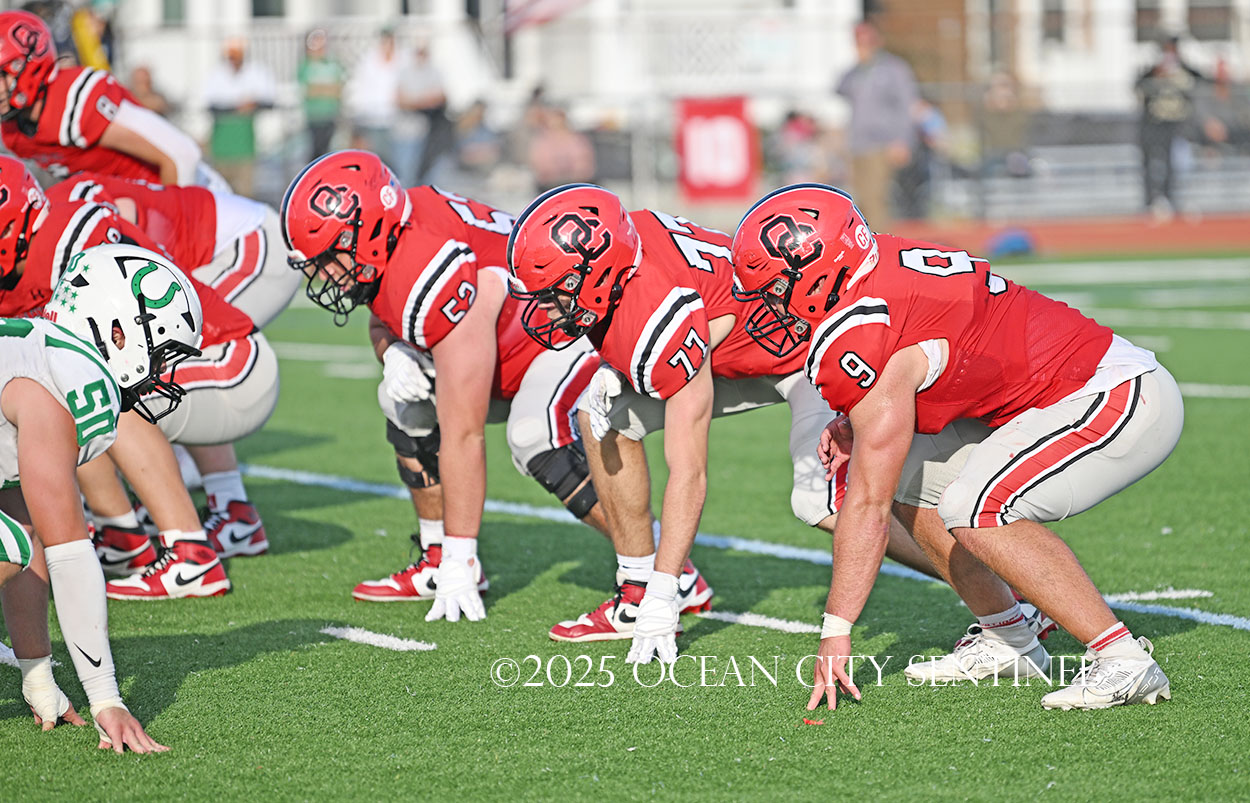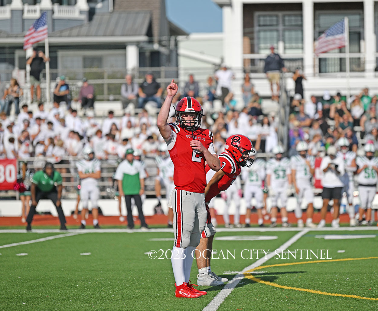 Down 20-0 before halftime, Ocean City had to score a touchdown before the break to leave the door open to a comeback. With 4 minutes left, the Raiders marched 80 yards down the field almost effortlessly and injected the energy back into the home crowd.  Jackson Becker found his favorite target so far this season, Michael Ragazzi, over the middle for a walk-in touchdown.