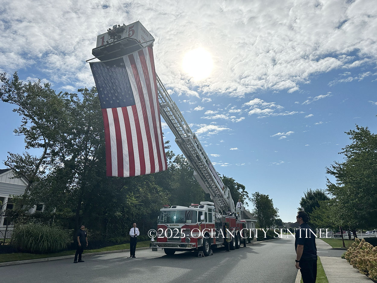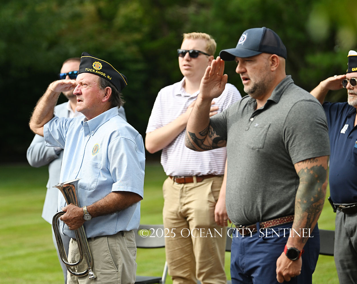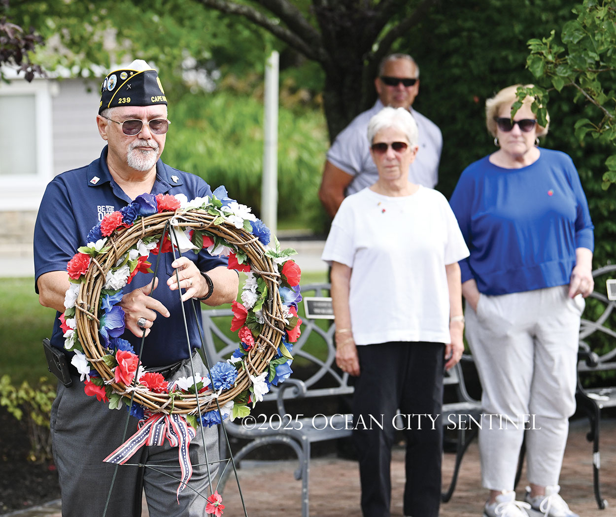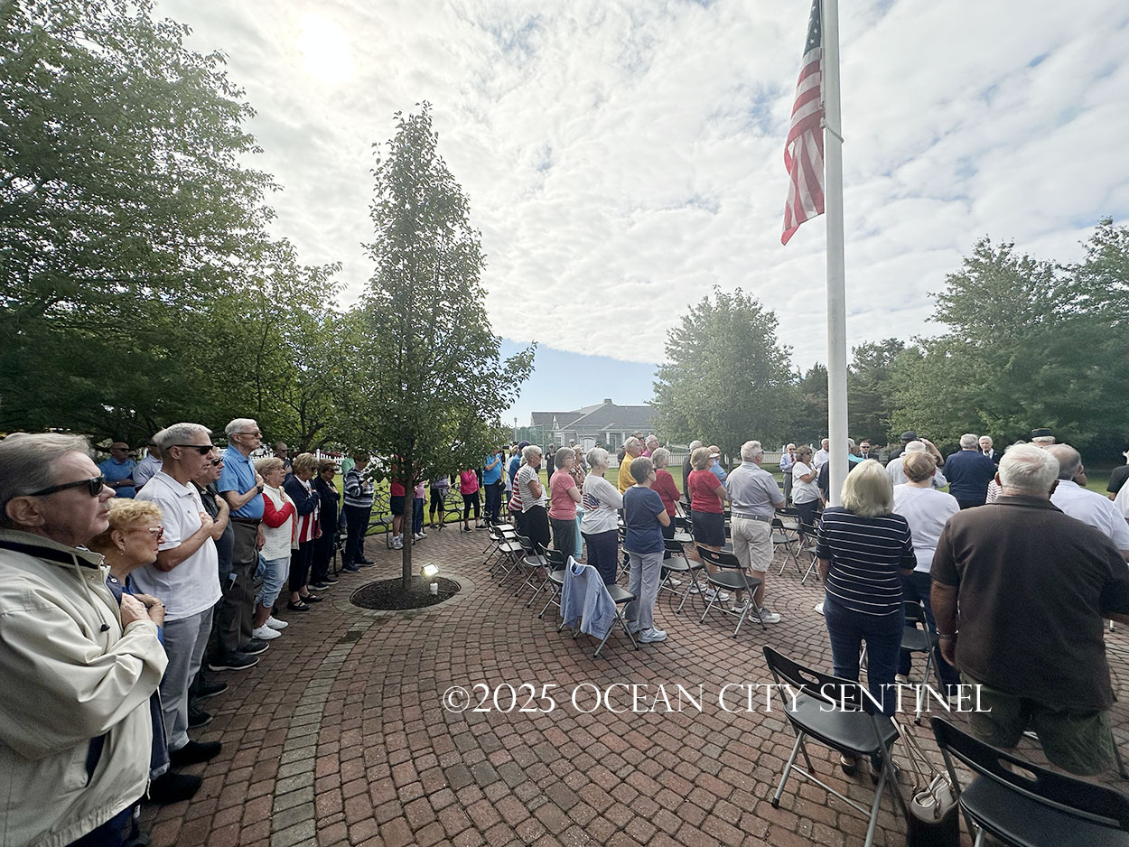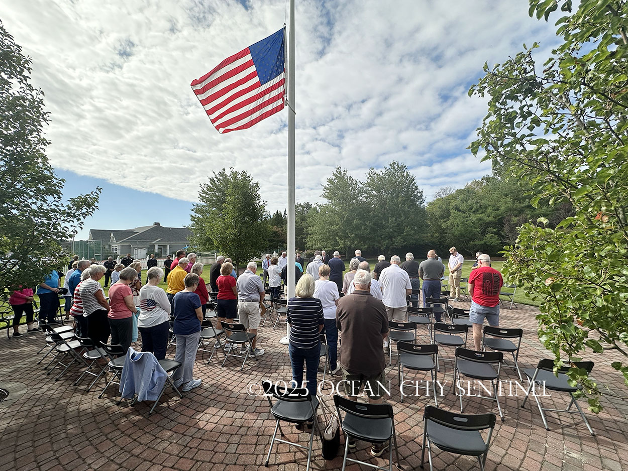Osprey Point resident James Joyce hosted the event. Upper Township firefighters and EMS members were represented, Cape May County American Legion Commander Bill Archer placed a wreath to honor victims, American Legion Post 239 Vice Commander Ray Lambert performed Taps and Jim Offner was the guest vocalist, leading the audience in song.