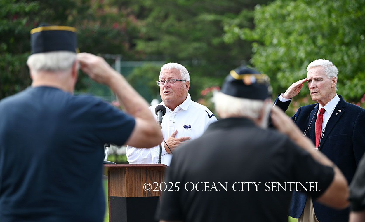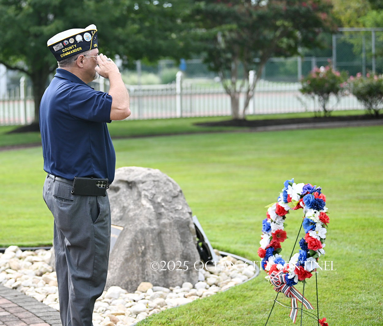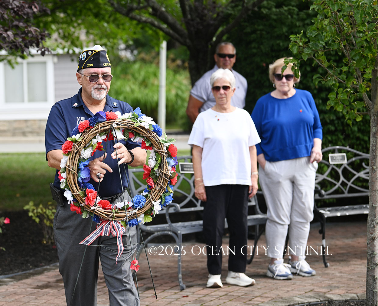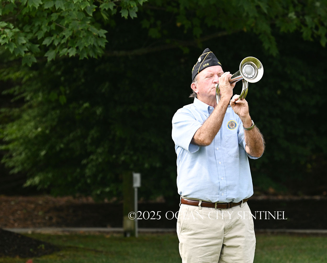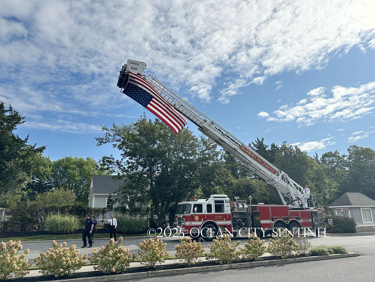 Osprey Point resident James Joyce hosted the event. Upper Township firefighters and EMS members were represented, Cape May County American Legion Commander Bill Archer placed a wreath to honor victims, American Legion Post 239 Vice Commander Ray Lambert performed Taps and Jim Offner was the guest vocalist, leading the audience in song.