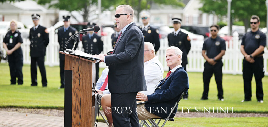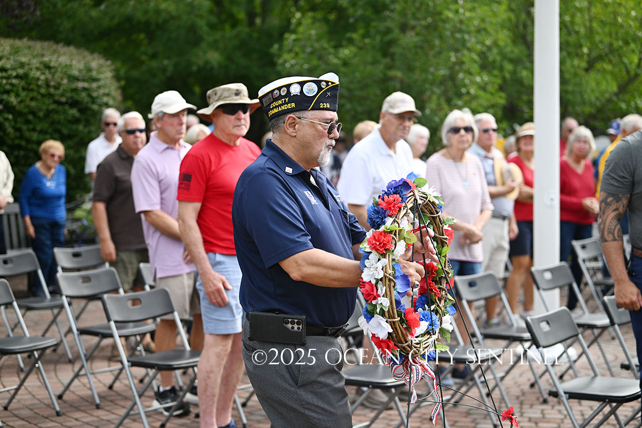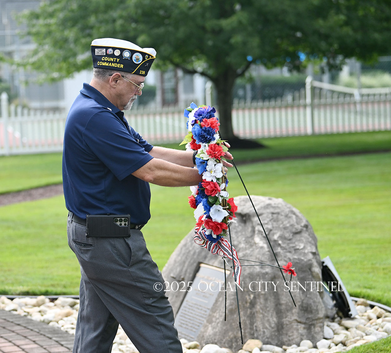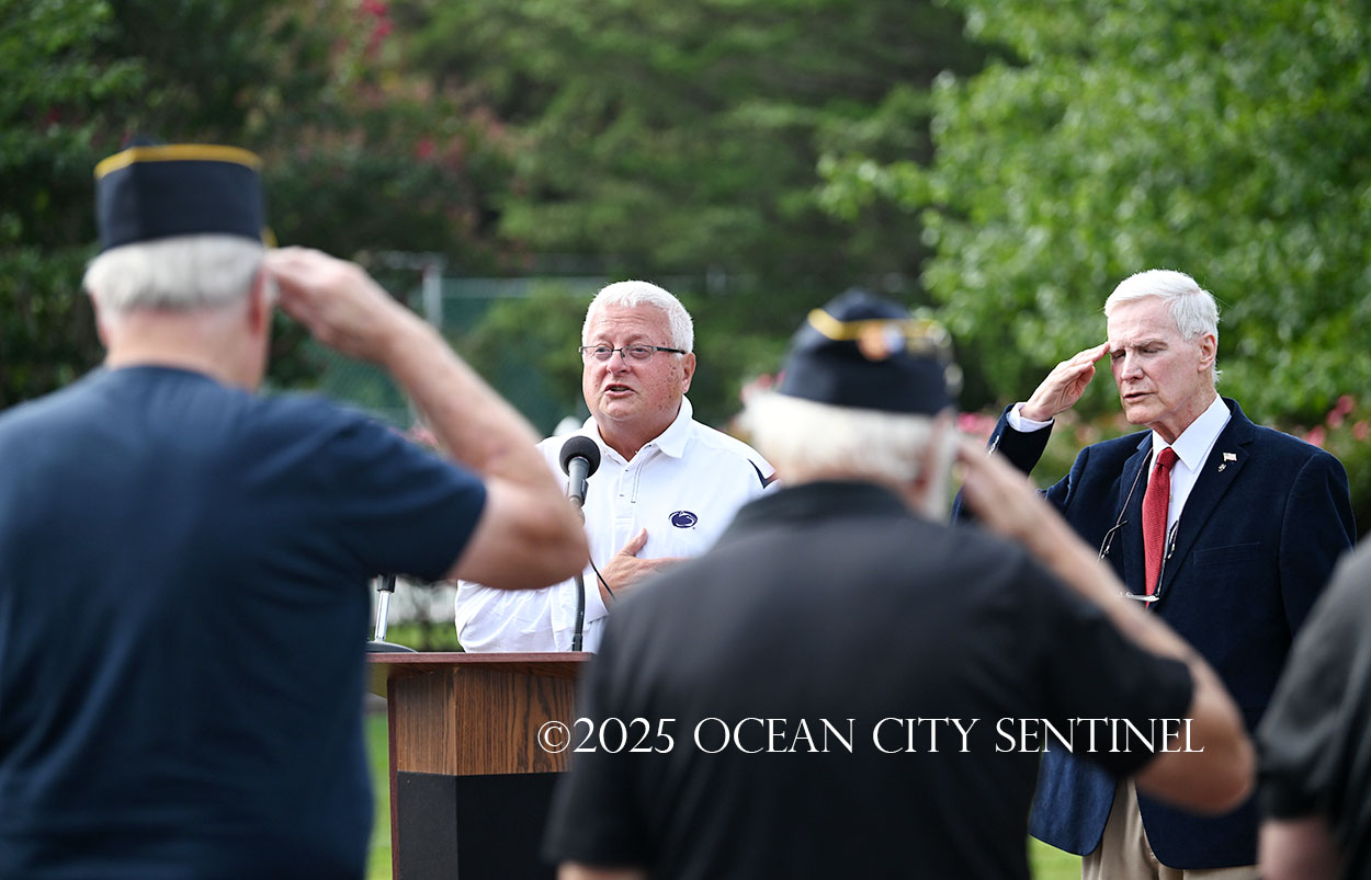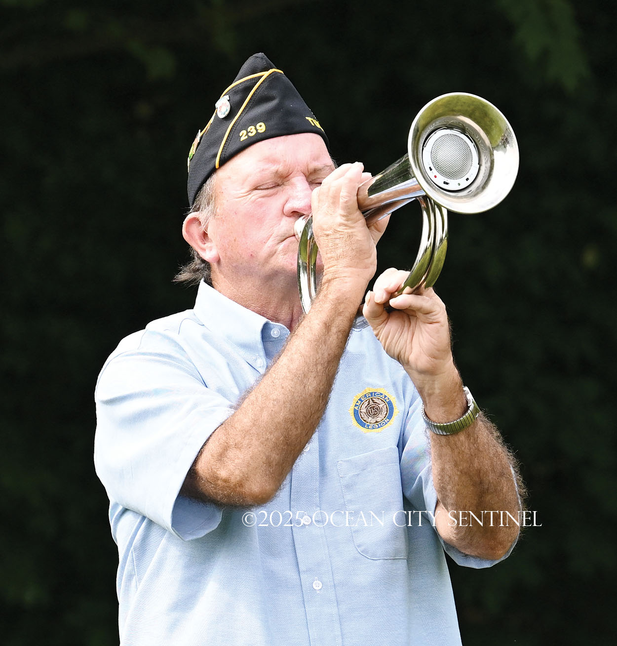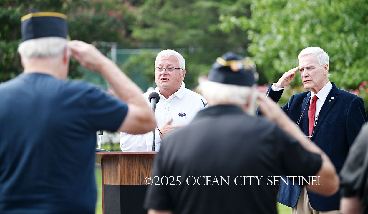 Osprey Point resident James Joyce hosted the event. Upper Township firefighters and EMS members were represented, Cape May County American Legion Commander Bill Archer placed a wreath to honor victims, American Legion Post 239 Vice Commander Ray Lambert performed Taps and Jim Offner was the guest vocalist, leading the audience in song.