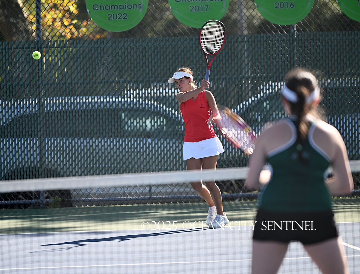 Cecelia Mirsky is the No. 1 singles this season, moving up from the No. 2 spot last year. Anna Wisnefski is at No. 2 after playing first doubles last season and Sydney Halliday has the No. 3 singles spot. She played second doubles last season.