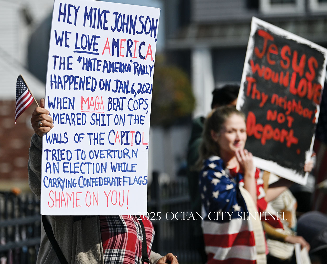 “We have to get rid of Trump and his fascist regime,” added Karen Maggio, who lives in Ashton, Pa., but has a home in Ocean City.